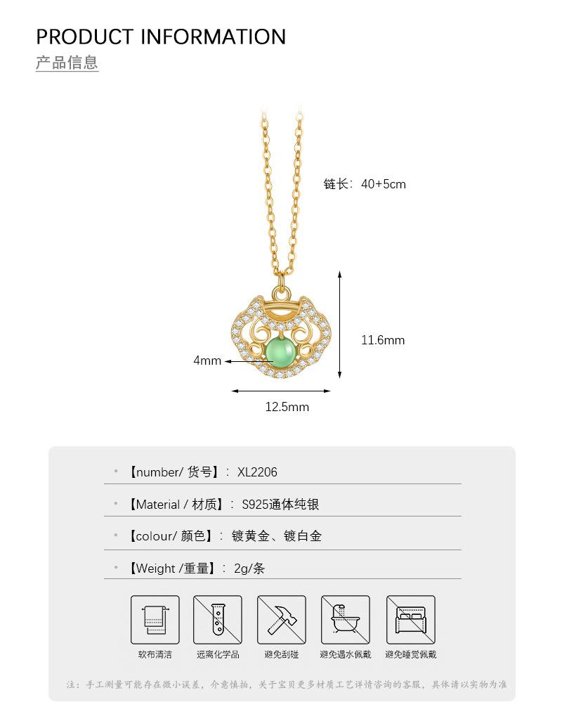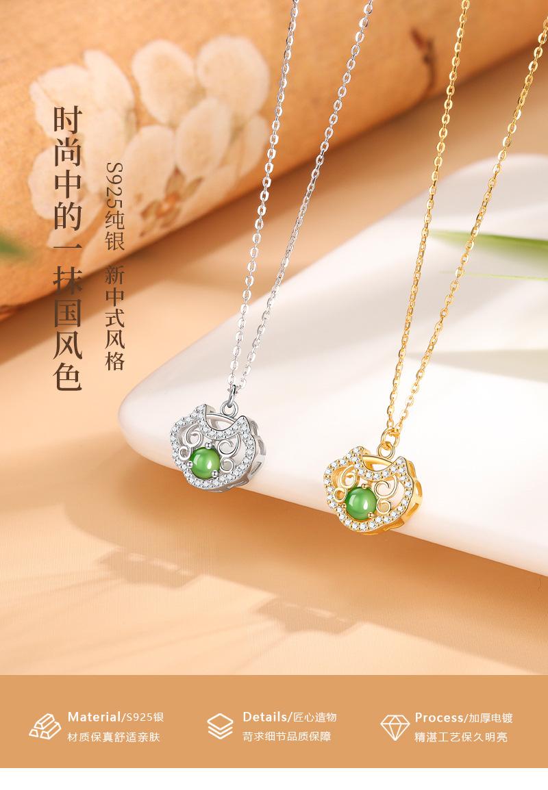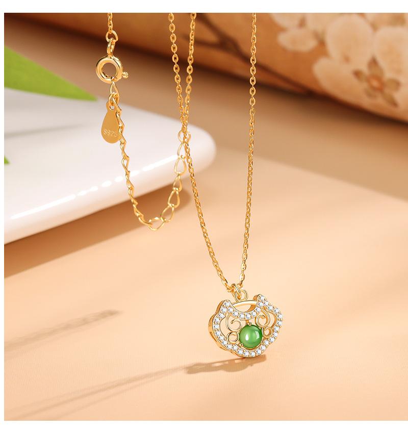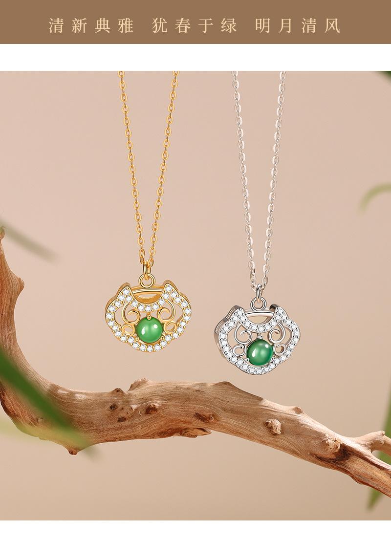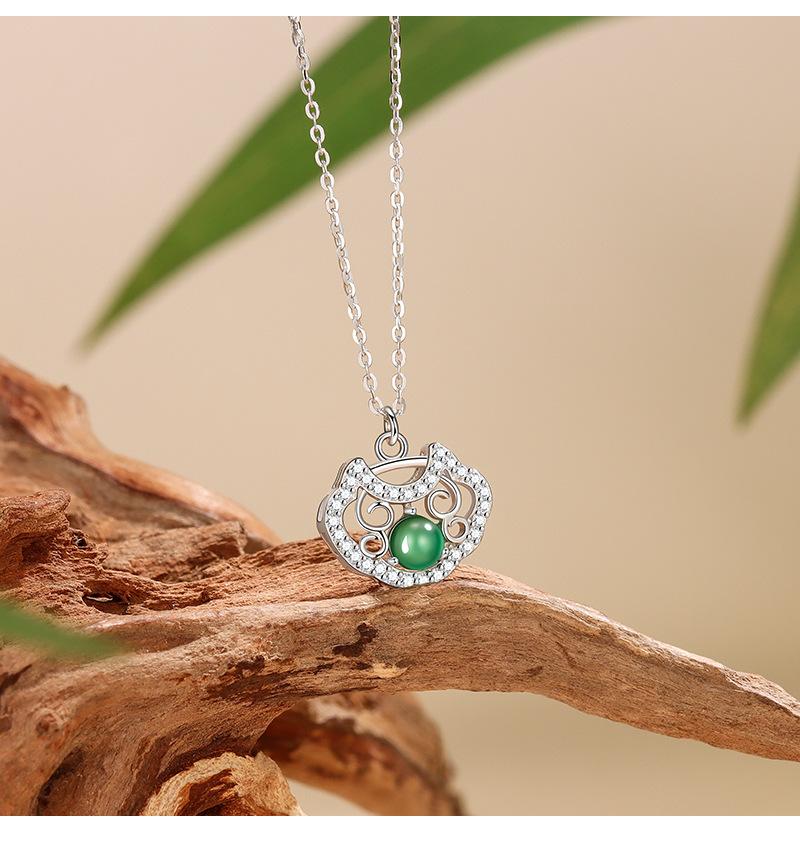 Collar con candado de paz de circonitas microincrustadas en plata esterlina S925, nuevo estilo chino, estilo nacional, candado Ruyi, nicho literario, elegante conjunto de cadena para mujer