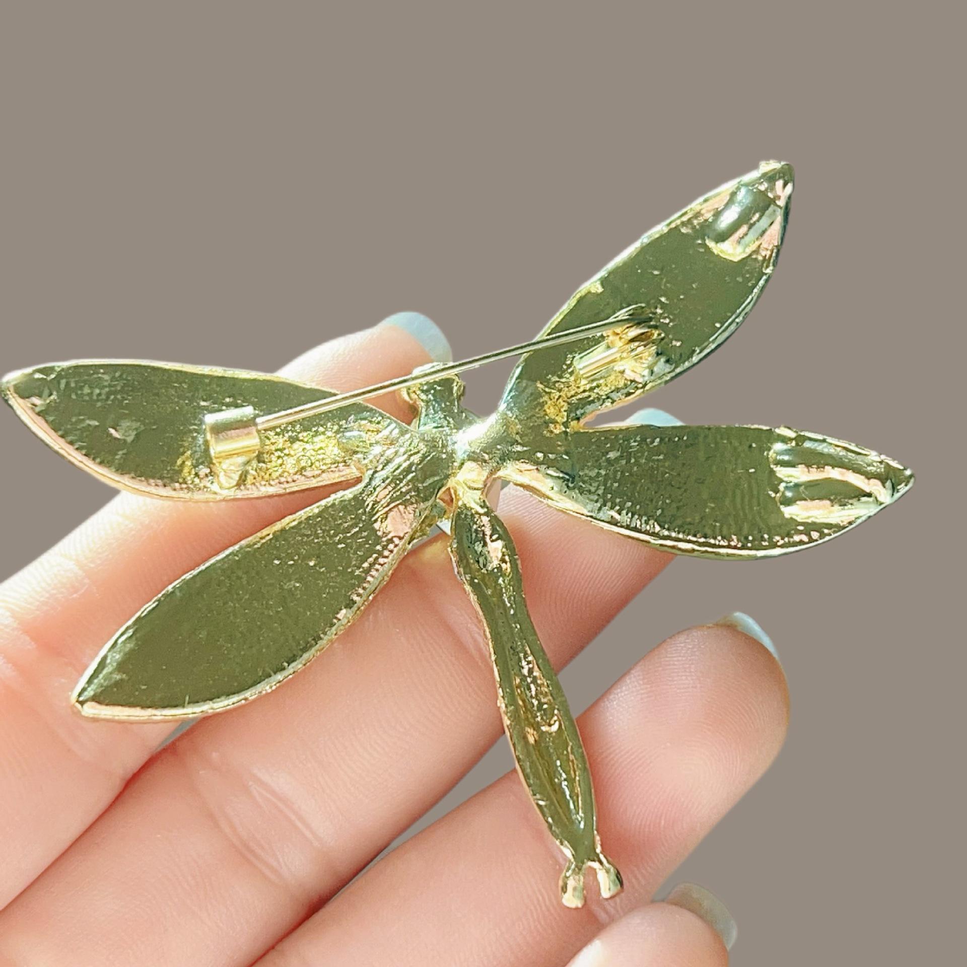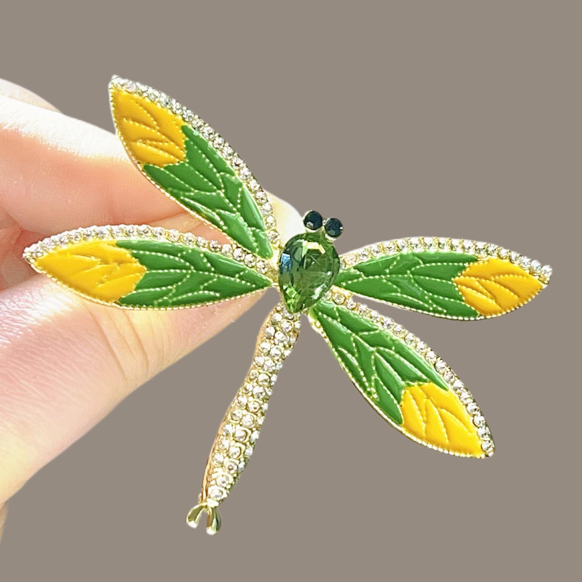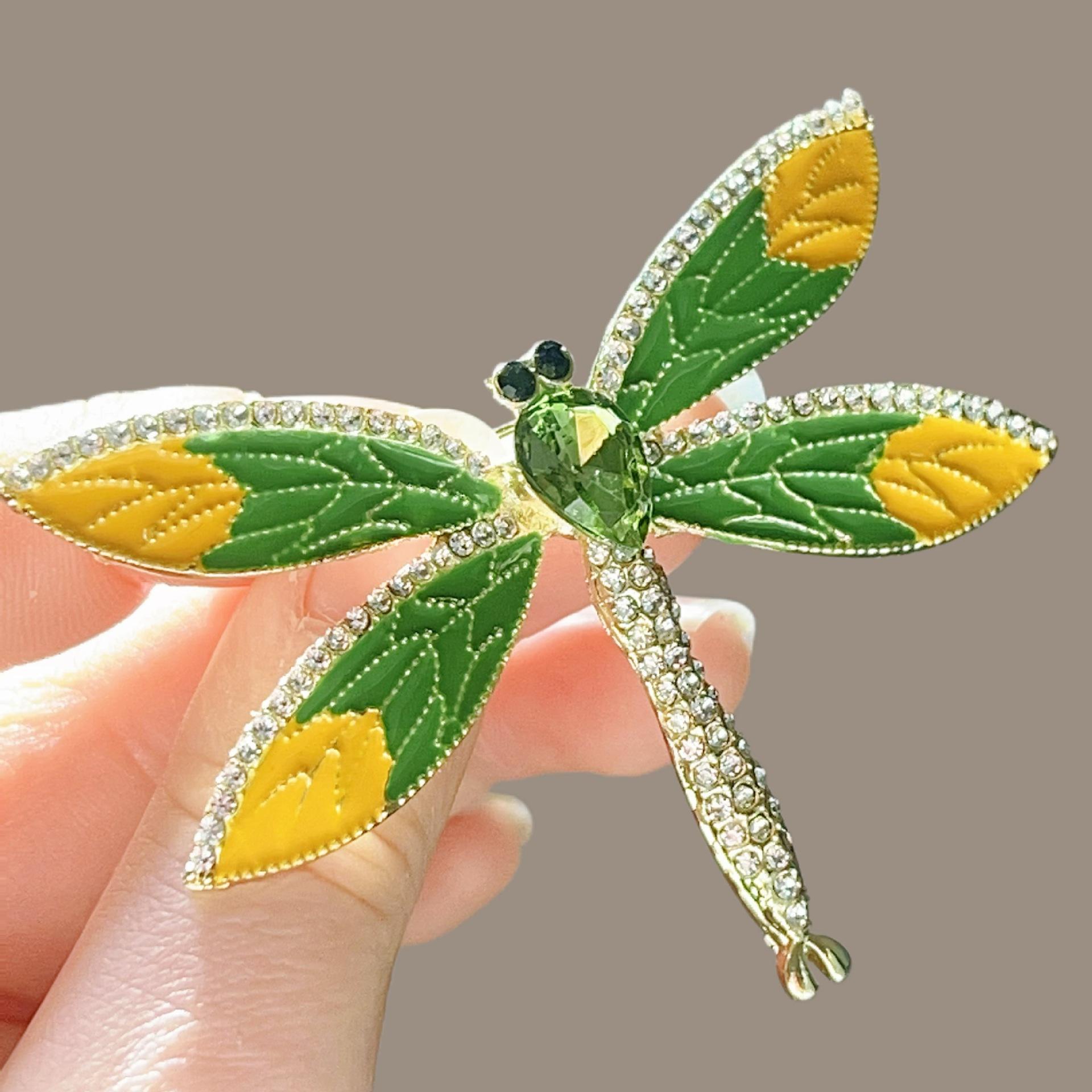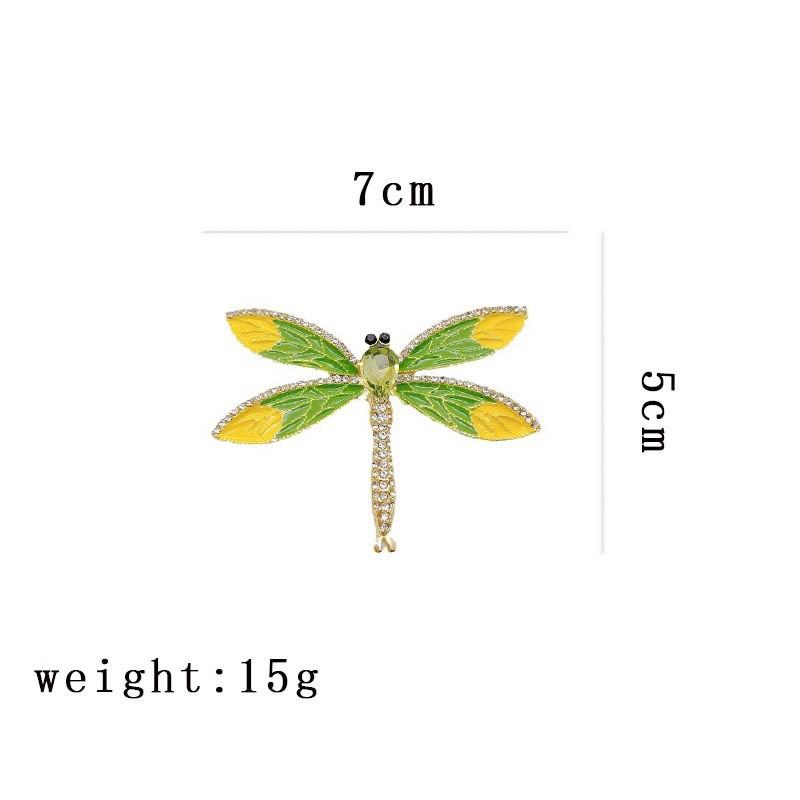 Broche de libélula verde de alta calidad para mujer, accesorio de joyería de alta gama con ramillete de nicho y diamantes de imitación de insectos.