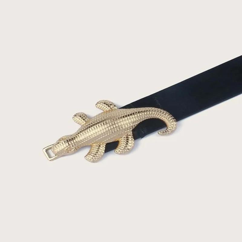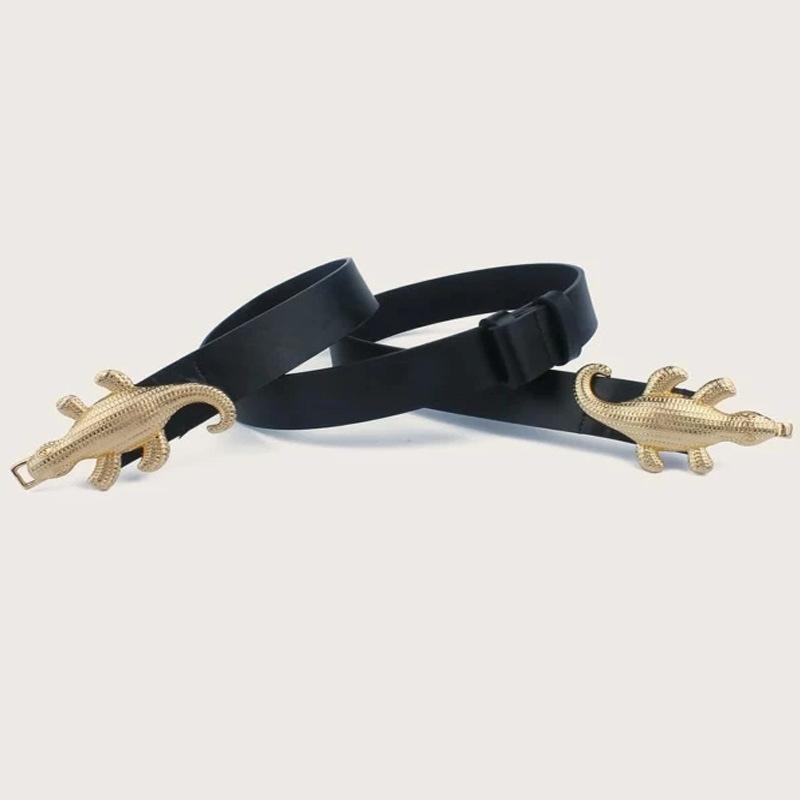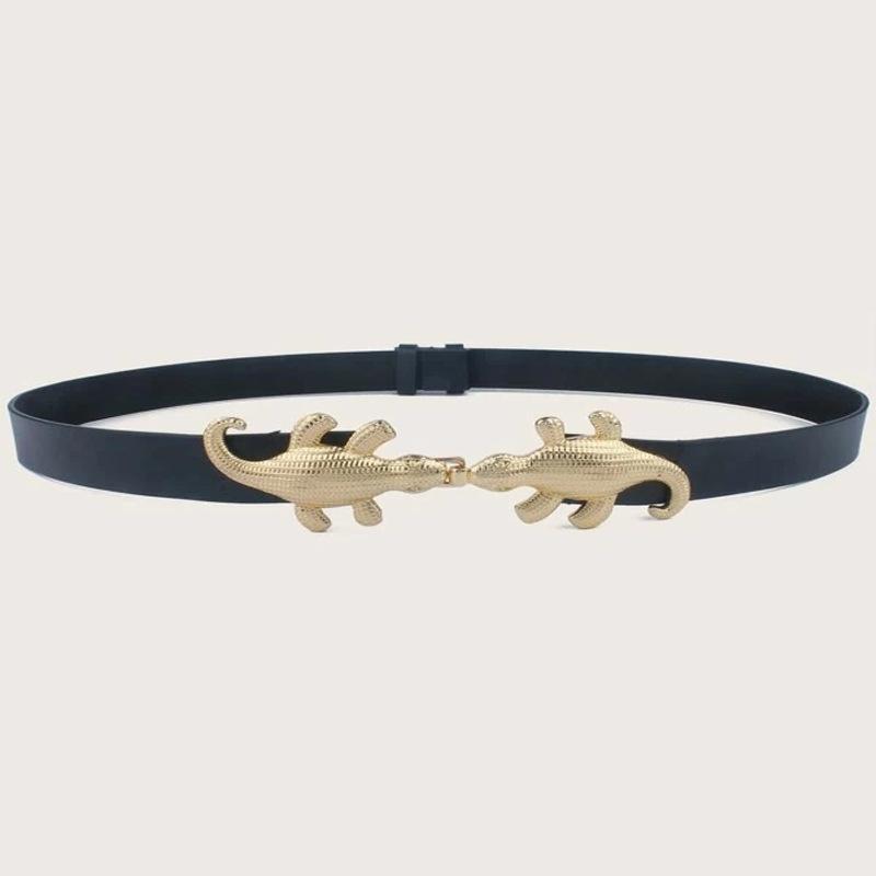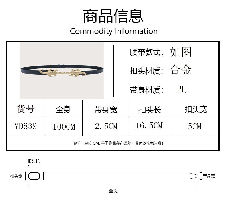 Cinturón fino de alta gama con diseño de cocodrilo transfronterizo para mujer, estilo ins, negro, decorativo, para jeans, con cinturón moderno.