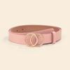 | Cinturón de cuero negro de venta directa de fábrica para mujer, versión coreana, estilo ins, sencillo y versátil, con hebilla redonda y ojal de vapor, a juego. |