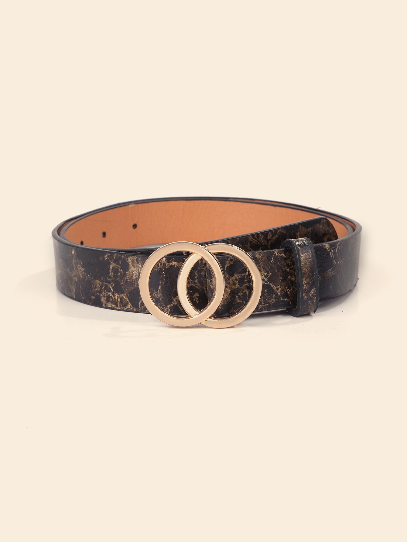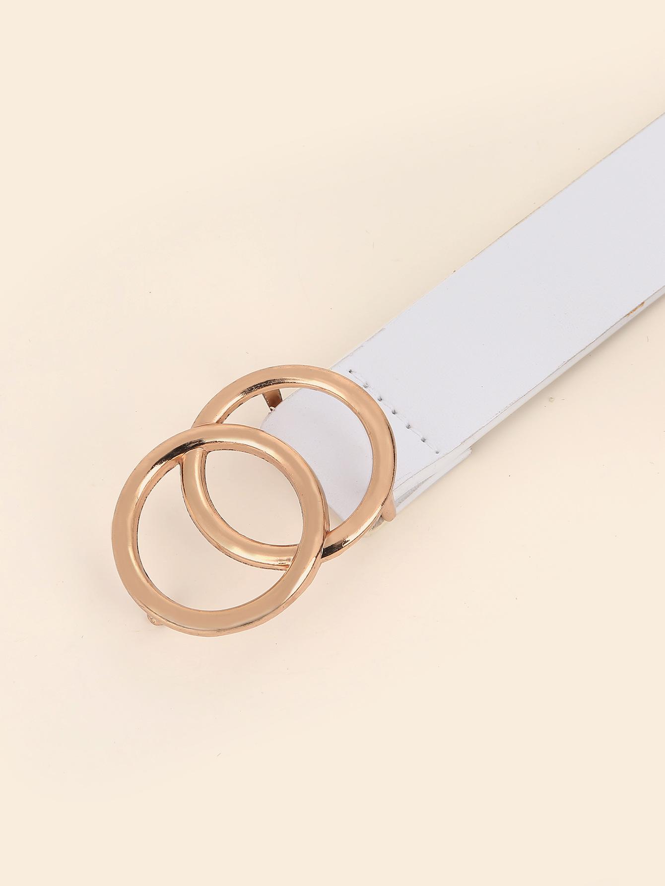 | Cinturón con hebilla redonda y cuadrada de PU negro para mujer, hebilla de pasador simple de circonita, novedad de 2020 |