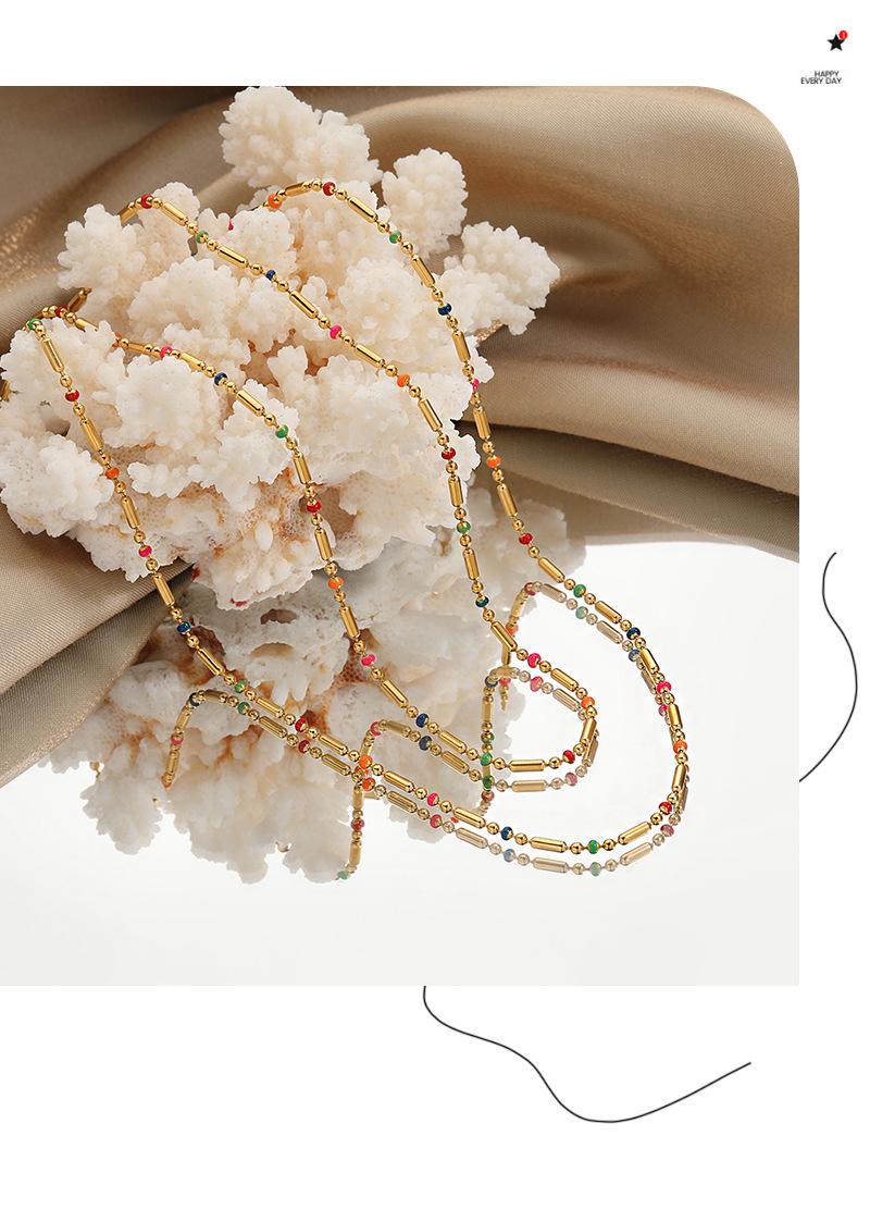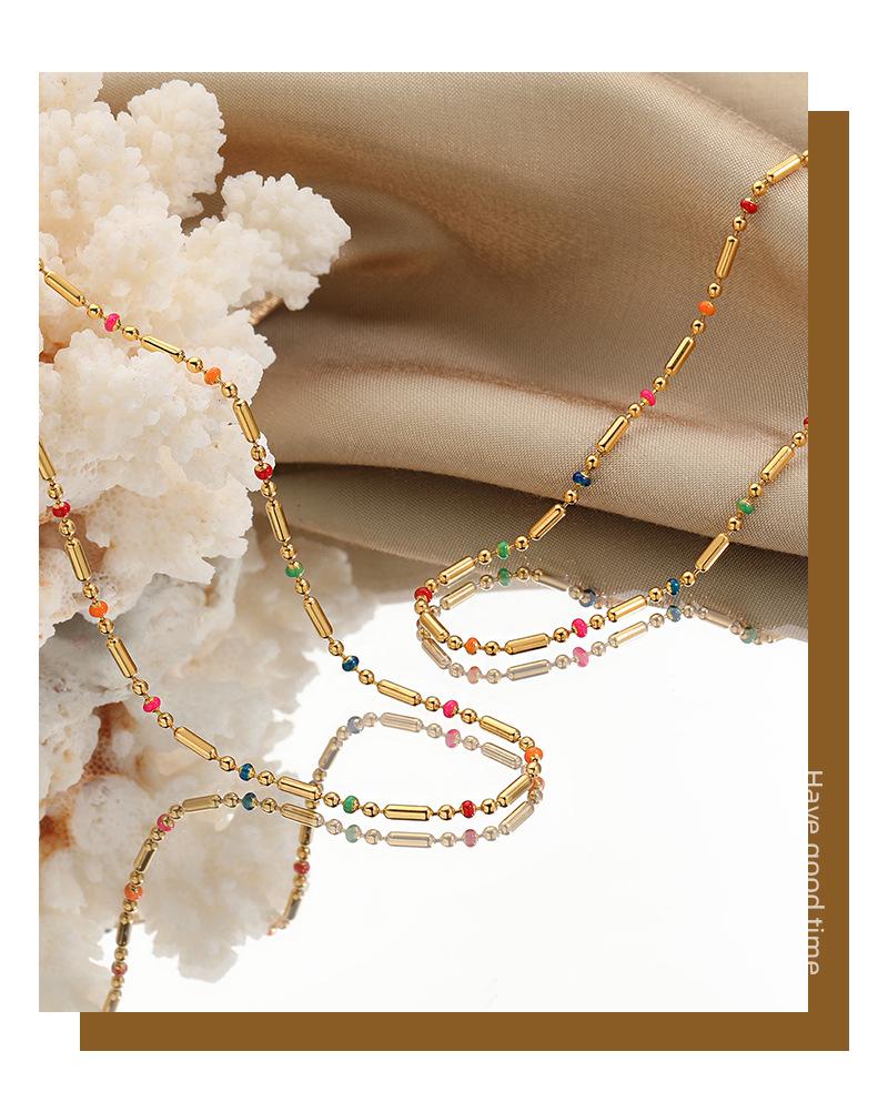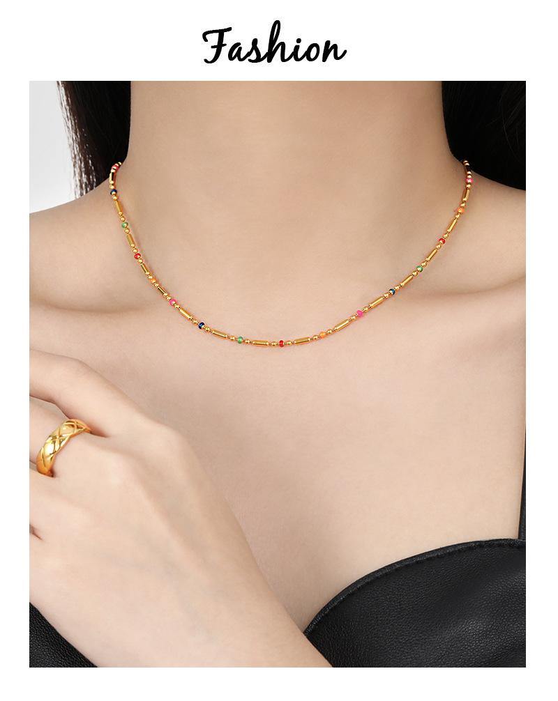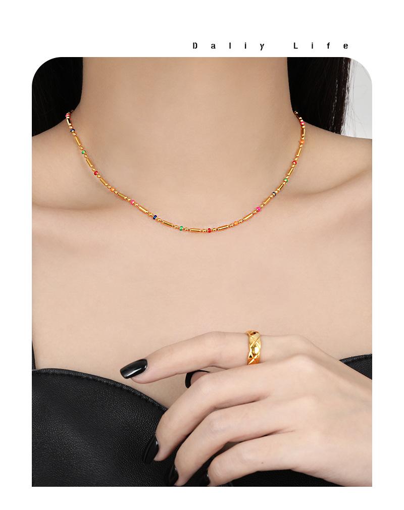 Compra Bohemio Nueva Moda Retro Nicho Goteo de Goma Collar Arcoíris para Mujer Elegante Personalizado Chapado en Oro Acero Titanio Cadena Clavícula al por mayor en Joom.pro