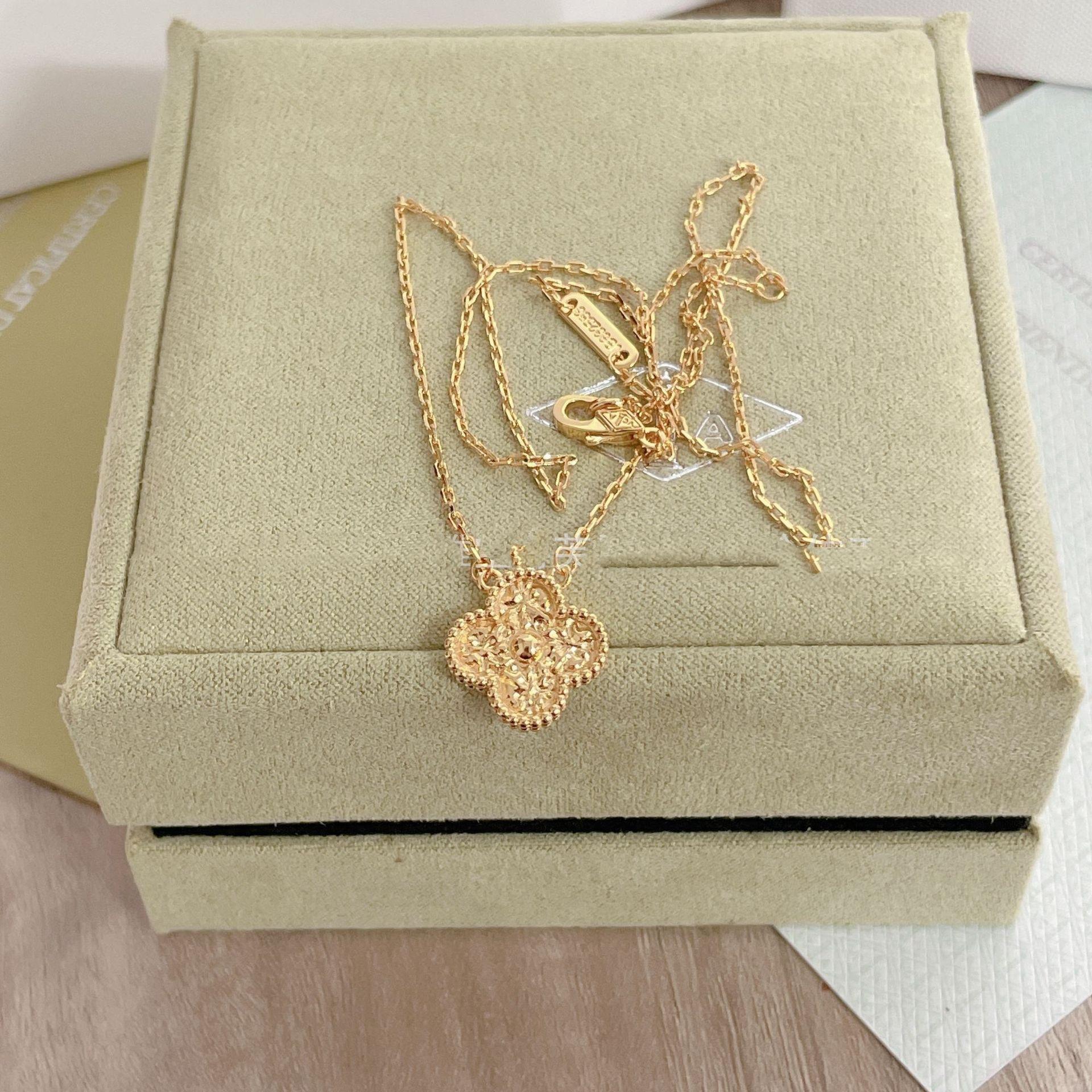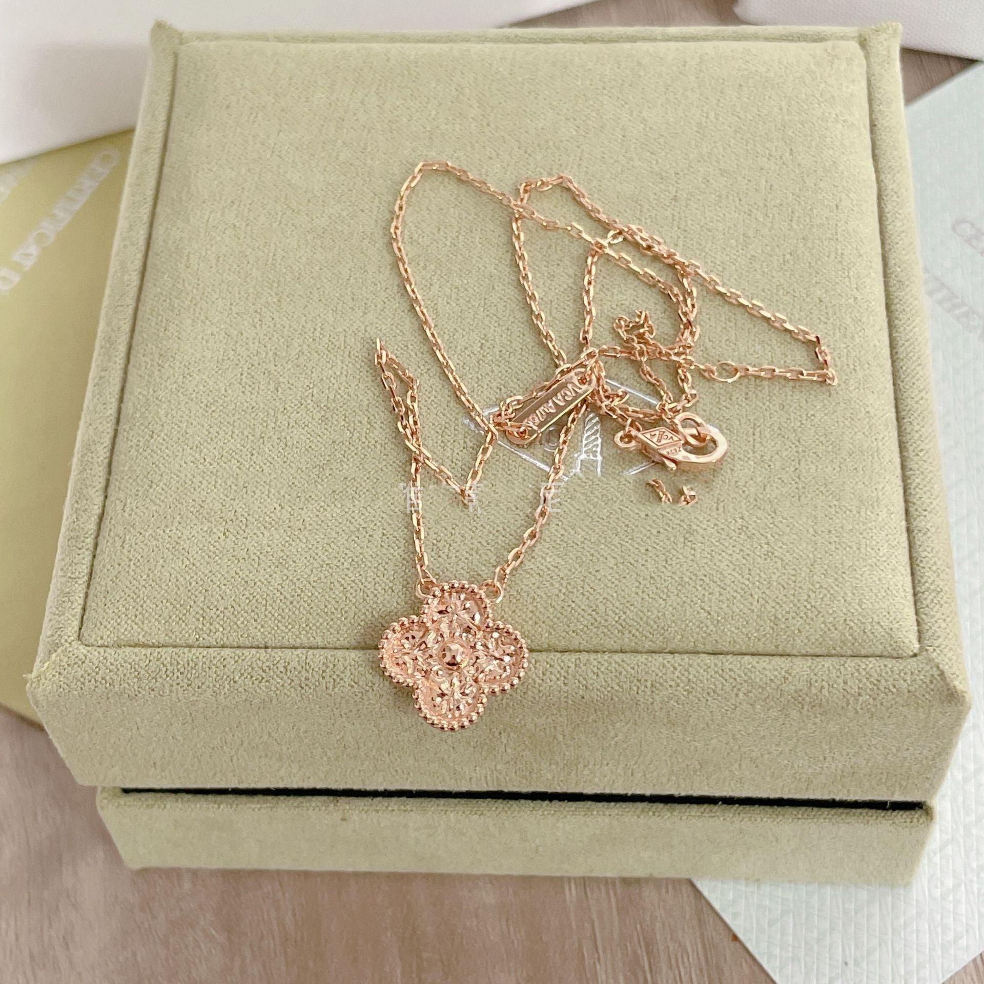 Collar de bronce con trébol de cuatro hojas de alta versión en oro rosa para mujer, cadena de clavícula de oro rosa, joyería directa de fábrica para una generación de cabello