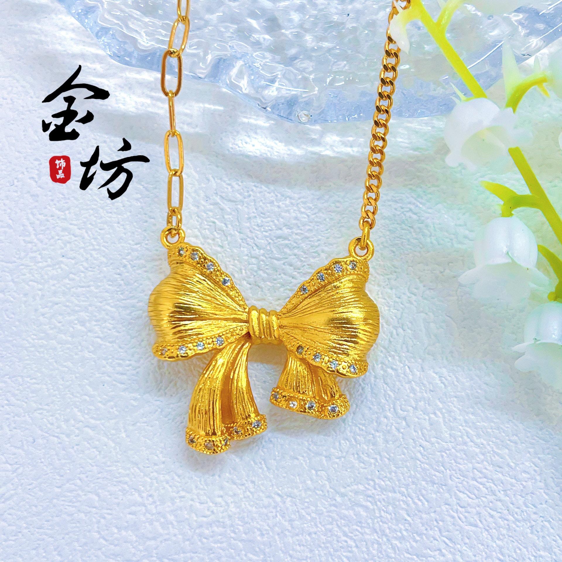 Tienda de oro del mismo estilo, estilo antiguo, oro arena 999 en la carrera, colgante de lazo grande de princesa, joyería de bricolaje, accesorios femeninos hechos a mano al por mayor