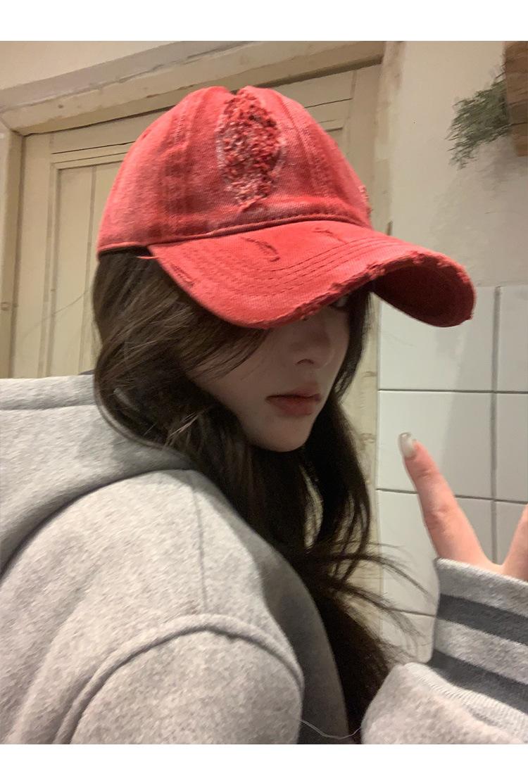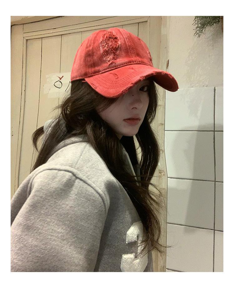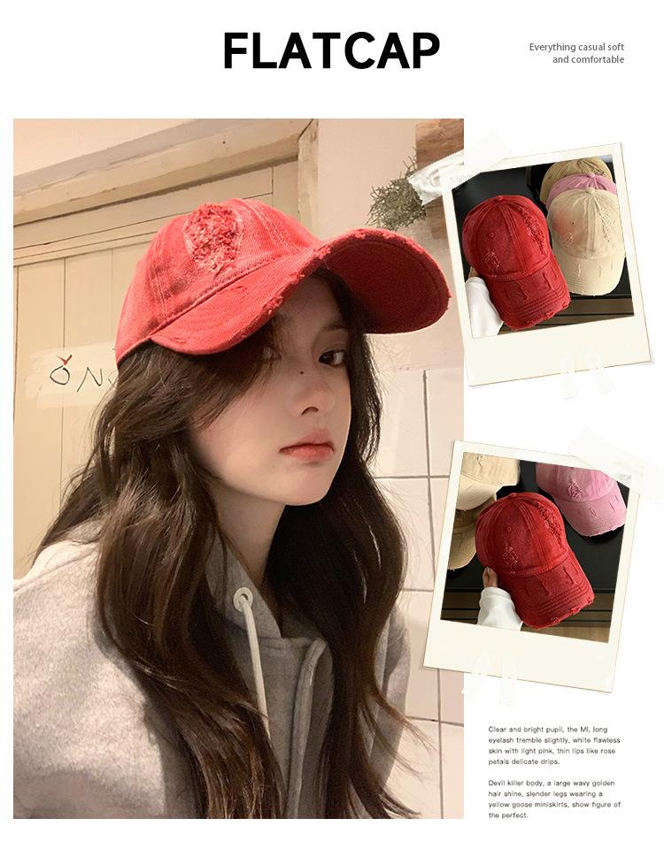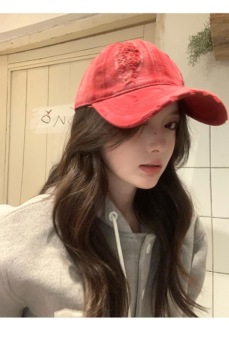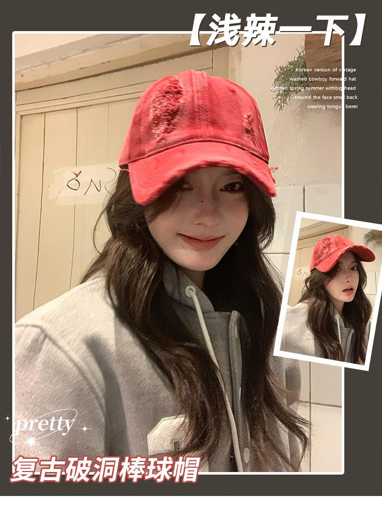 Gorra de béisbol con agujero antiguo y gran circunferencia de cabeza para mujer, nueva gorra de estilo coreano para todo uso, gorra de ala ancha con cara grande y pequeña