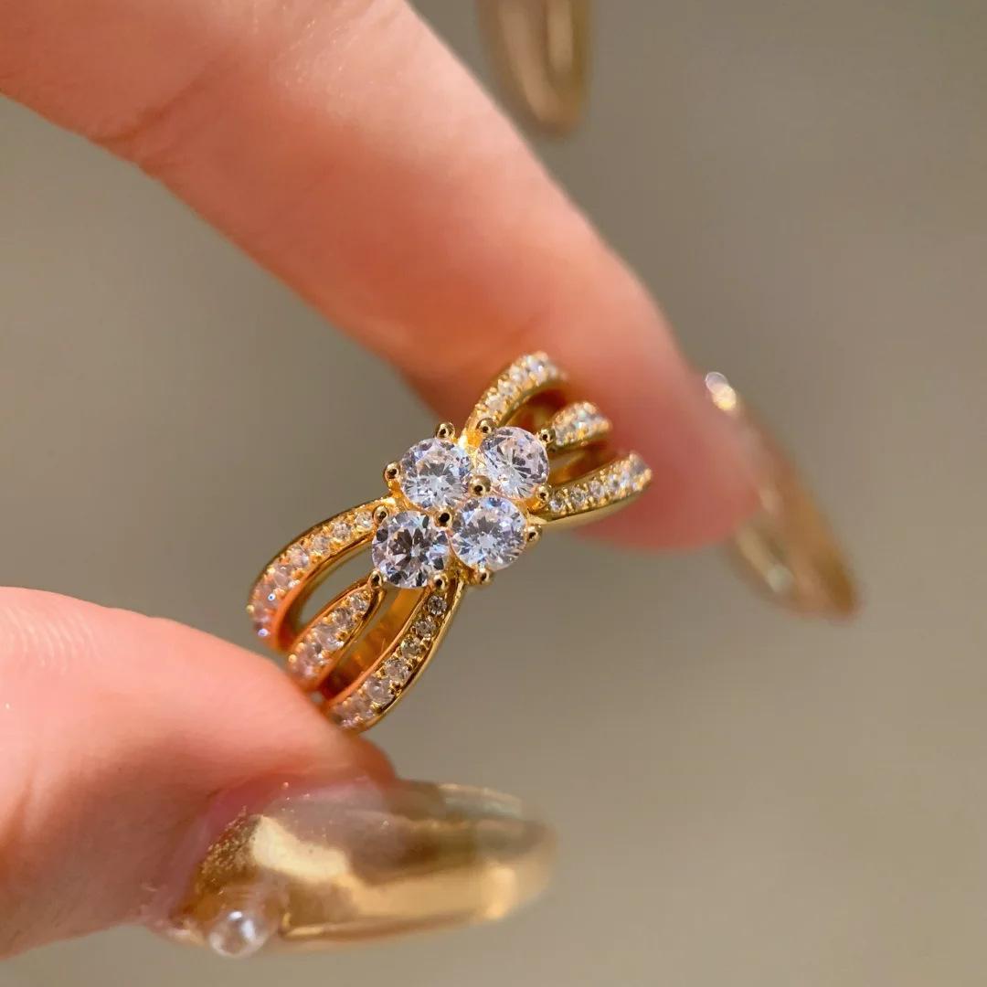 Compra Anillo elegante de estilo granero con lazo de trébol de cuatro hojas, diseño de nicho de lujo ligero, anillo de diamantes para mujer, anillo de diamantes, anillo de bodas al por mayor en Joom.pro