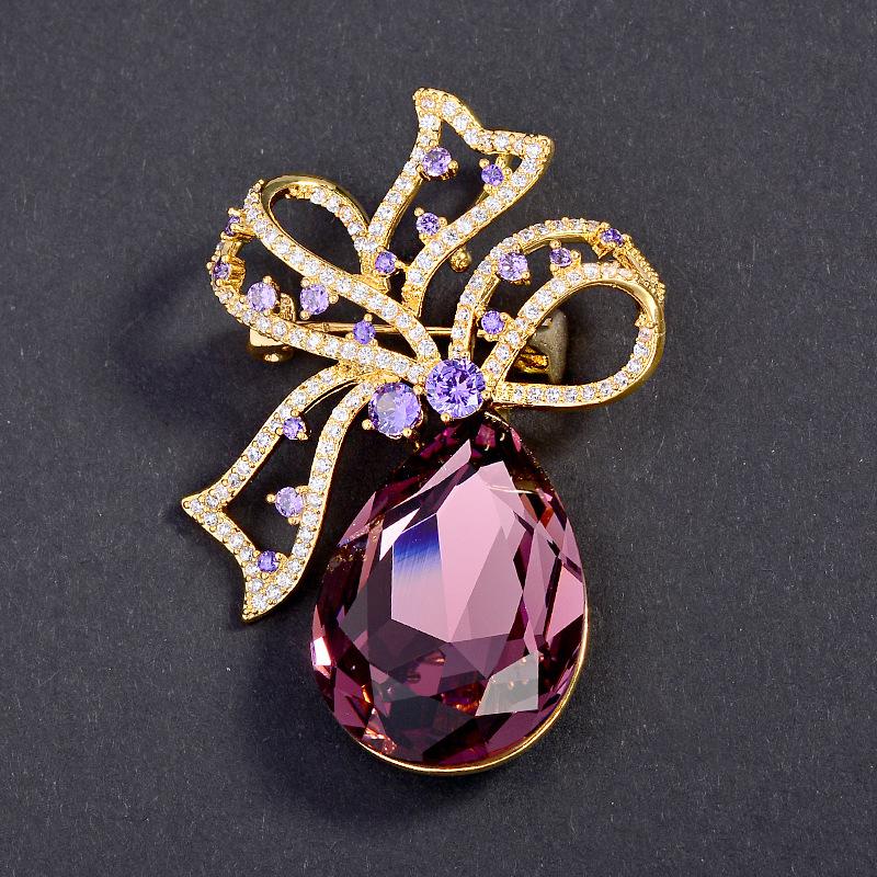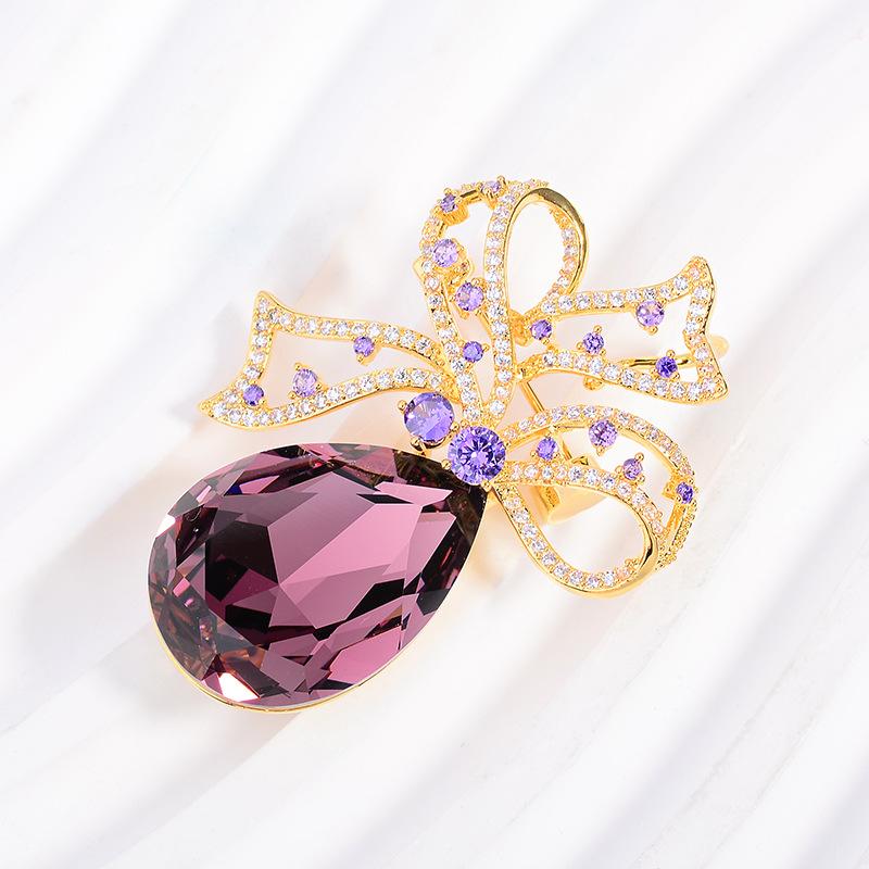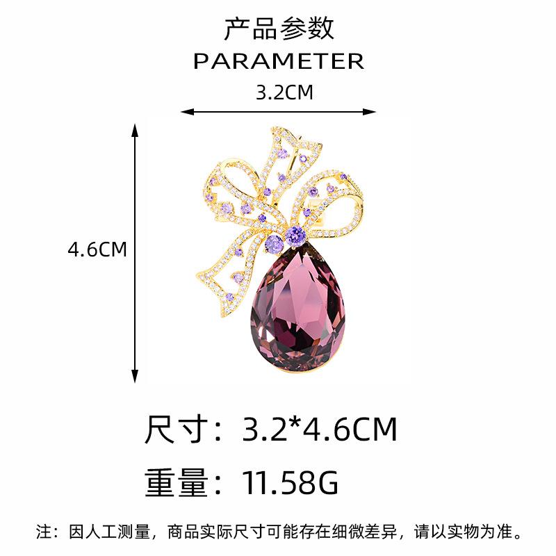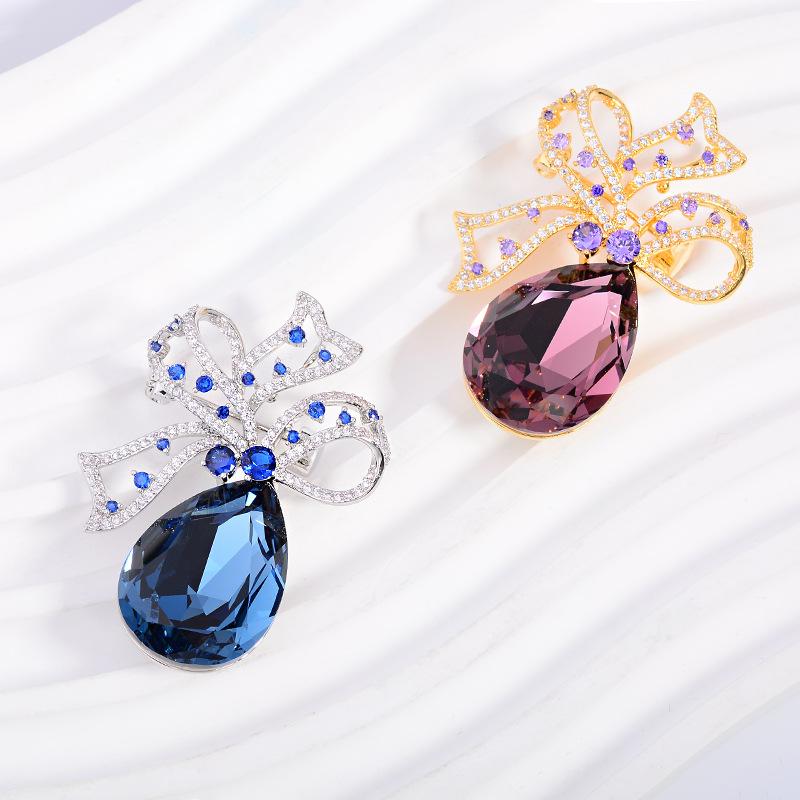 Nuevo y exquisito broche de lazo de cristal de imitación, broche de microcircón de alta gama, accesorio de ramillete combinable con todo.