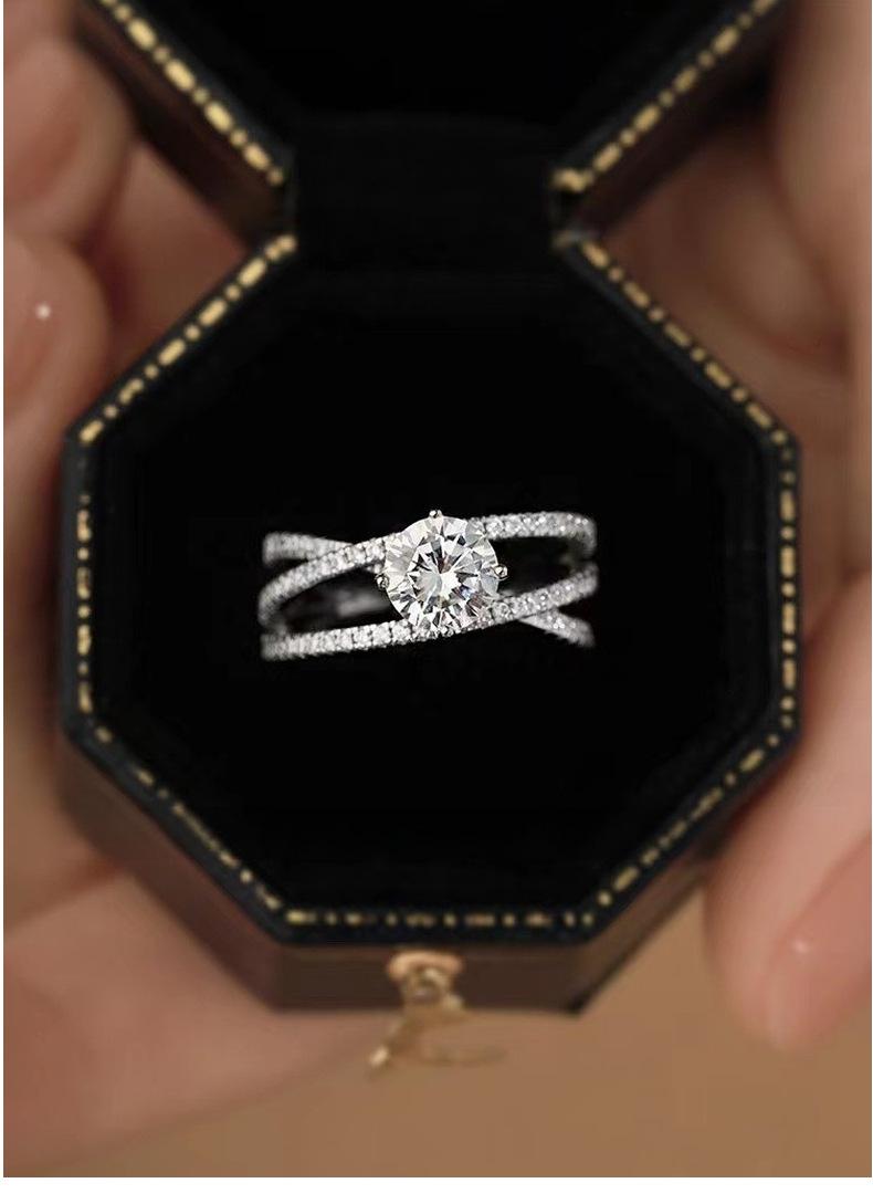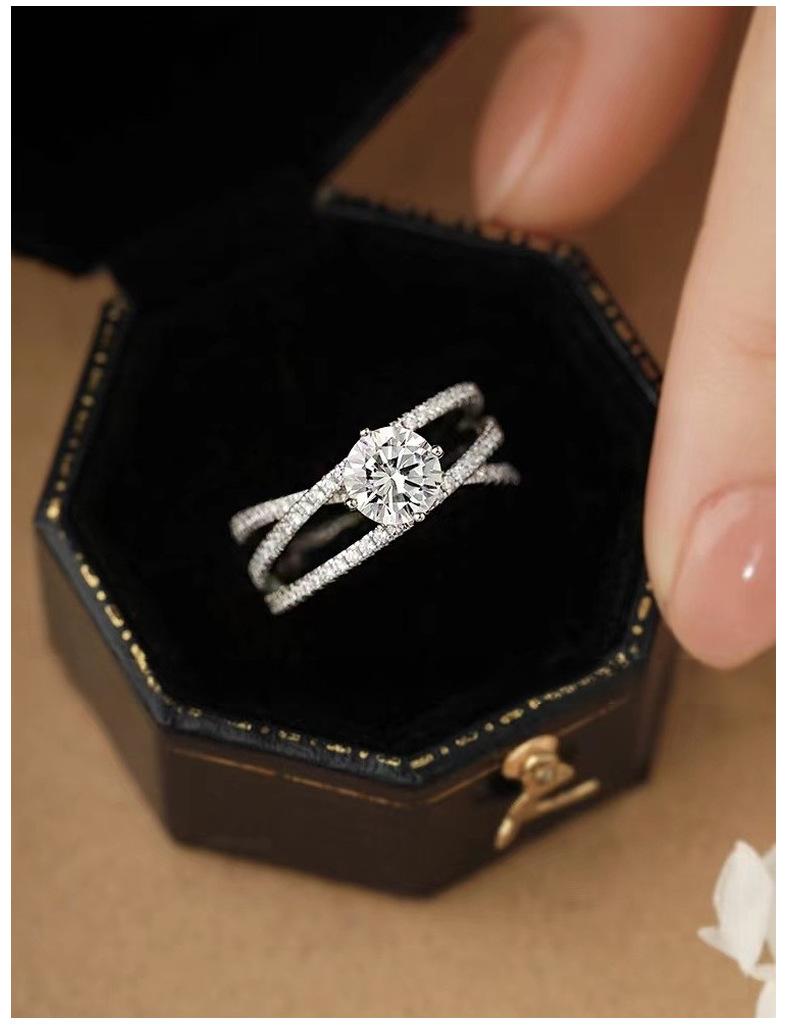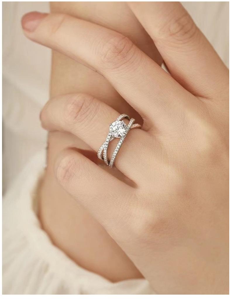 Anillo de moissanita en vivo para mujer, anillo de diamantes de 1 quilate, anillo de diamantes entrelazados, fila de diamantes para regalo de cumpleaños y boda.