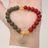Pulsera de cinabrio Ping An para mujer, con calabaza de jade hetiano natural y incrustaciones de oro, joyería antigua con cuentas Fulu.