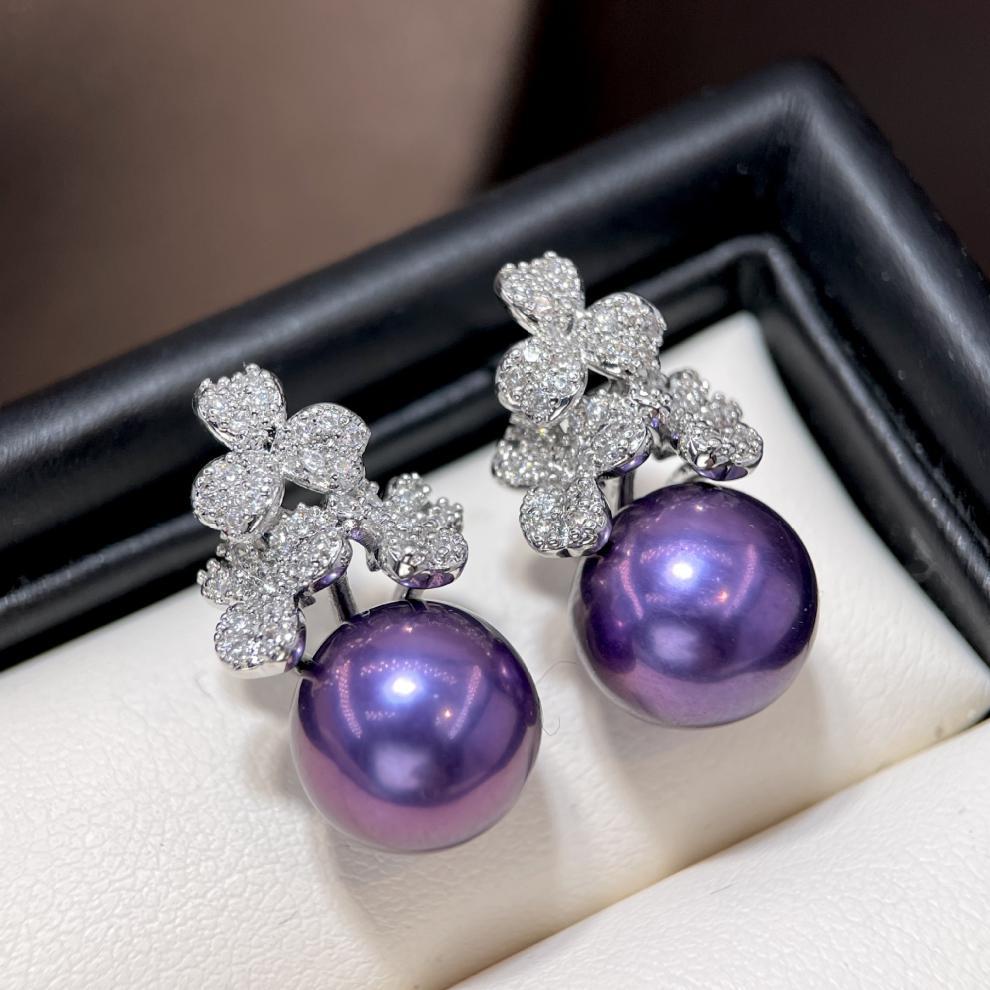 Versión coreana de pendientes de perlas moradas de agua dulce Edison redondos de grano grande, exquisito temperamento, pendientes de perlas de lujo al por mayor