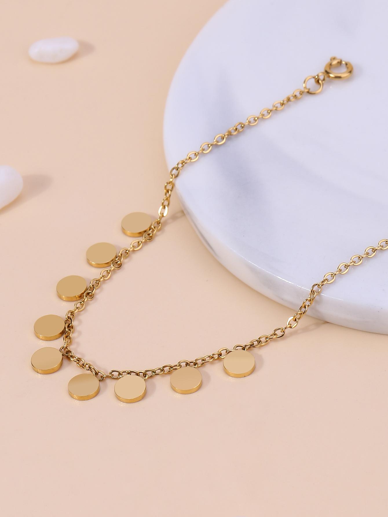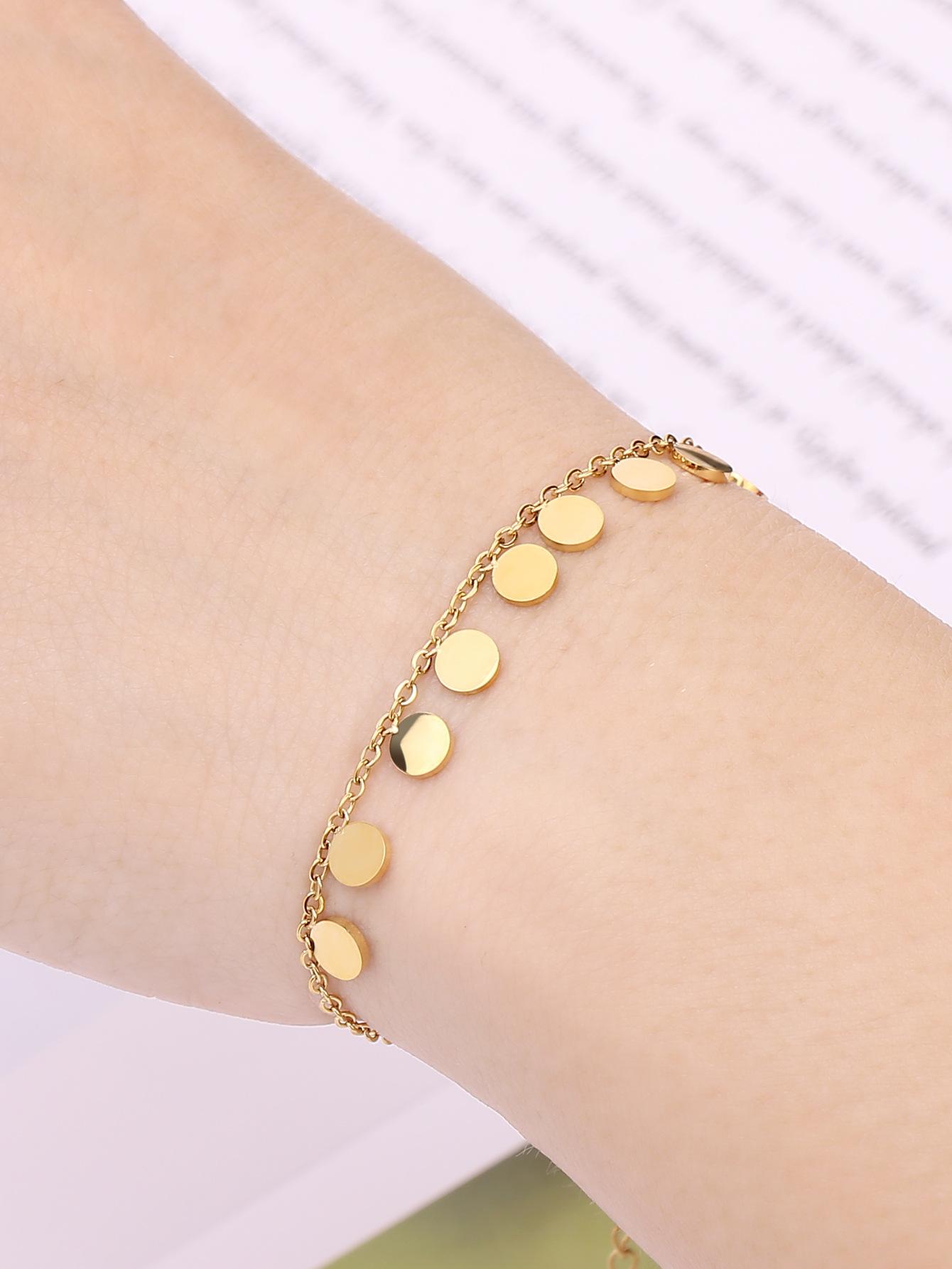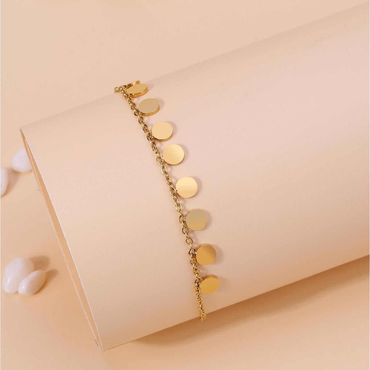 Pulsera con colgante pequeño redondo transfronterizo europeo y americano para mujer, sencilla, combinable con todo, de acero de titanio y chapada en oro.