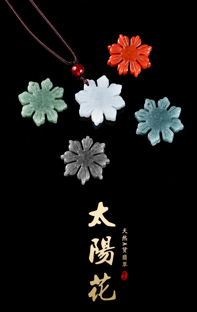 Colgante de jade de Birmania natural con forma de girasol y hebilla de jade para mujer, venta al por mayor