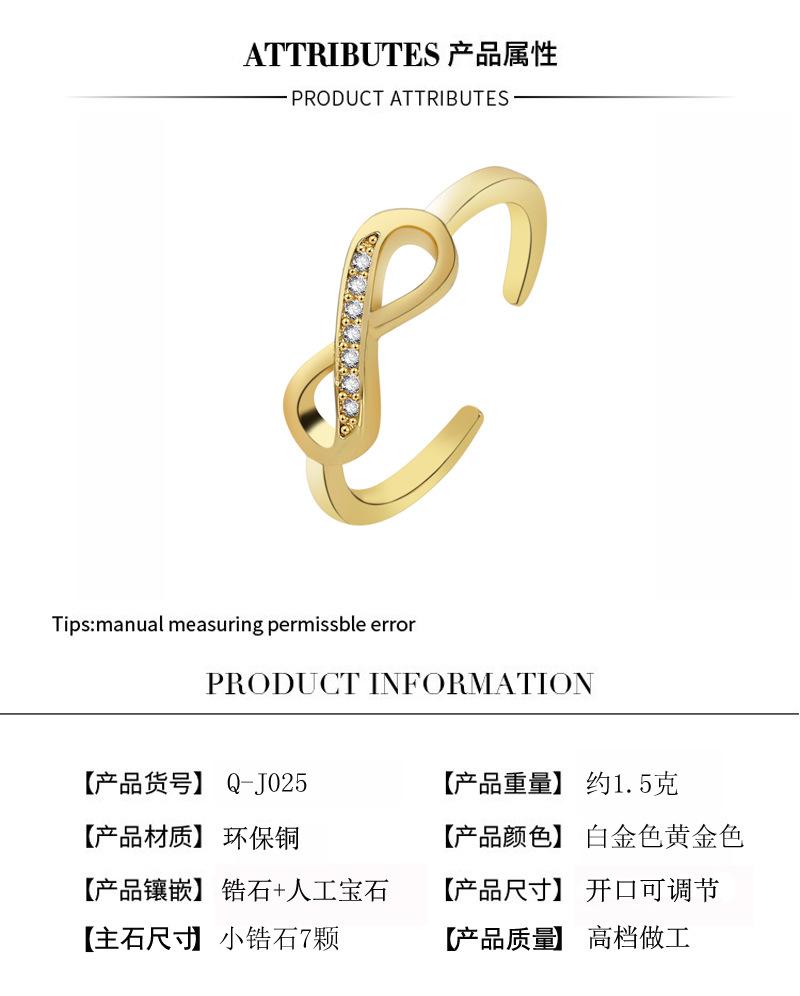 Compra 2023 nuevo anillo abierto de 8 palabras de estilo coreano simple con lazo, joyería chapada en oro transfronteriza europea y americana, entrega de una sola pieza al por mayor en Joom.pro