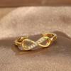 2023 nuevo anillo abierto de 8 palabras de estilo coreano simple con lazo, joyería chapada en oro transfronteriza europea y americana, entrega de una sola pieza