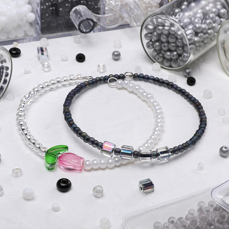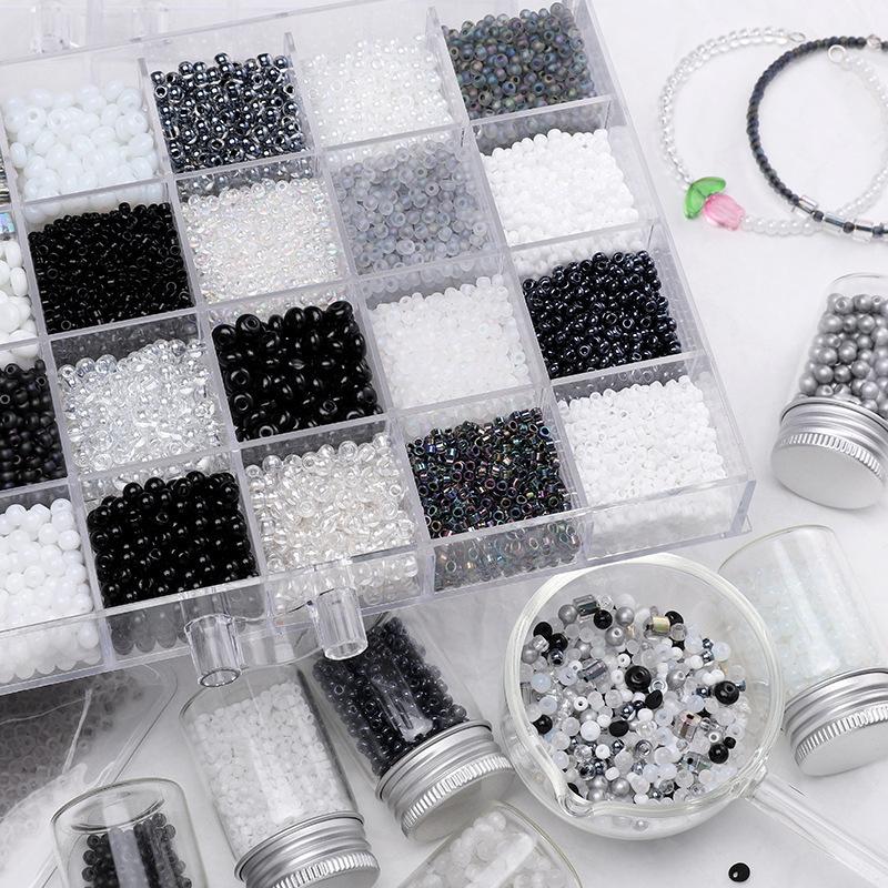 Cuentas de vidrio en blanco y negro, cuentas redondas de arroz, cuentas hechas a mano, pulsera, collar, equipaje, accesorios de joyería al por mayor