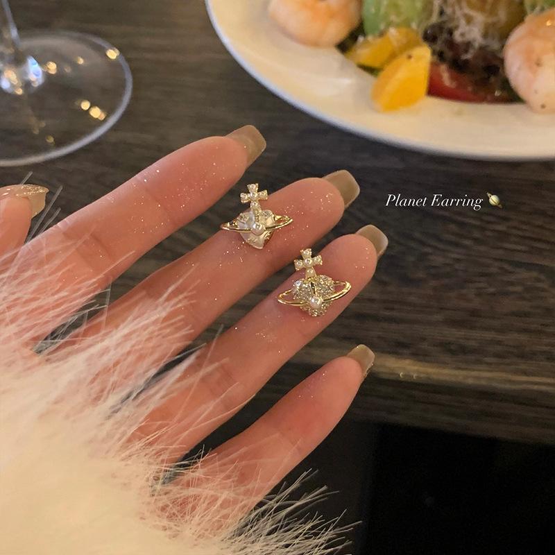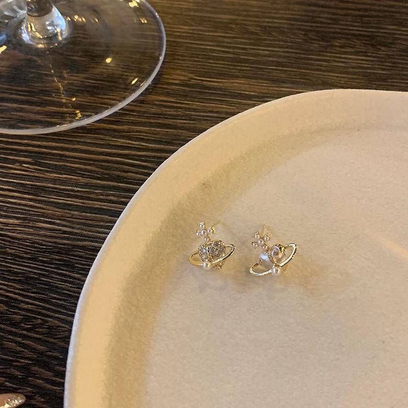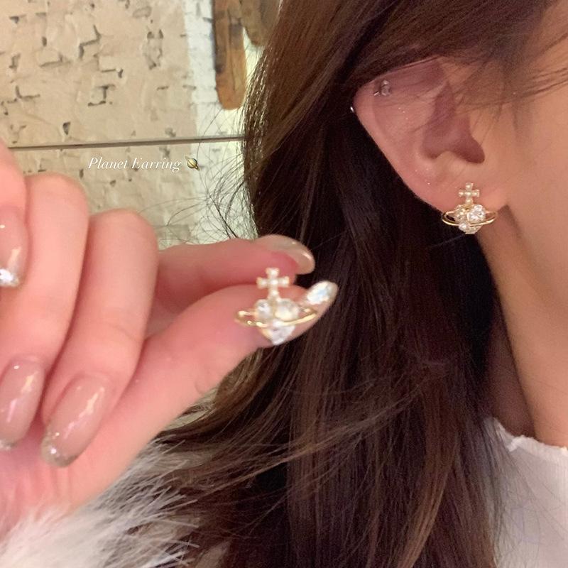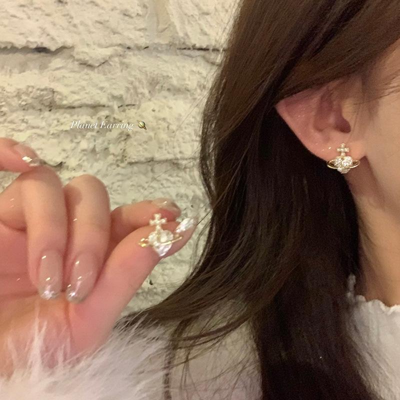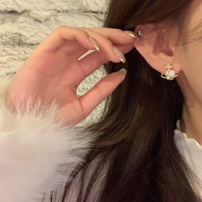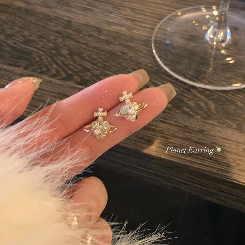 Pendientes Asimétricos de Planeta a Juego de Moda para Otoño e Invierno Pendientes de Nicho de Lujo Ligero de Alta Gama Pendientes Elegantes para Mujer Pendientes Exquisitos