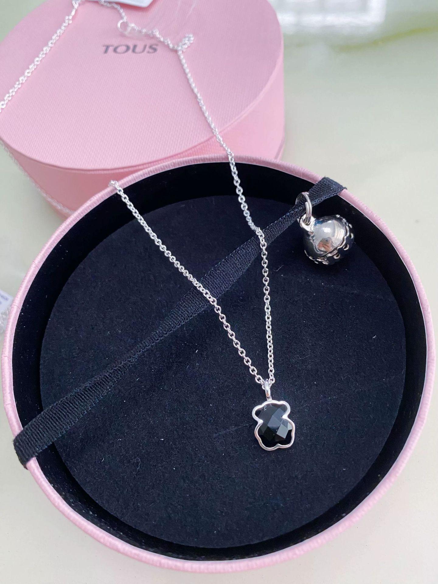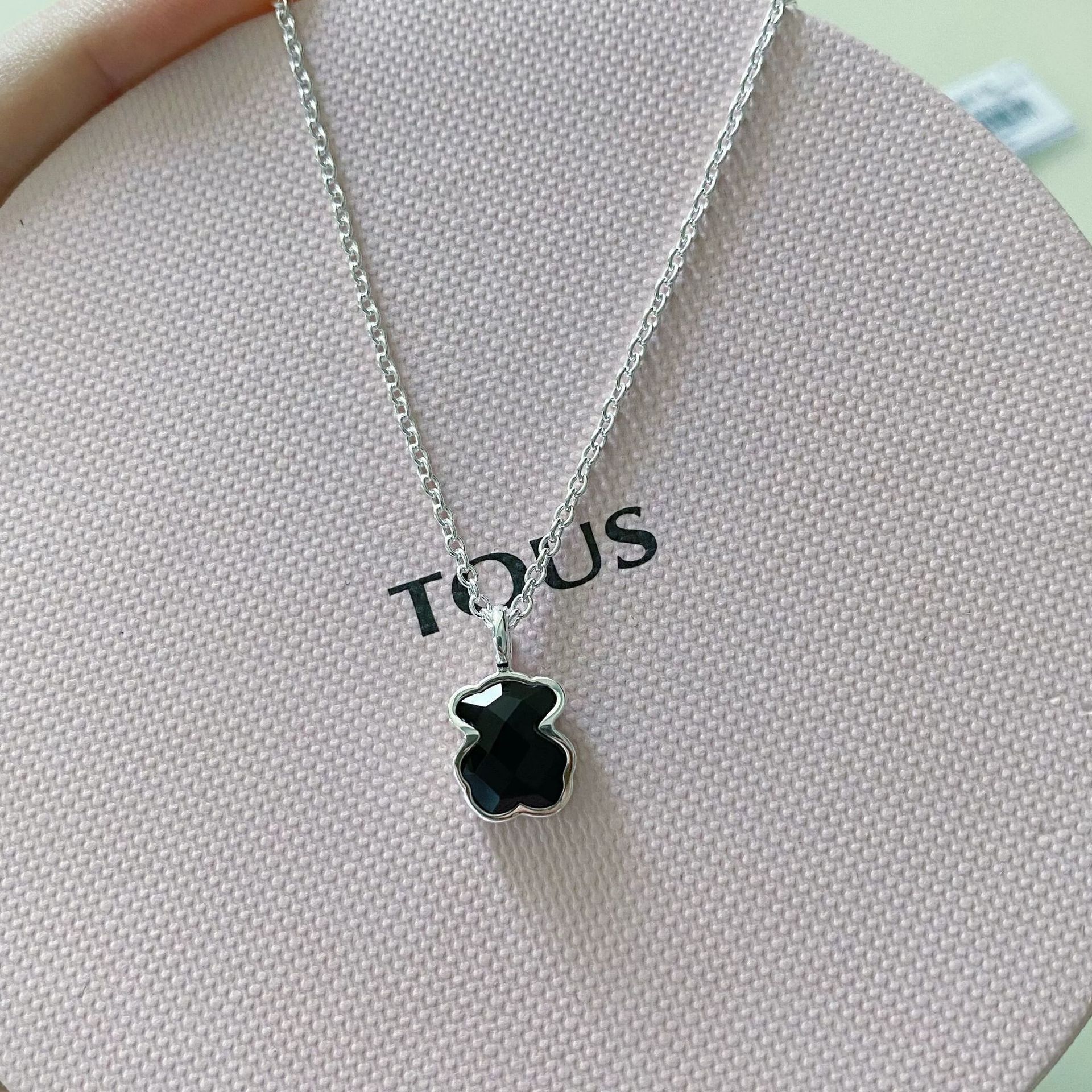 Collar de oso melocotón plata 925 ágata negra nicho alto cadena clavícula clásico fabricantes de joyería española venta al por mayor