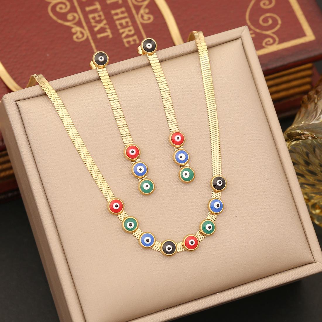 Europa y Estados Unidos nuevo juego de joyería de ojos de aceite goteado joyería de moda cadena de clavícula de acero inoxidable collar de marea N1226