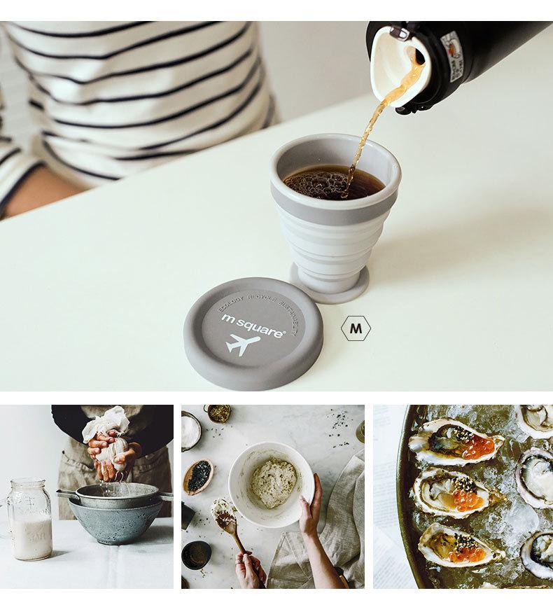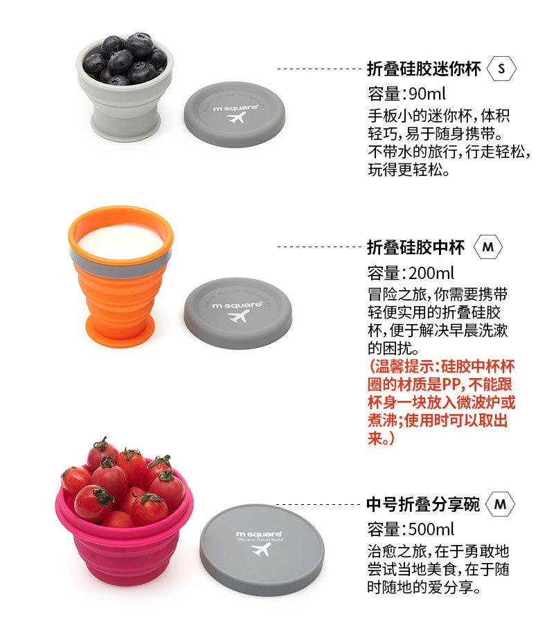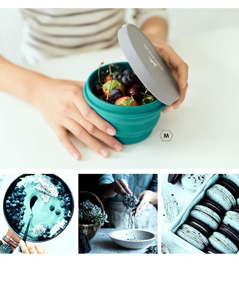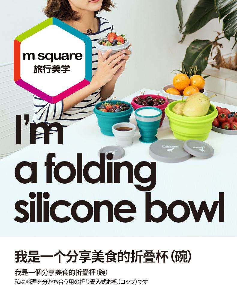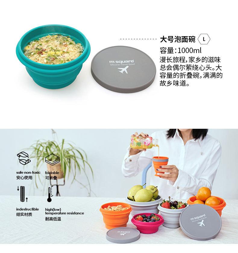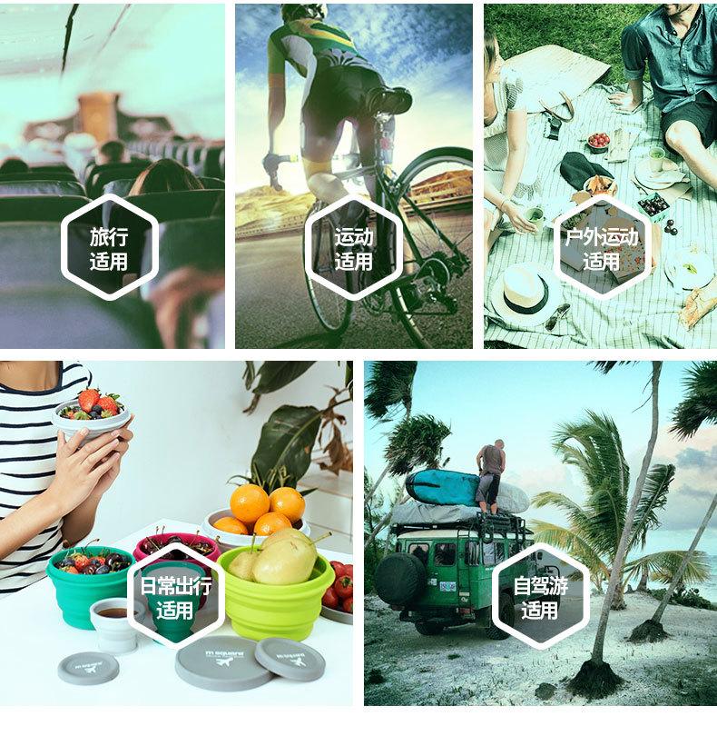 Cuenco plegable de silicona cuadrado m, portátil, para exteriores, viajes, comida, vajilla salvaje, apto para hacer gárgaras, resistente a altas temperaturas, lonchera
