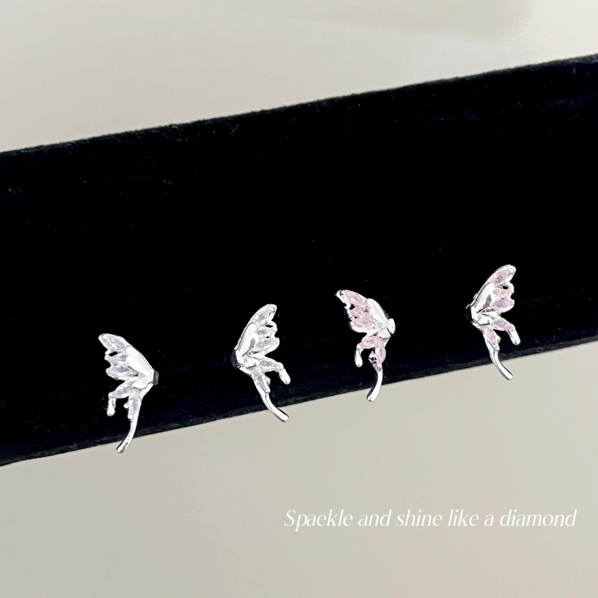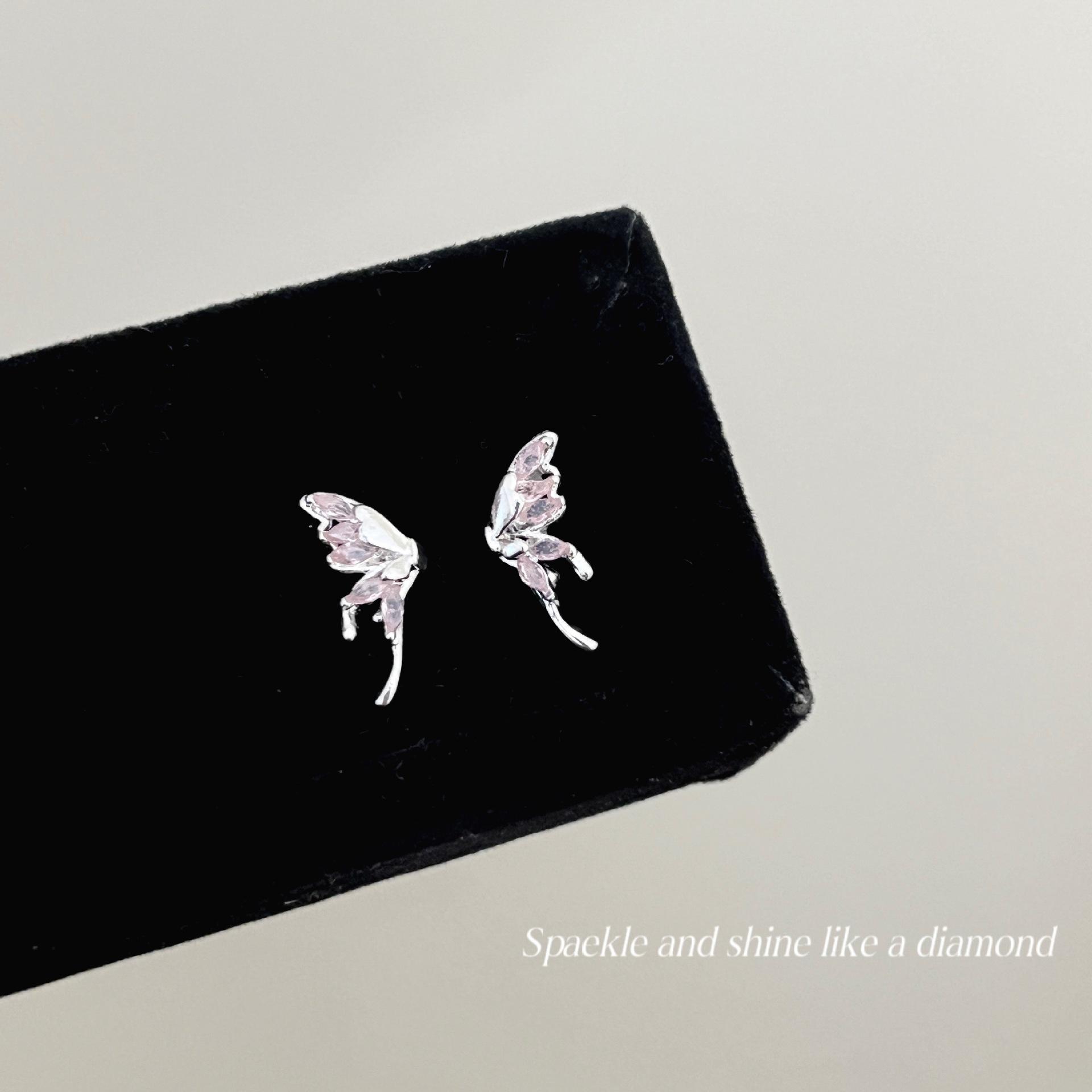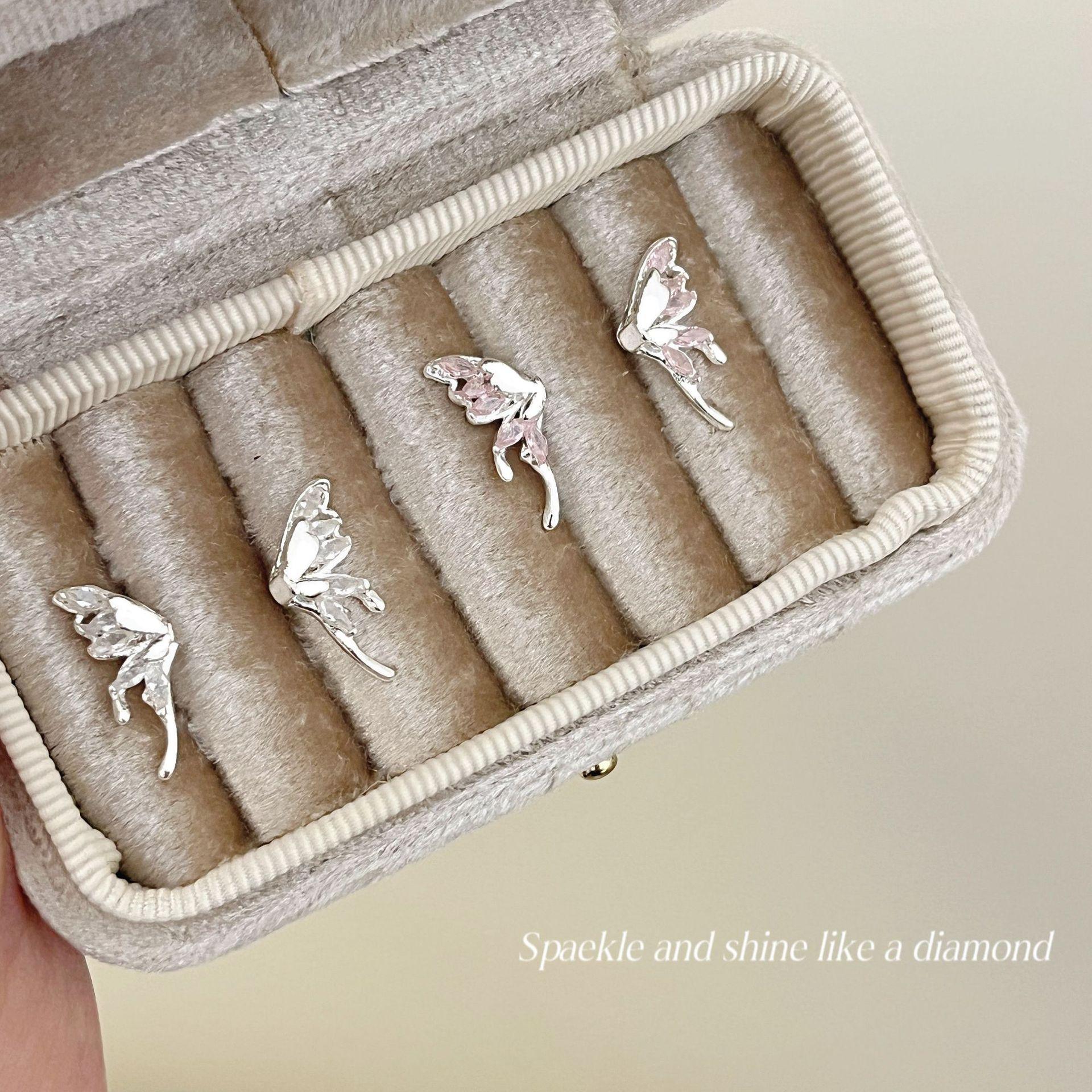 Pendientes de media mariposa de plata con circonita de hada, exquisitos pendientes de diseño de nicho para mujer, dulces y exquisitos pendientes que combinan con todo.