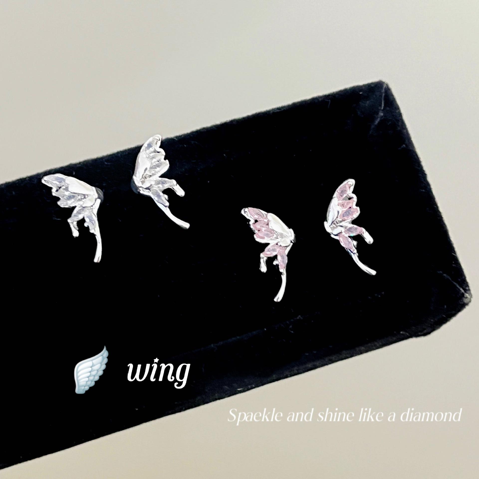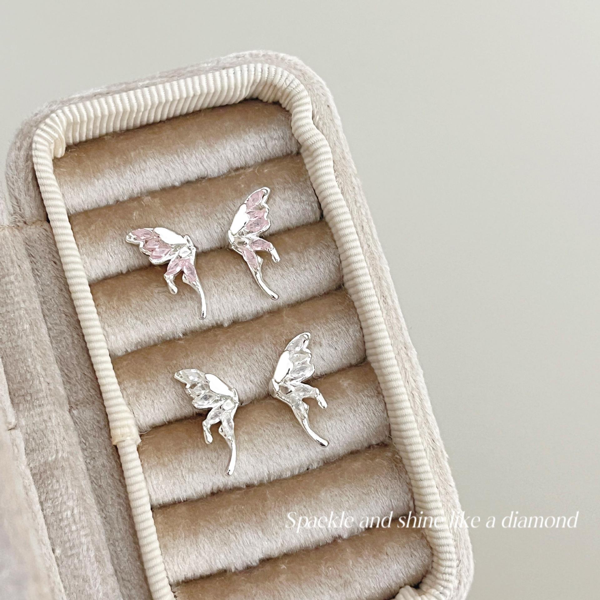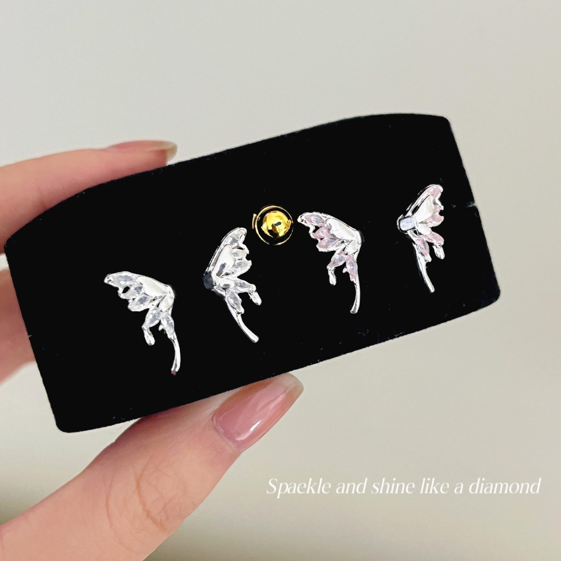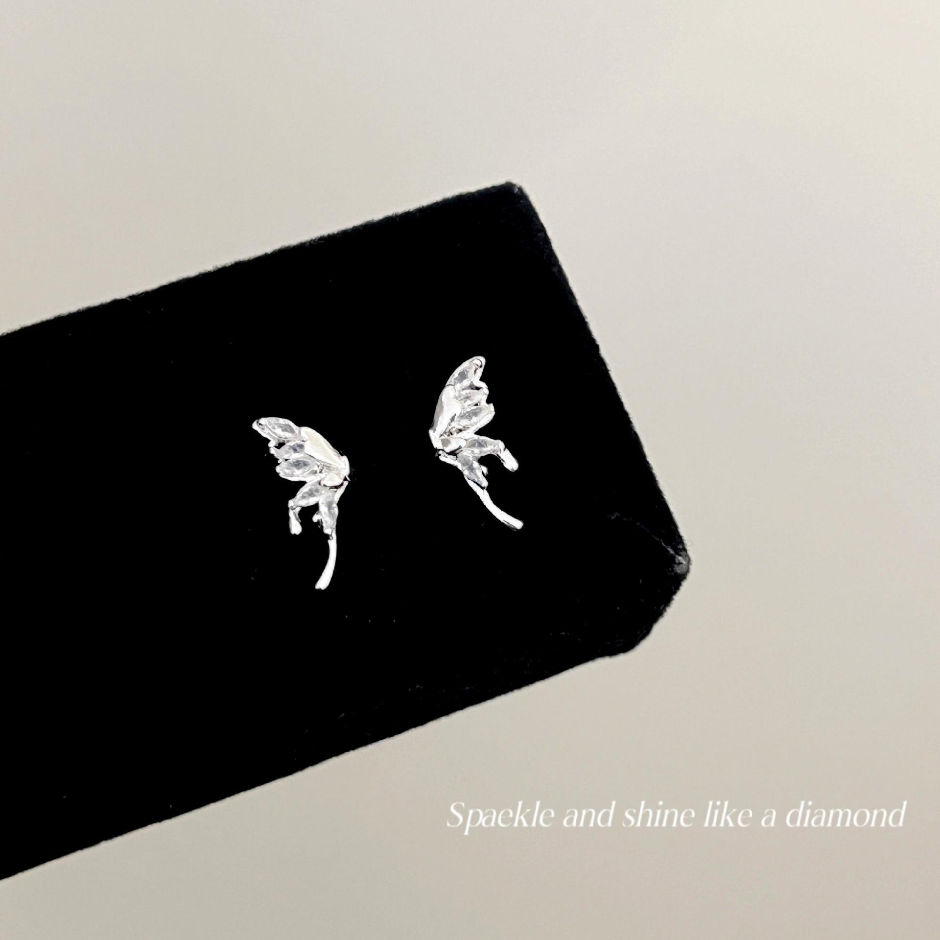 Pendientes de media mariposa de plata con circonita de hada, exquisitos pendientes de diseño de nicho para mujer, dulces y exquisitos pendientes que combinan con todo.