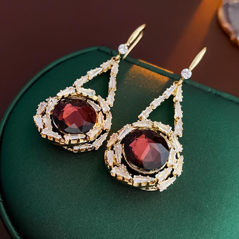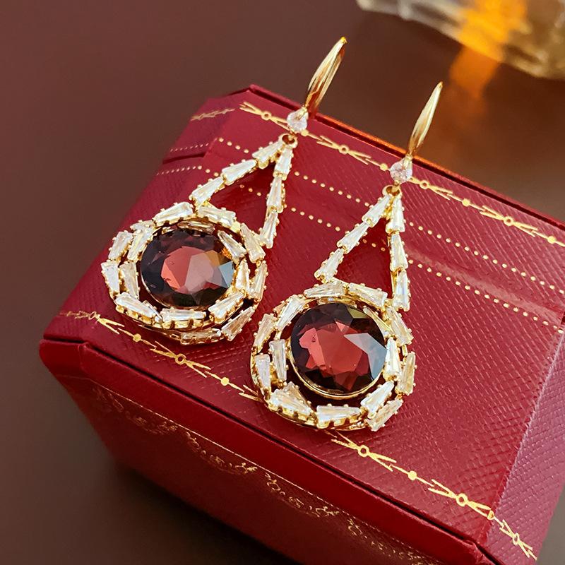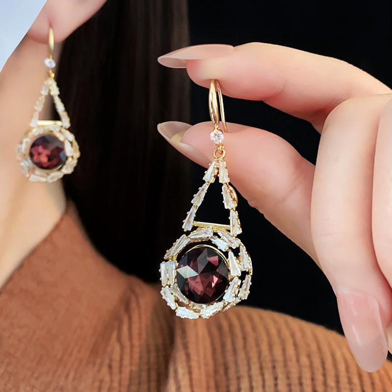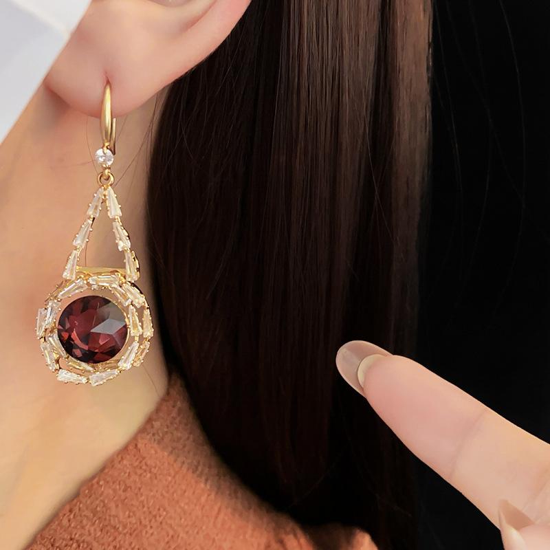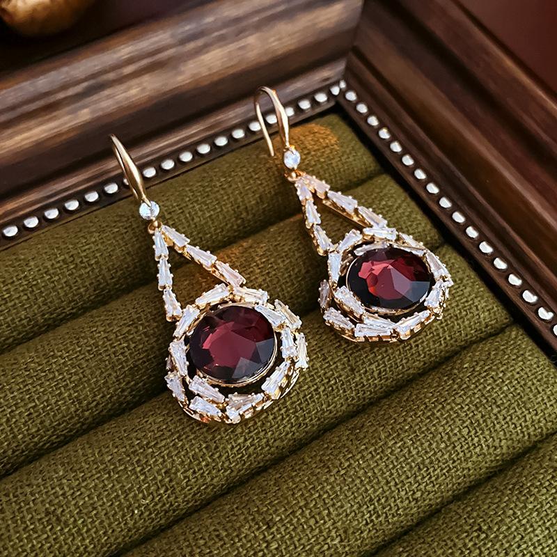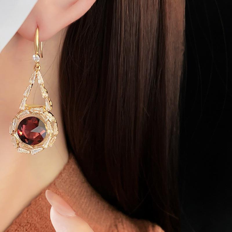 Lujo Accesible Francés Zircón Cristal Redondo Gancho para la Oreja Nicho Moda Retro Elegantes Aretes Versátiles de Alta Gama para Mujeres
