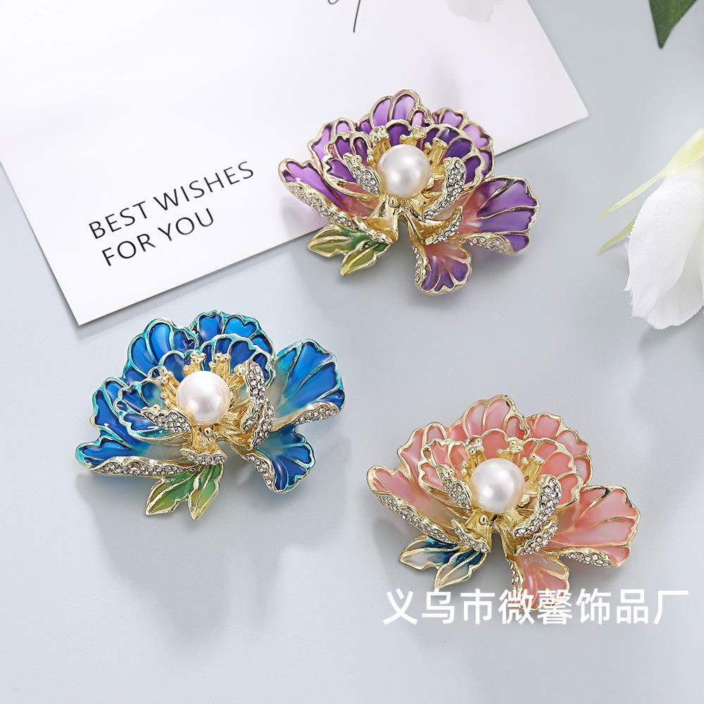 Nuevo Broche de Peonía de Moda de Perla de Agua Dulce Estilo Chino Accesorio Cheongsam Broche de Imperitación Alfiler de Seguridad