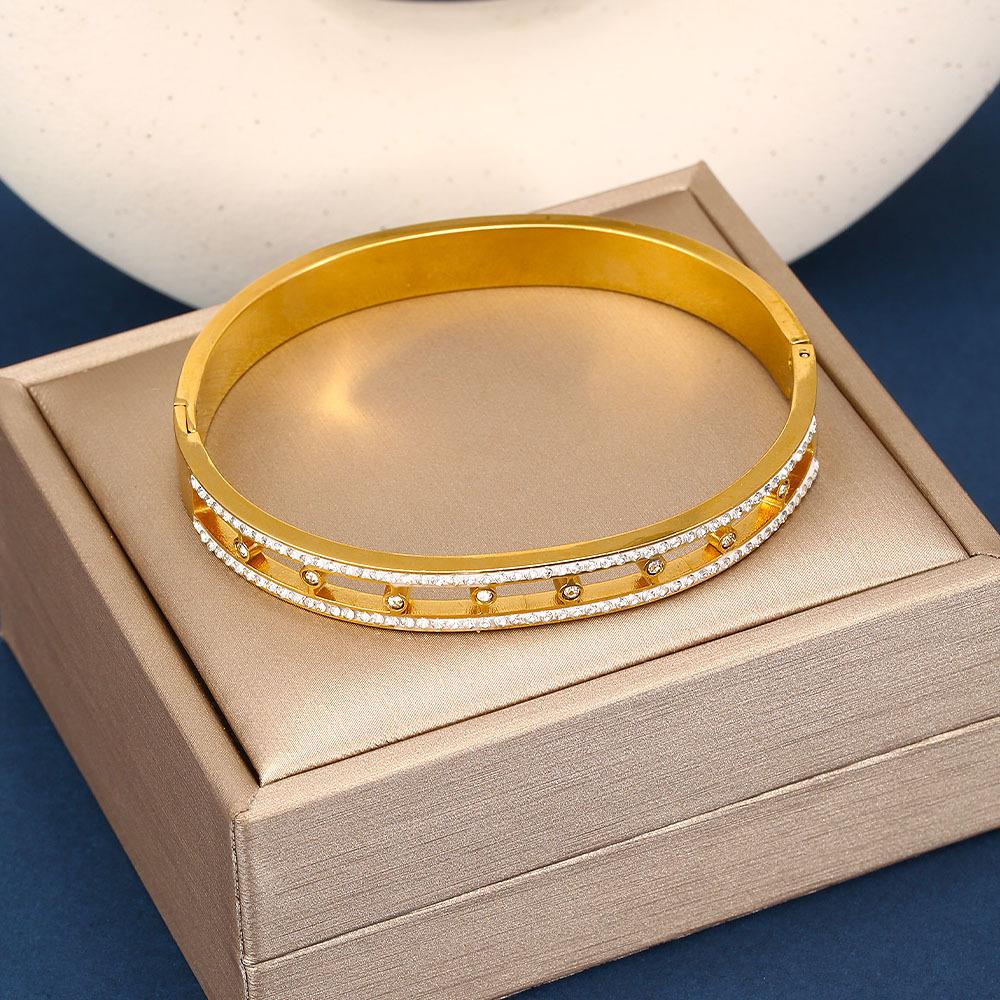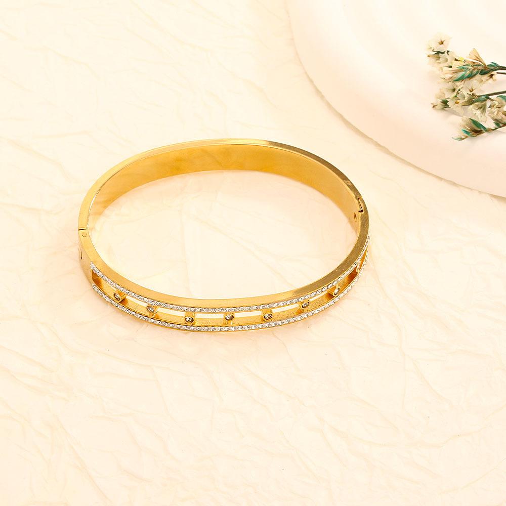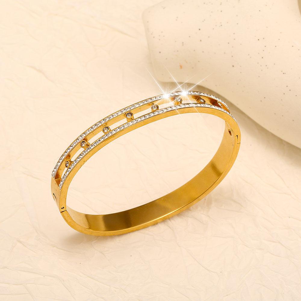Nueva Pulsera de Acero de Titanio Dorado de Marca de Moda Europea y Americana de Venta Caliente Transfronteriza para Mujer con Diamantes, Moda de Alta Gama, Combinación con Todo, Regalo