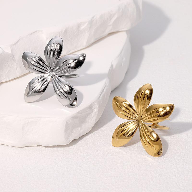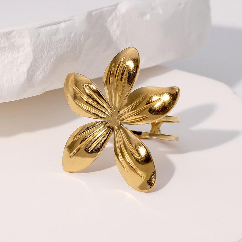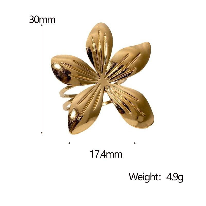Anillo abierto de acero inoxidable de alta calidad chapado en oro para mujer, estilo festivo sencillo, personalidad transfronteriza europea y americana.