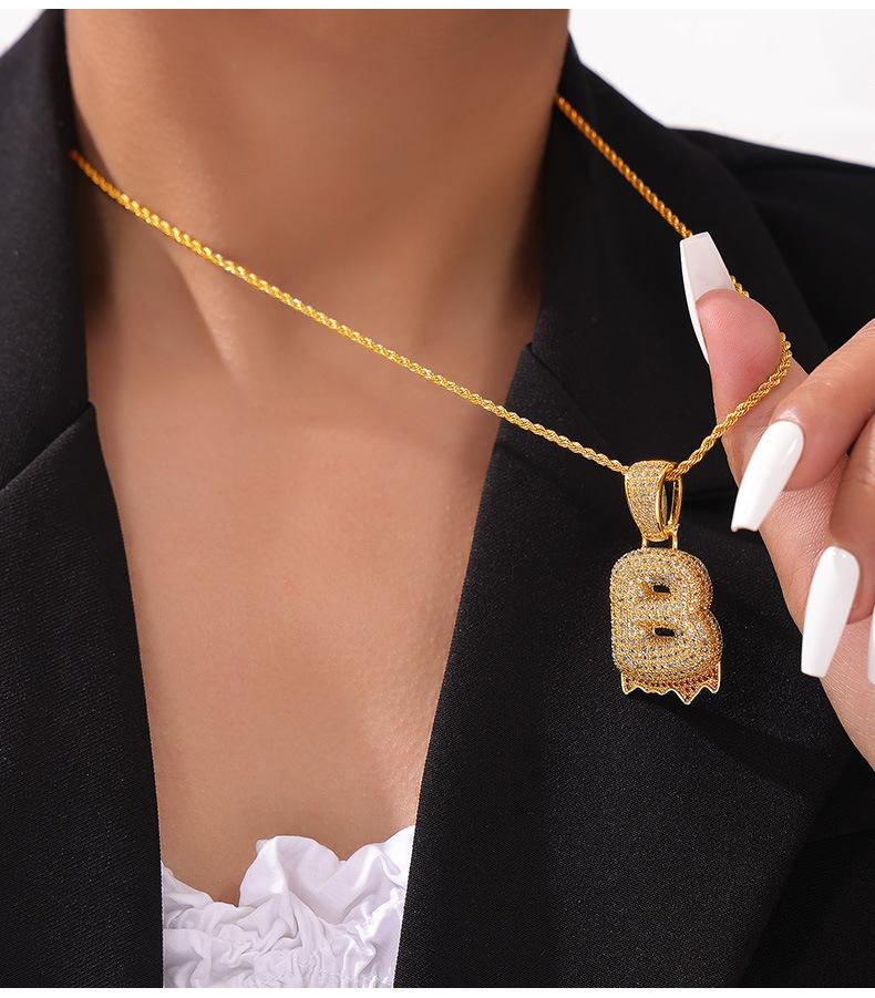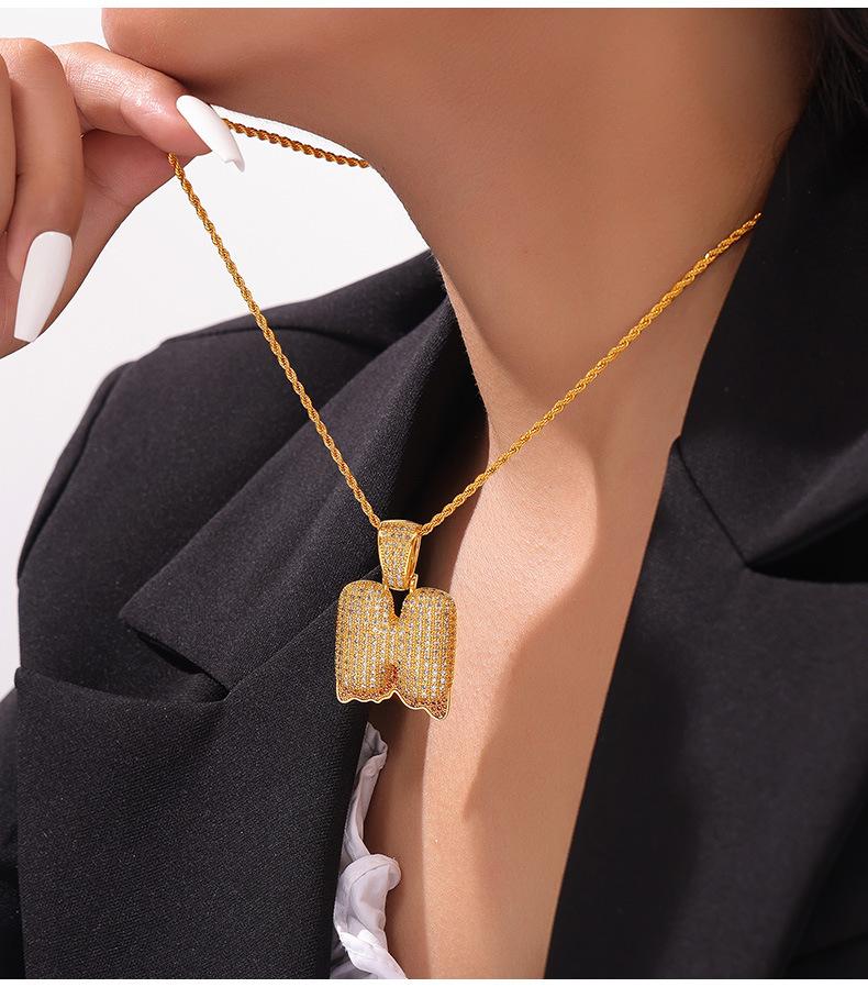 Compra Collar elegante de estilo nuevo, estilo europeo y americano, con diseño de personalidad para mujer, colgante de cobre con incrustaciones de diamantes de 26 letras, cadena de clavícula de acero de titanio de alta calidad. al por mayor en Joom.pro