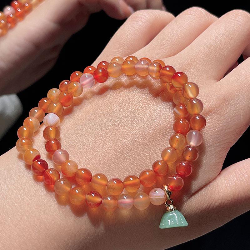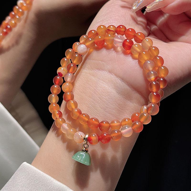 Pulsera sencilla retro de ágata roja de dos círculos para mujer, nueva china, desmontable, con colgante de loto, pulsera de lazo al por mayor