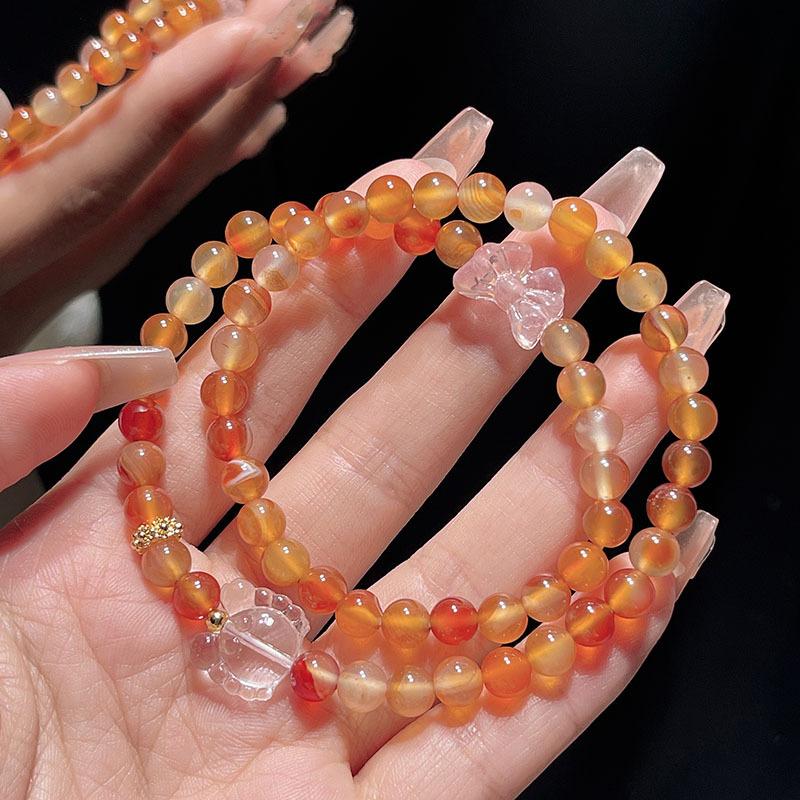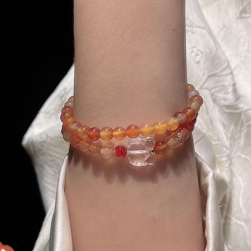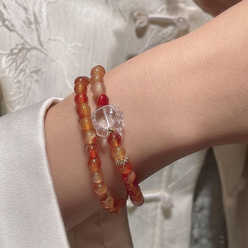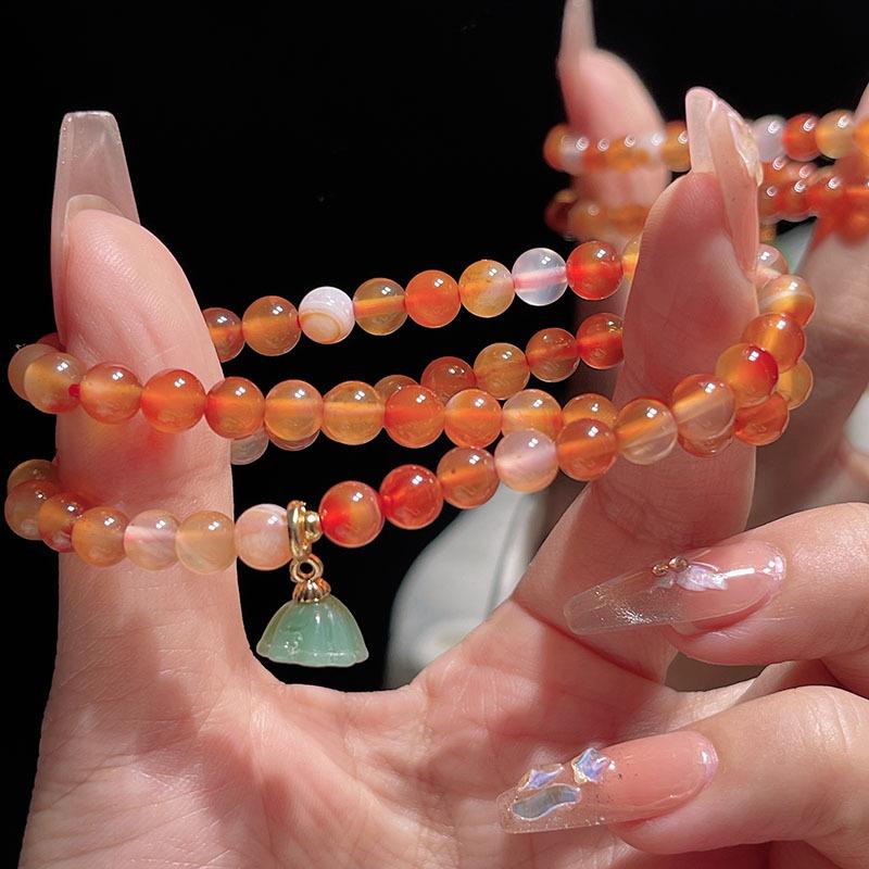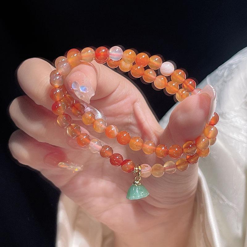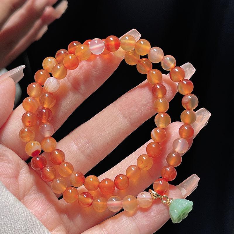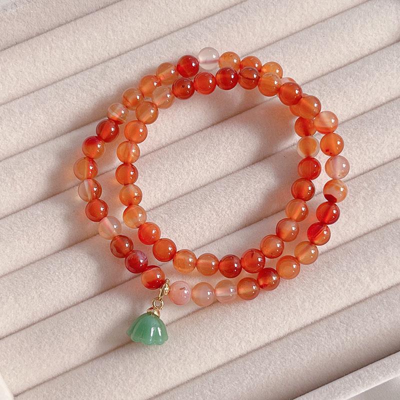 Compra Pulsera sencilla retro de ágata roja de dos círculos para mujer, nueva china, desmontable, con colgante de loto, pulsera de lazo al por mayor al por mayor en Joom.pro