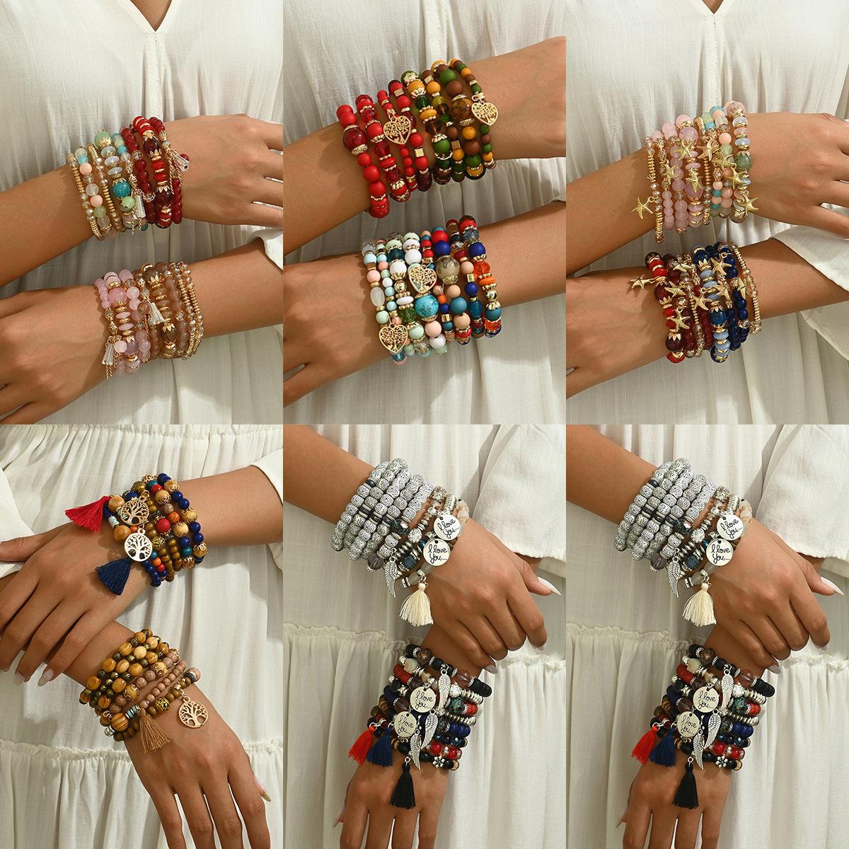 Joyería de Moda Transfronteriza Nueva Pulsera Bohemia Multicapa de Cristal y Vidrio Cuentas Coloridas Retro para Verano