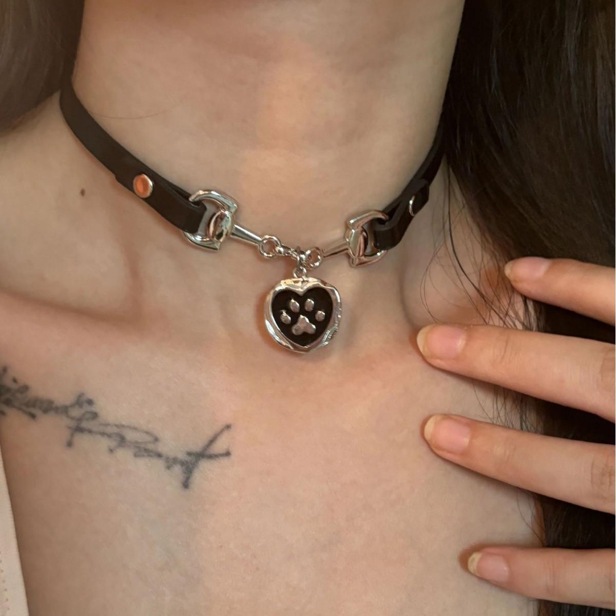Collar de cuero con colgante de garra de gato para chica, estilo dulce, genial y sexy, cadena para clavícula, gargantilla femenina con diseño de collar con sentido