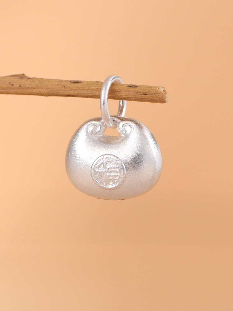 Colgante de plata de ley 999 con diseño de martillo pequeño y palabra de la fortuna Jiyan, con cadena de clavícula y candado de plata, regalo