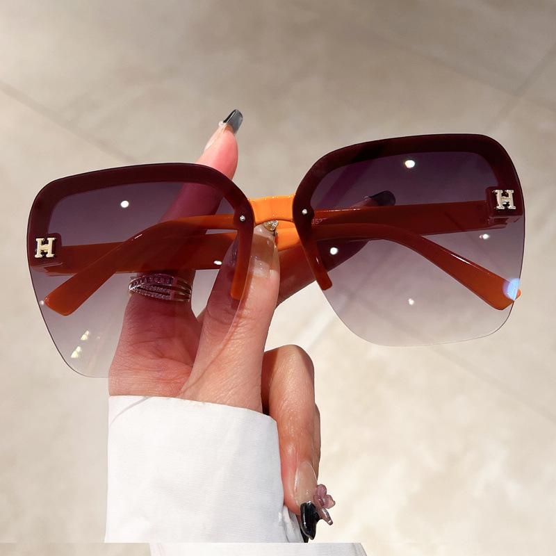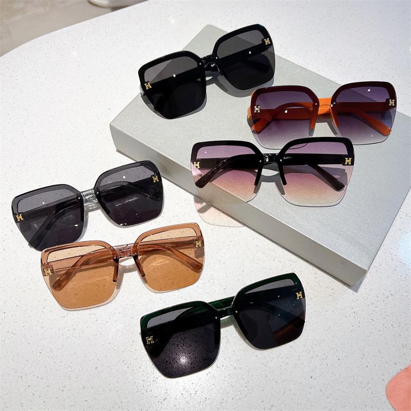 Nuevas Gafas de Sol de Moda con Letra H, Montura Cuadrada Grande Antirreflejo, Gafas de Sol Trendy para Mujer para Fotografías Callejeras, Gafas de Sol Deportivas para Exterior