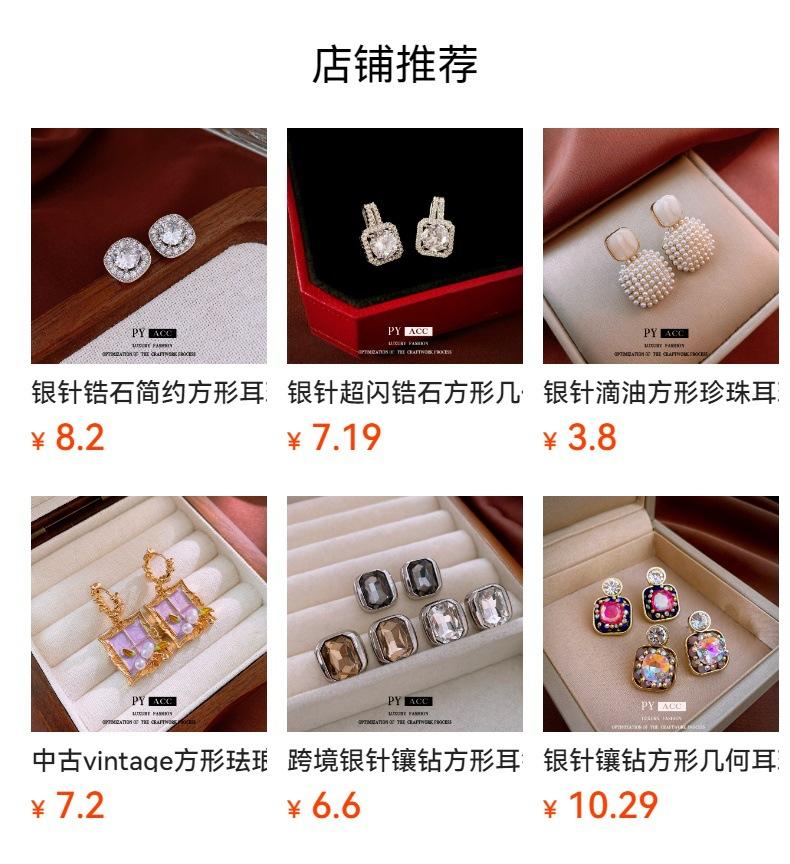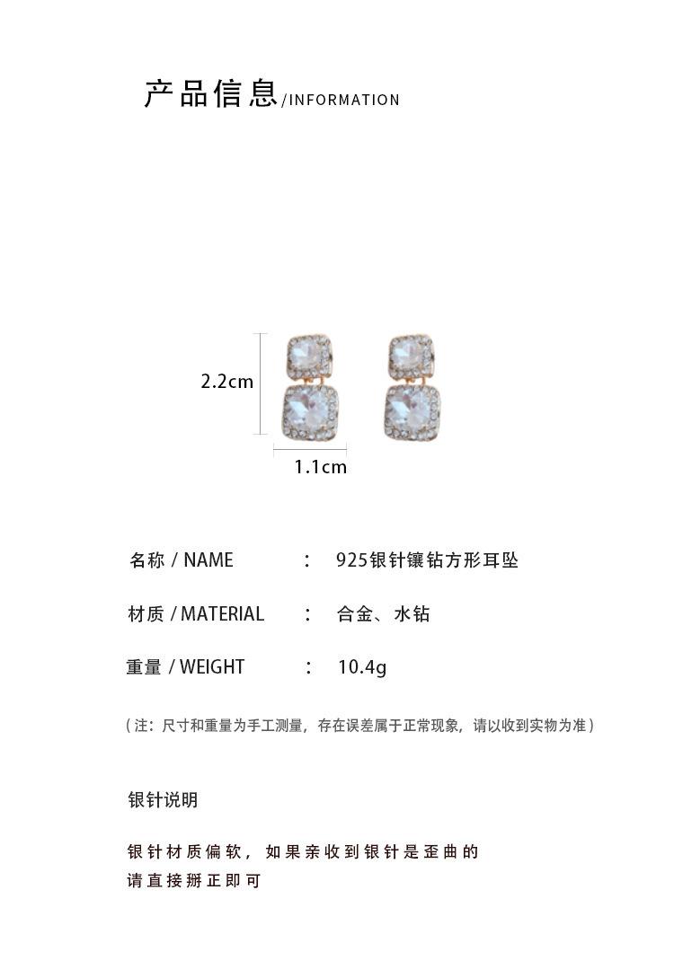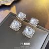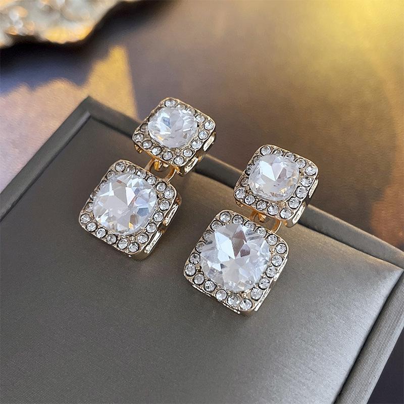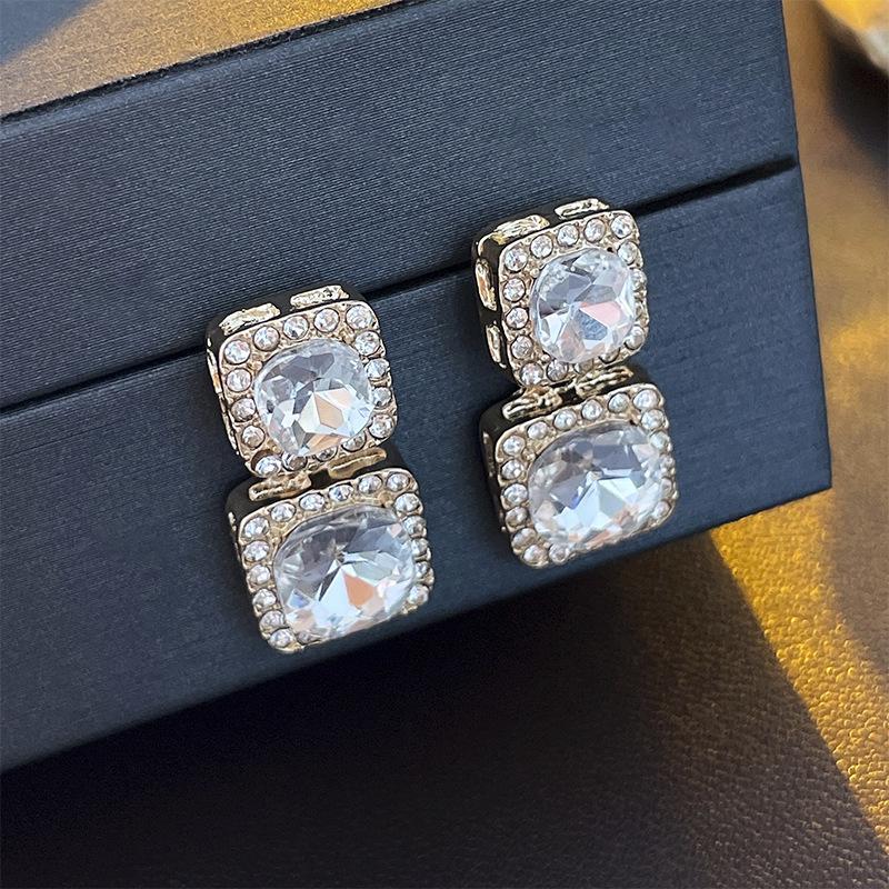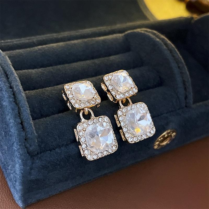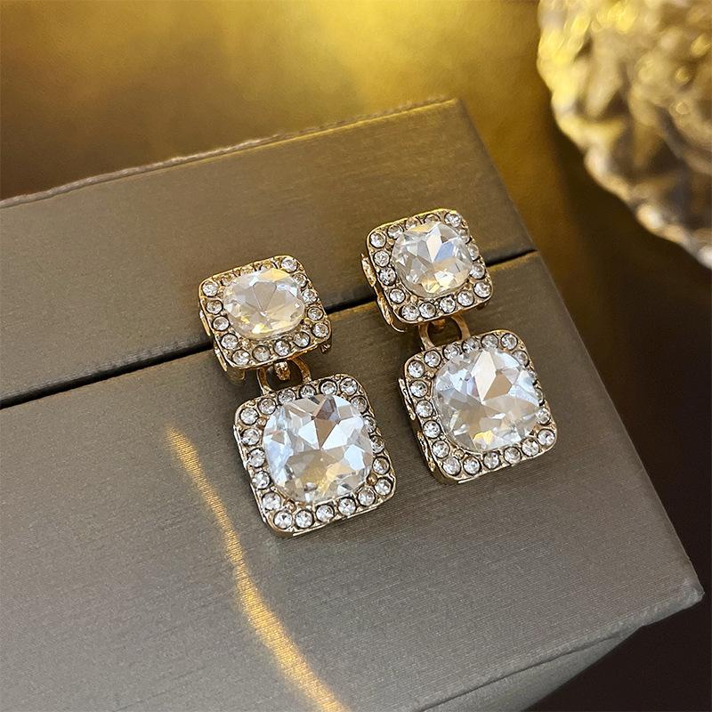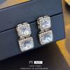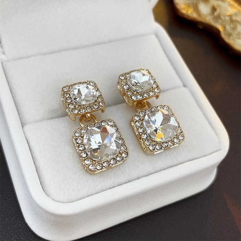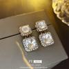 Pendientes cuadrados geométricos de diamantes con aguja de plata, estilo europeo y americano, de lujo, ligeros, de moda, con un toque avanzado, elegantes y nichos, al por mayor para mujer.