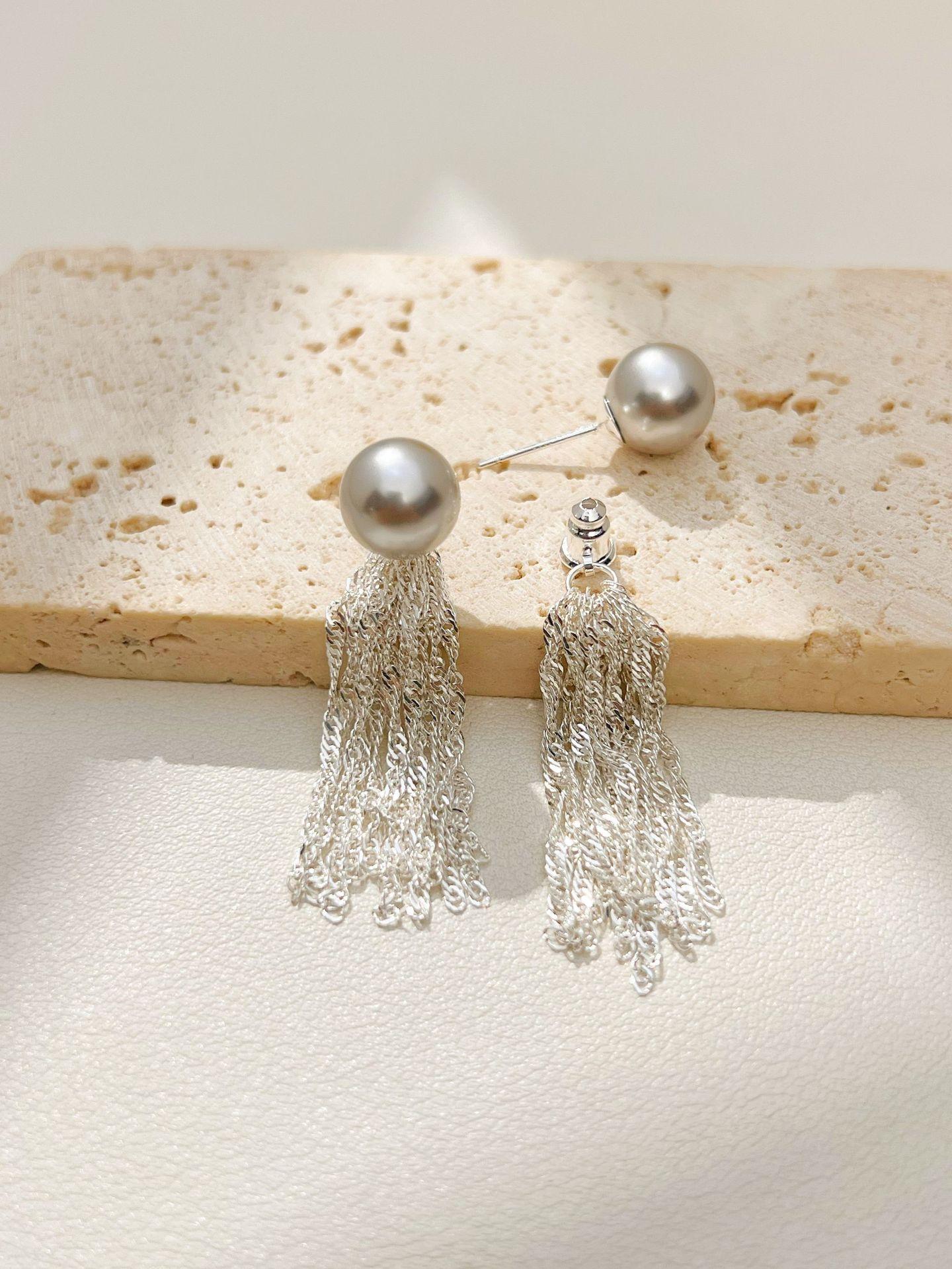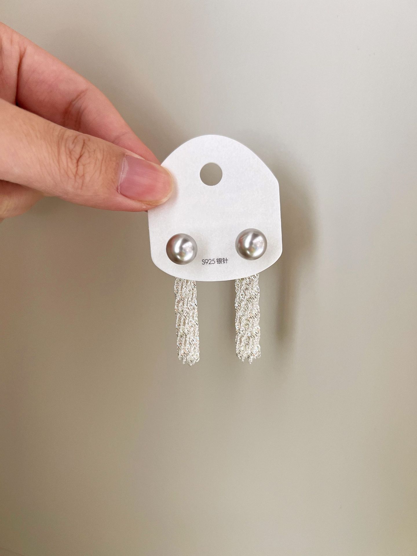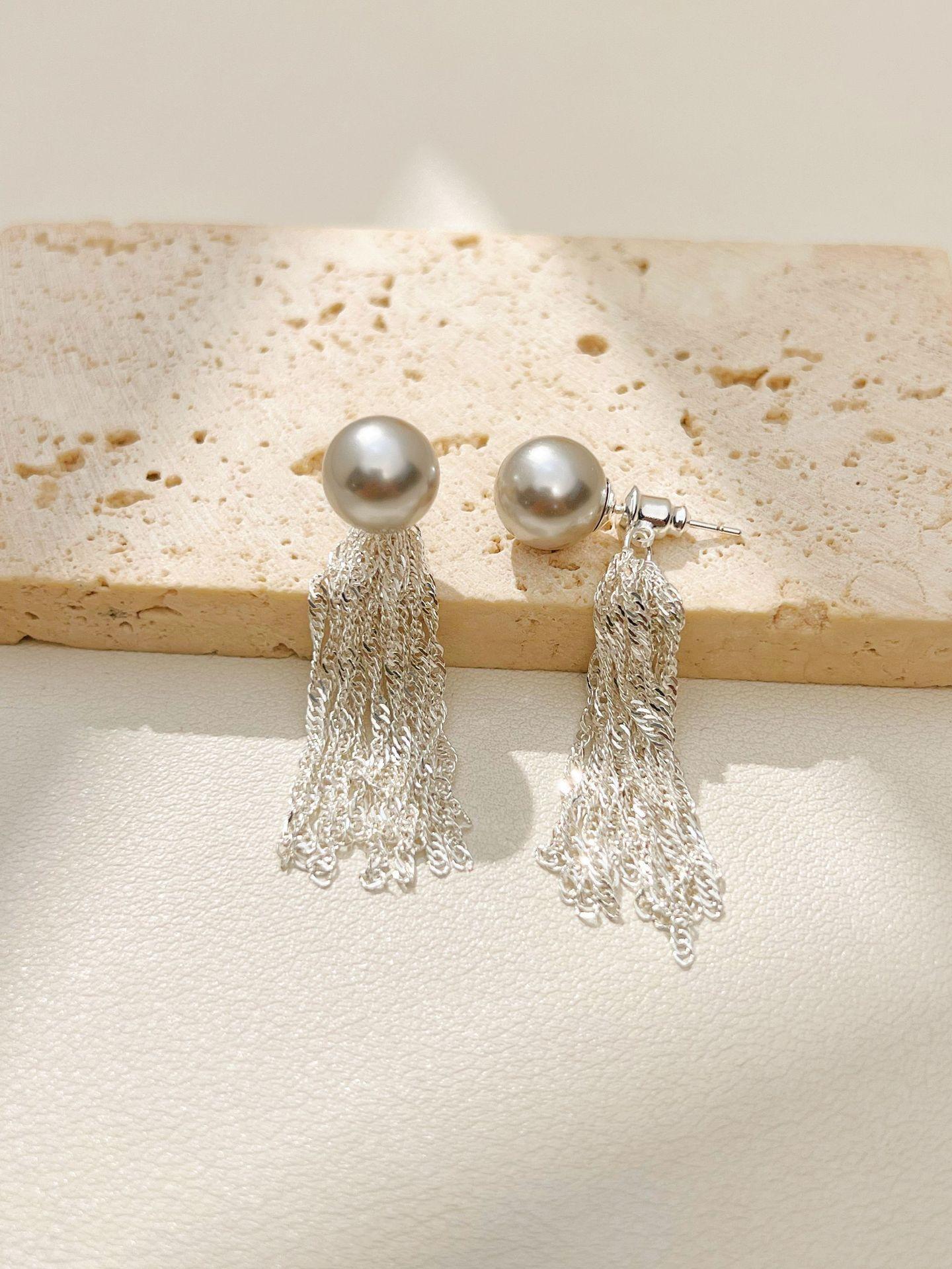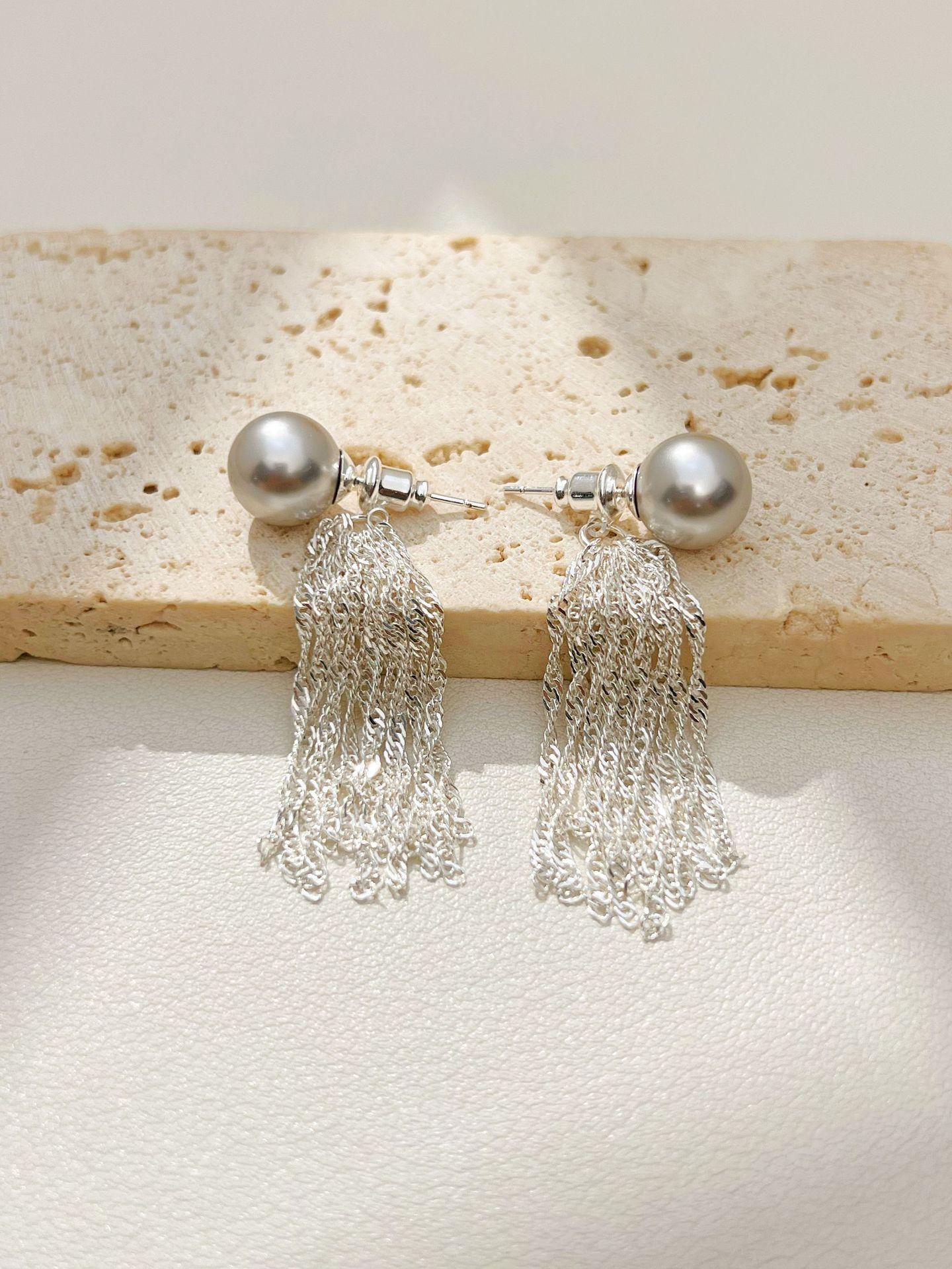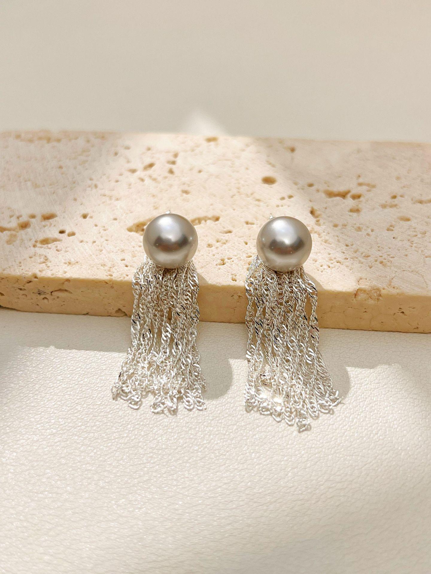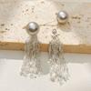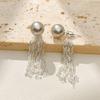 Pendientes de borla de cadena de plata, pendientes de diseño de nicho que combinan con todo, accesorios retro de alta gama para mujer.