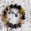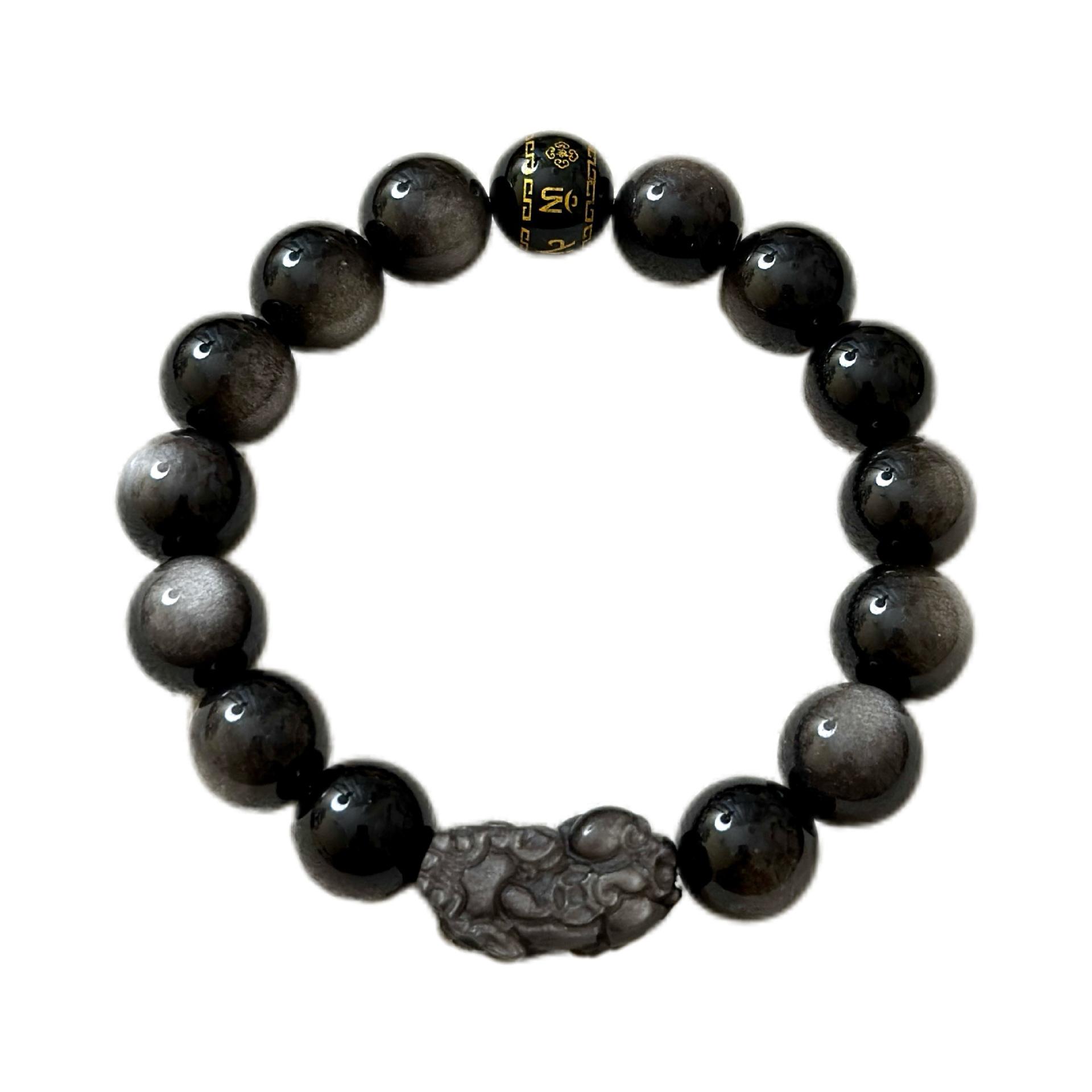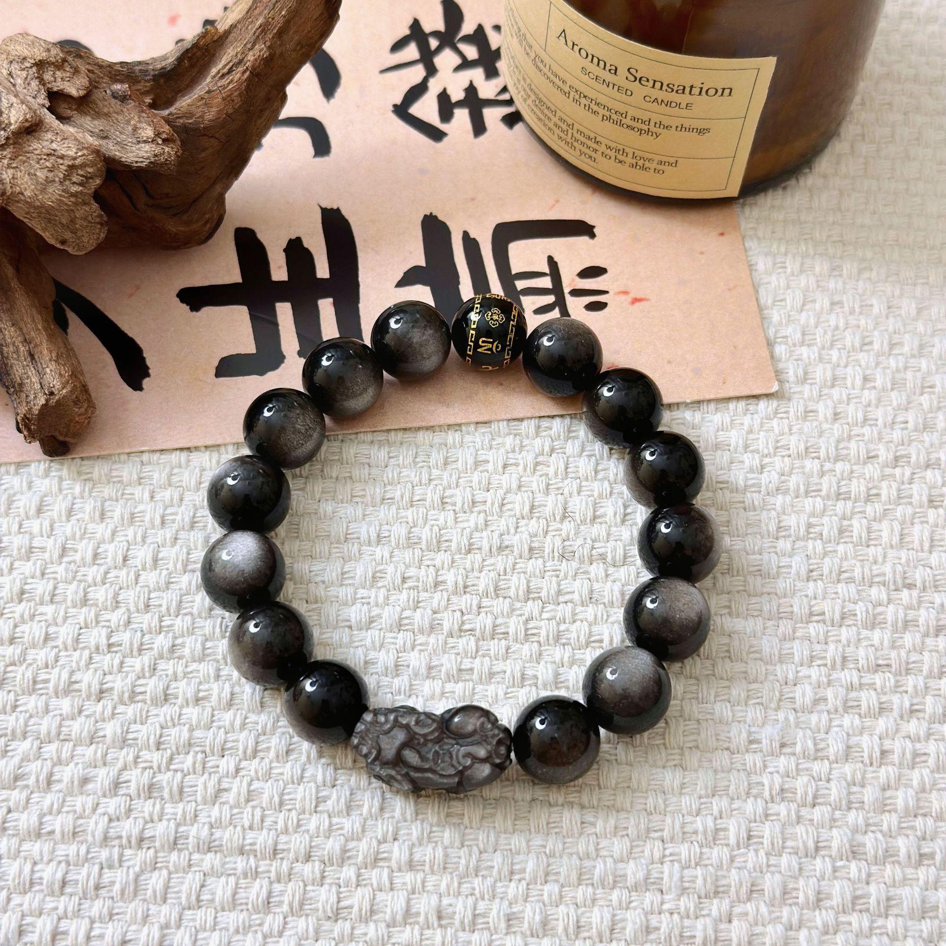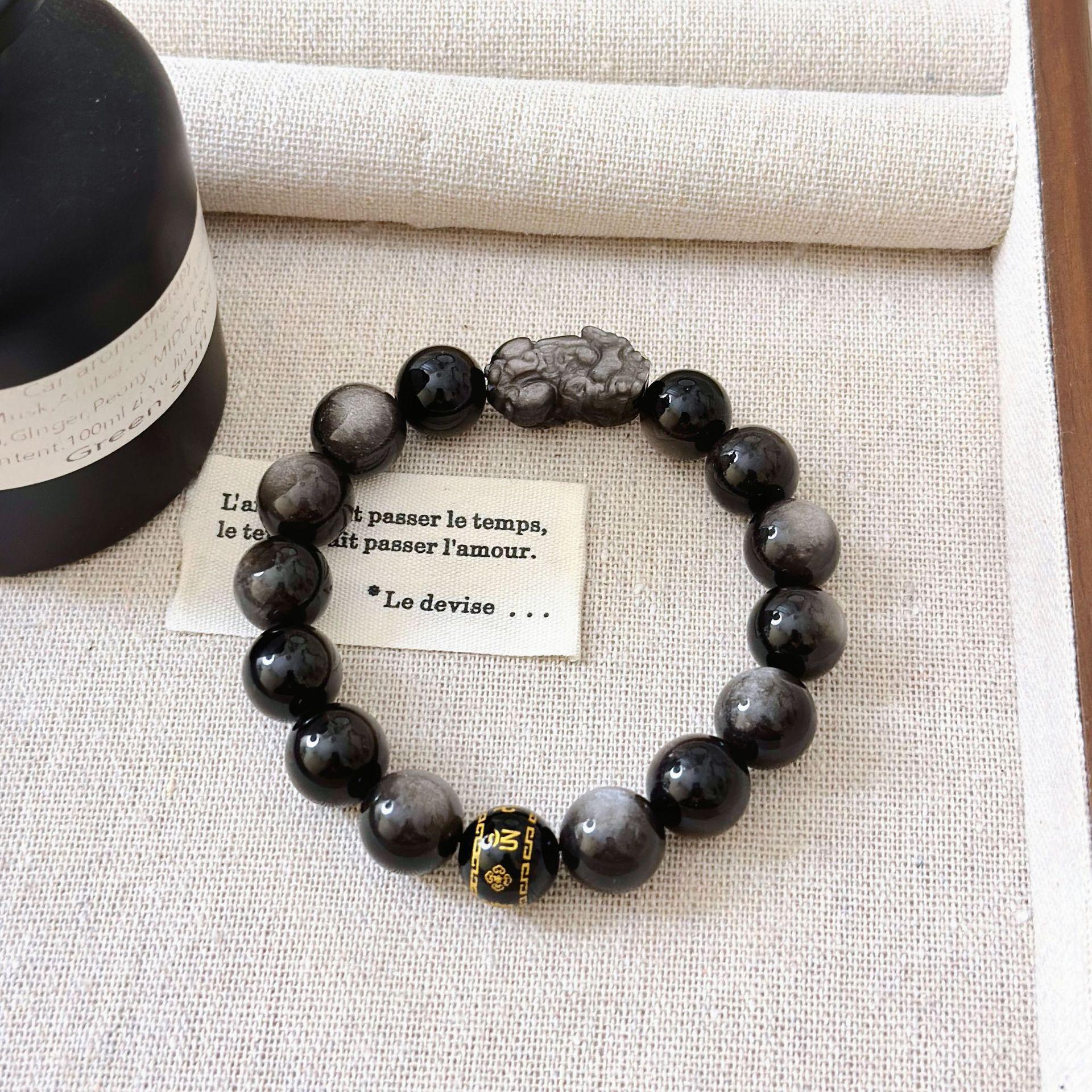 Pulsera de Obsidiana Ojos Naturales Pulsera de Obsidiana Plateada Pulsera de la Suerte para Mujer Pulsera para Hombre Pulsera para Pareja Venta al por Mayor