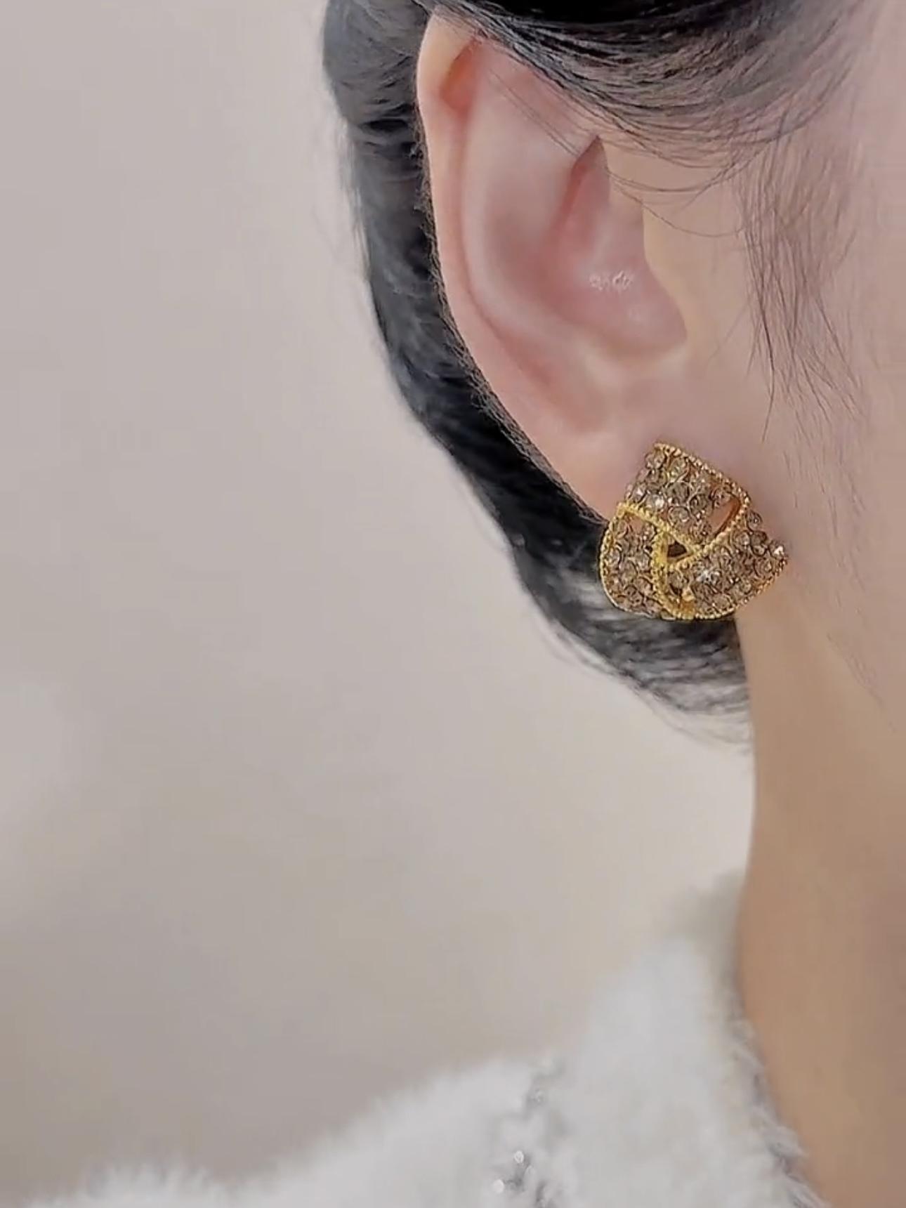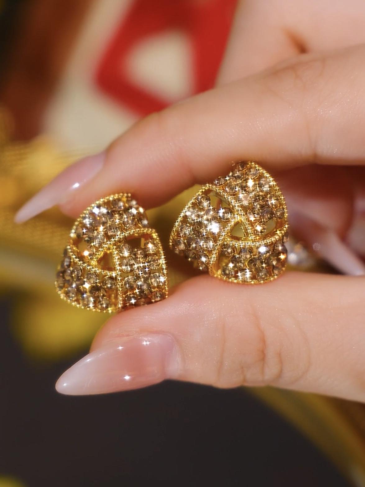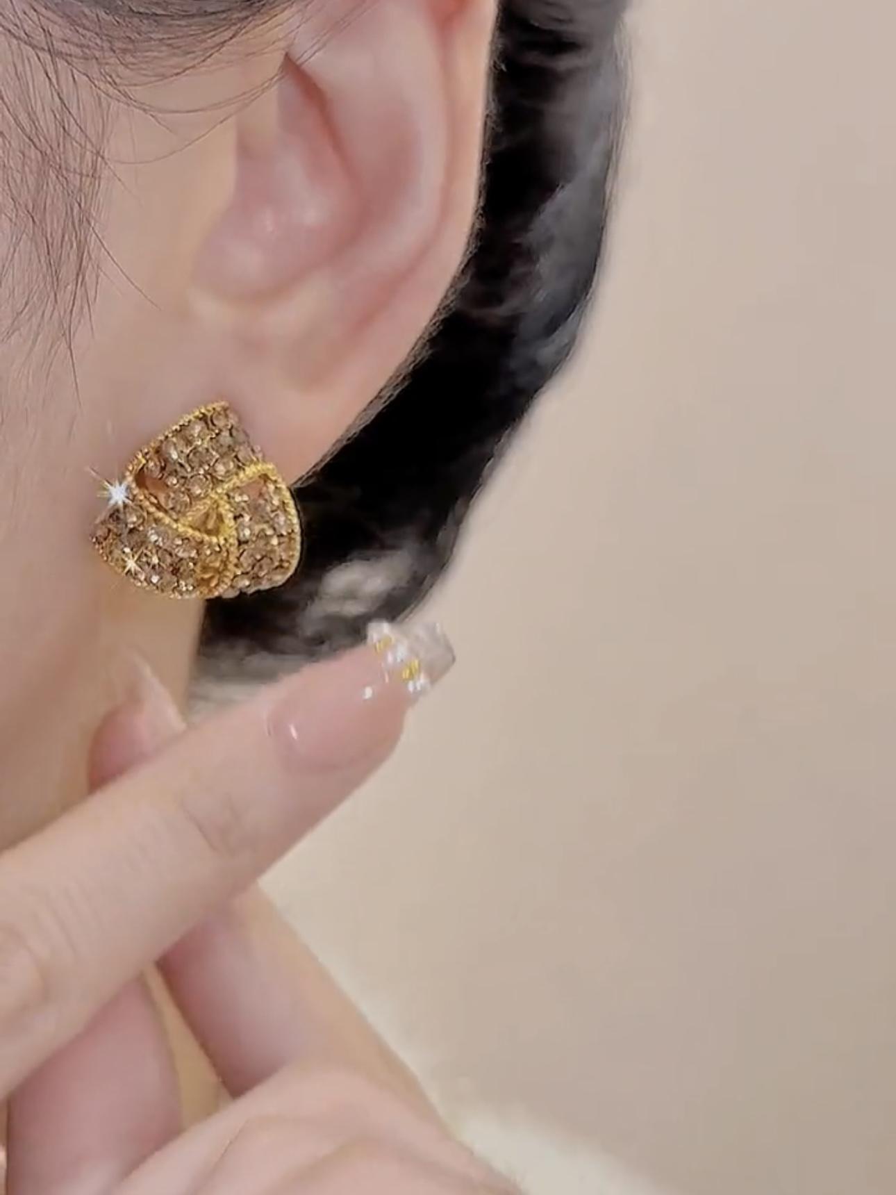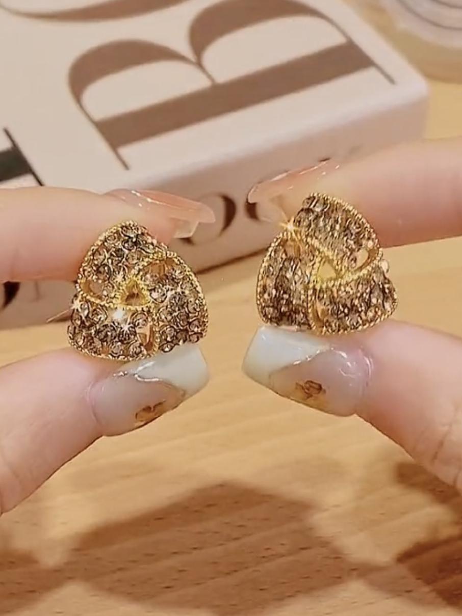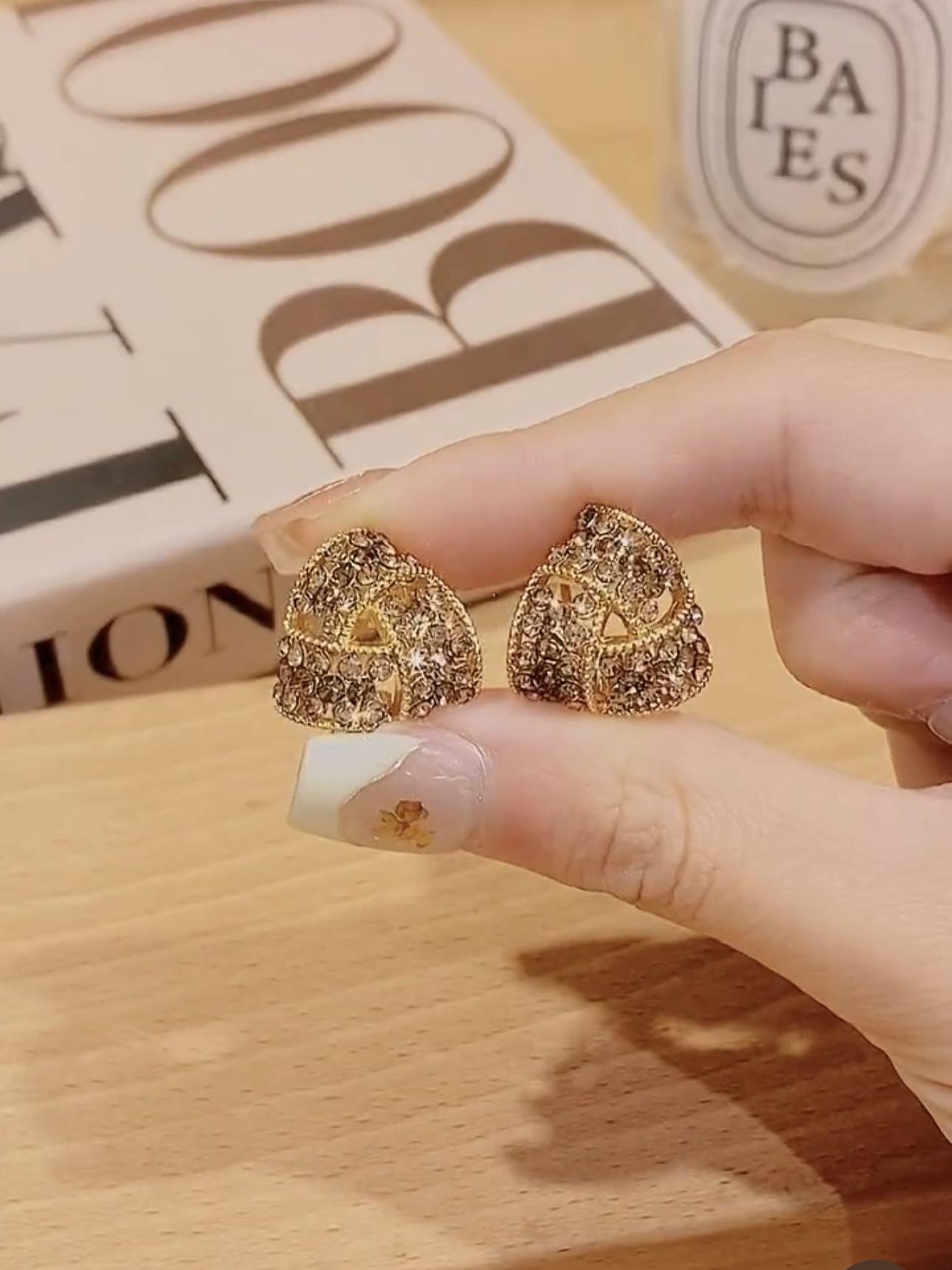 Gold brown diamond triangular stud earrings a1220, Purple diamond triangle earrings a732, Green full diamond triangle a773