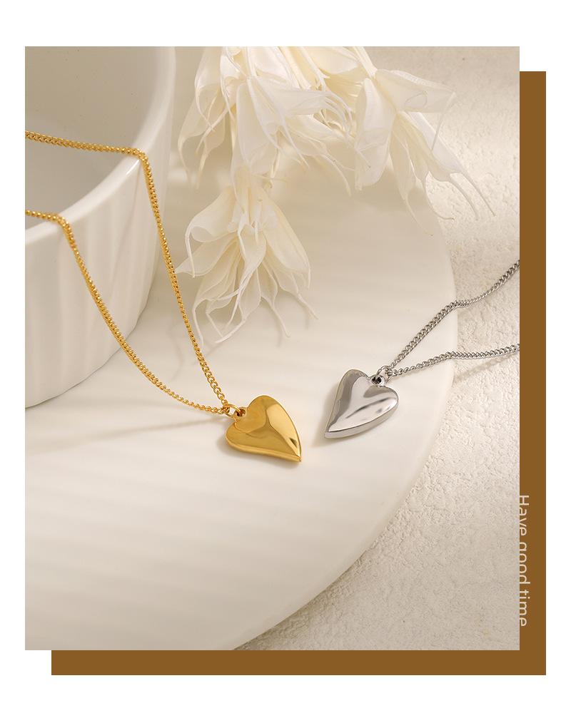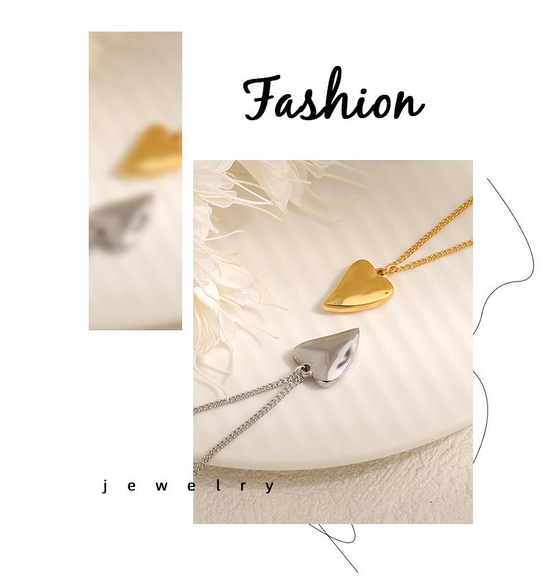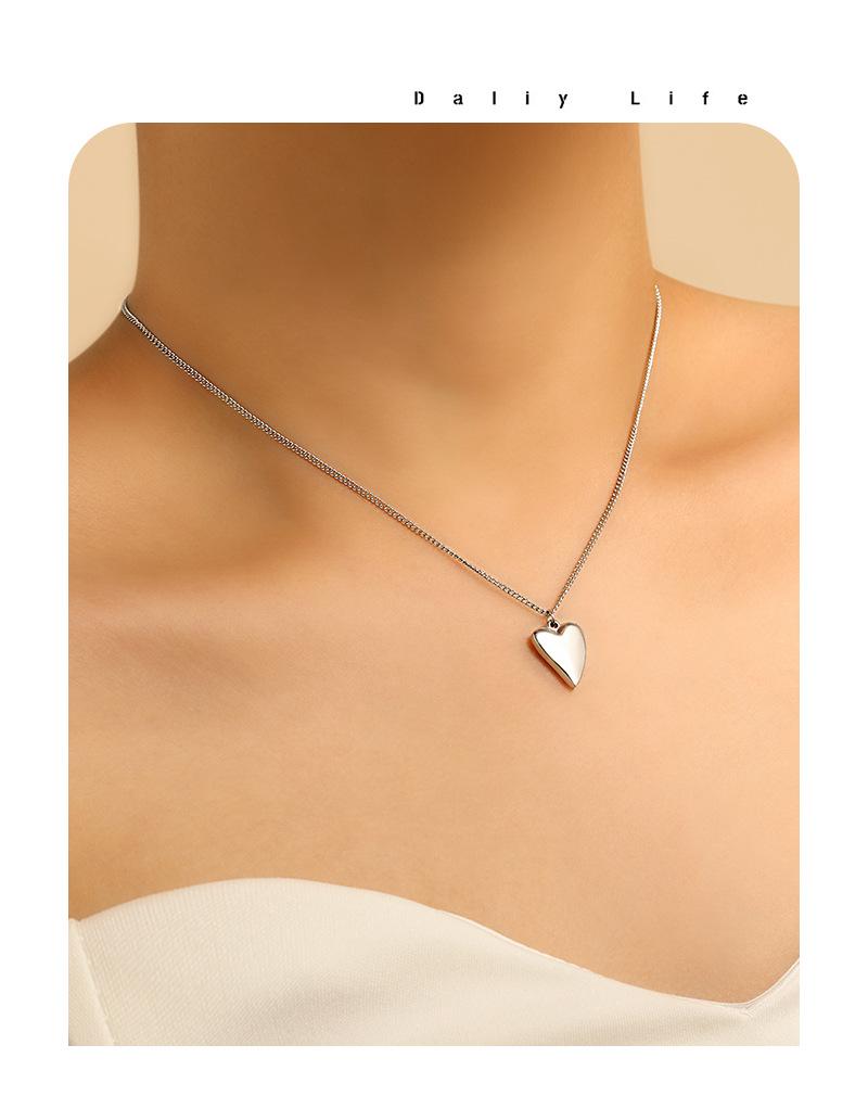 Collar de amor oblicuo con estilo europeo y americano, combina con todo, personalidad de moda, estilo frío, cadena de clavícula de acero y titanio con forma de corazón simple.