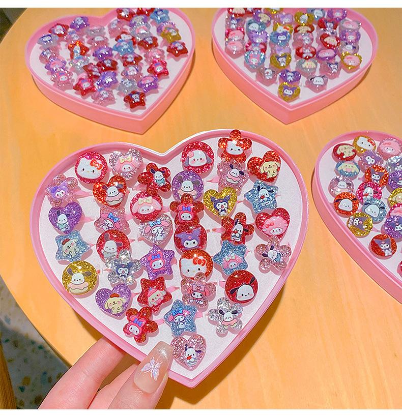 Anillo para niña con piedras preciosas y dibujos animados, ideal como regalo de cumpleaños.