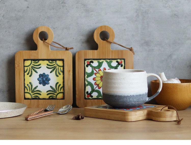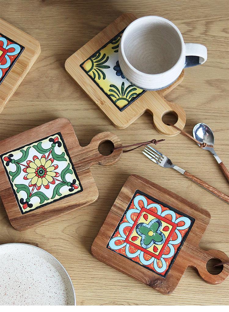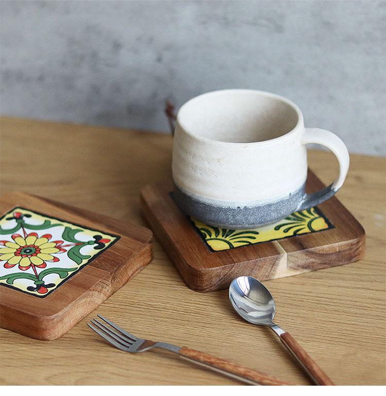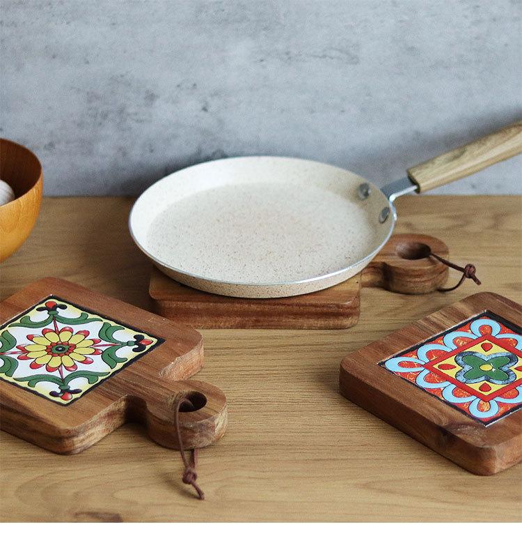 Ins Mantel Individual Aislamiento Térmico Mesa de Comedor Ceremonia del Té Bandeja Aislamiento Térmico Portavasos Posavasos Baldosa de Madera de Acacia Japonesa Mantel para Tazón Mantel para Olla