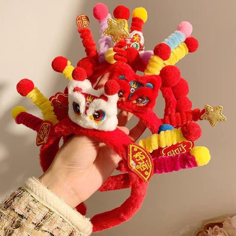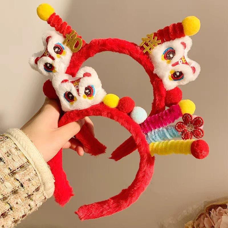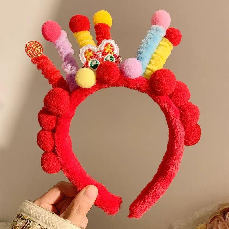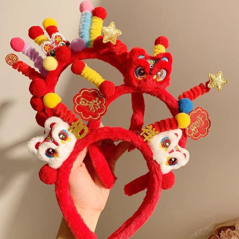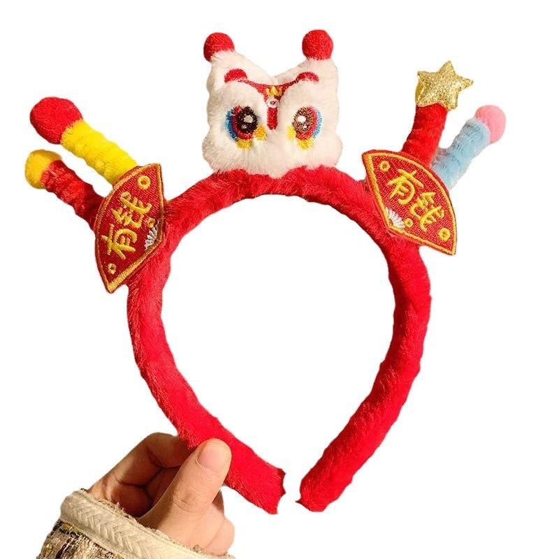 Aro para el cabello de felpa de moda nacional de Año Nuevo León Despertar Twister Accesorios para el cabello para niños Tocado del Día de Año Nuevo Diadema linda para usar con Hanfu