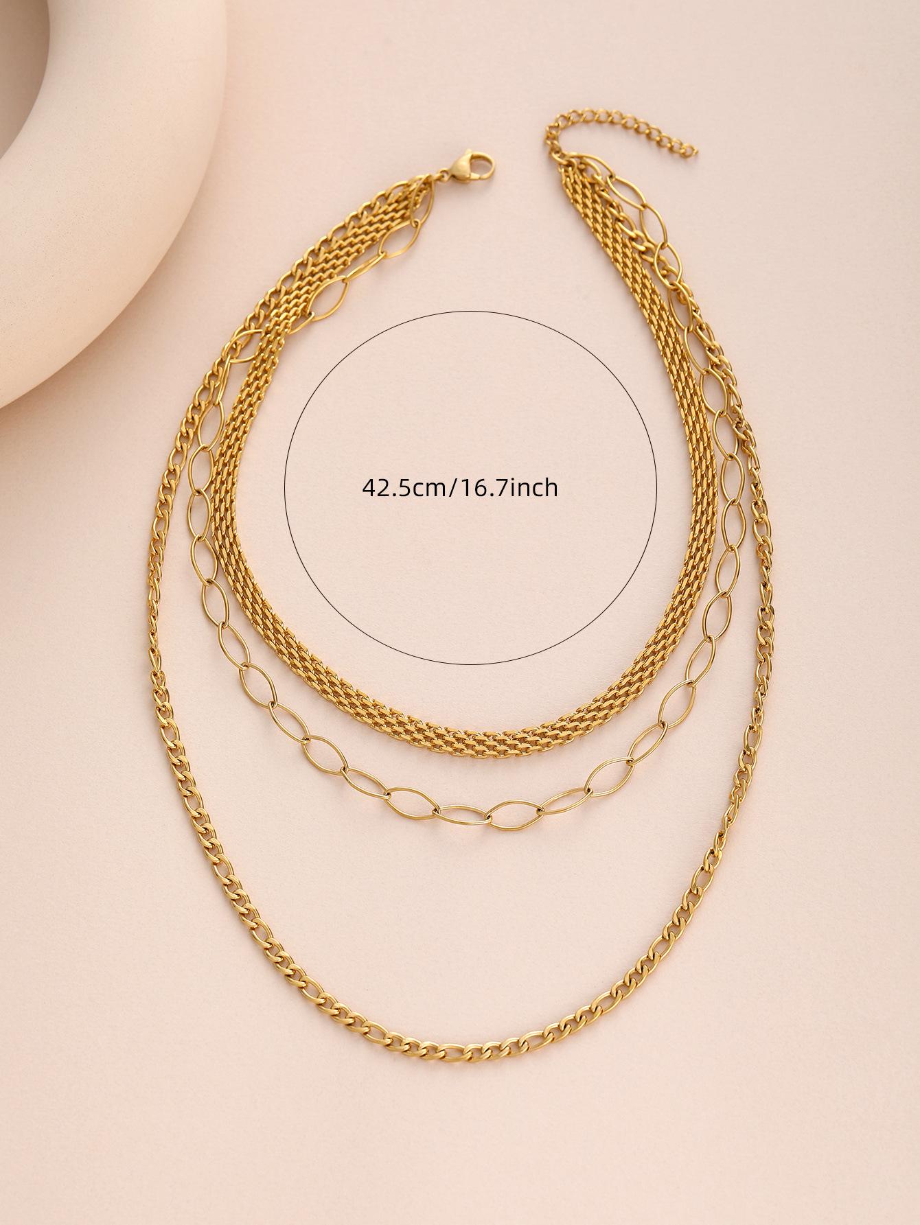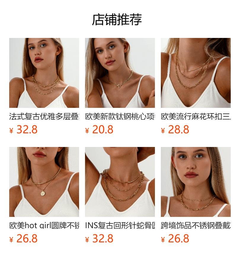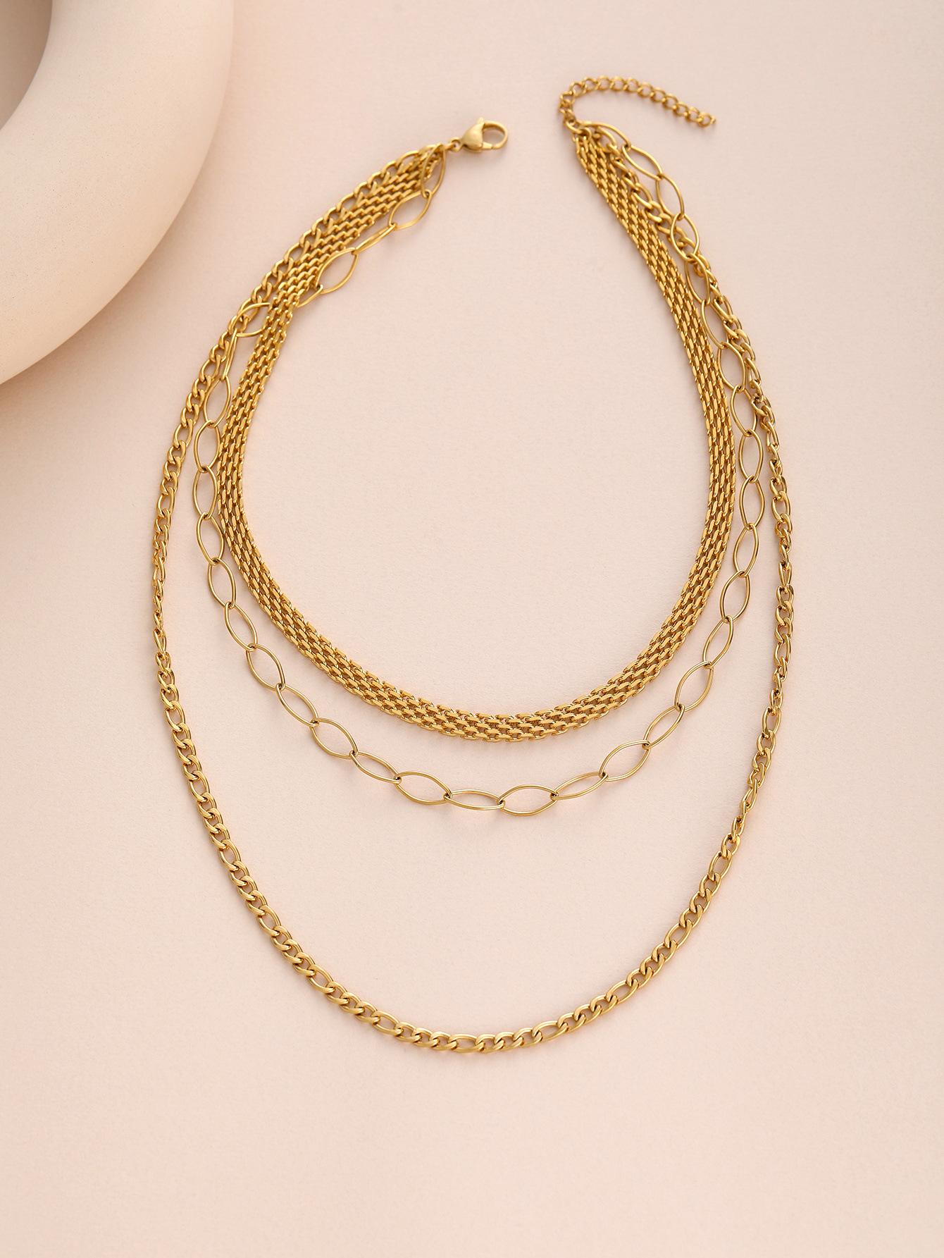 Moda Europea y Americana Transfronteriza Acero Inoxidable Multicapa Cadena Plana Collar Chapado en Oro 18K No se Desvanece Versátil Collar Diario