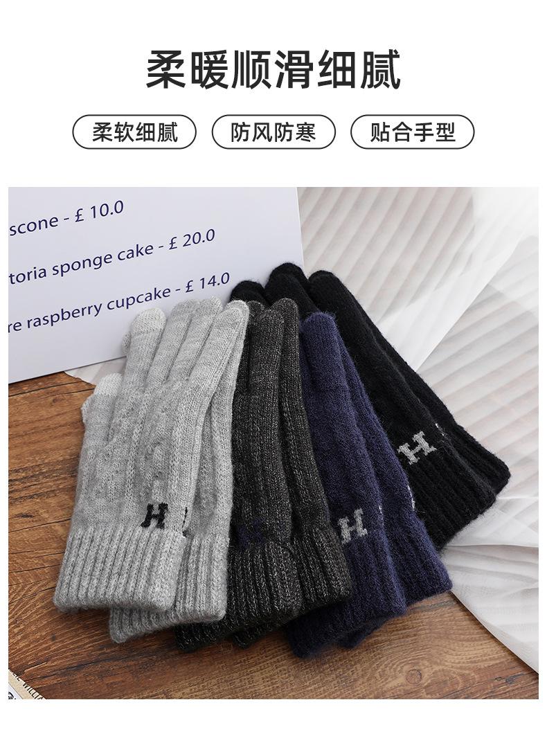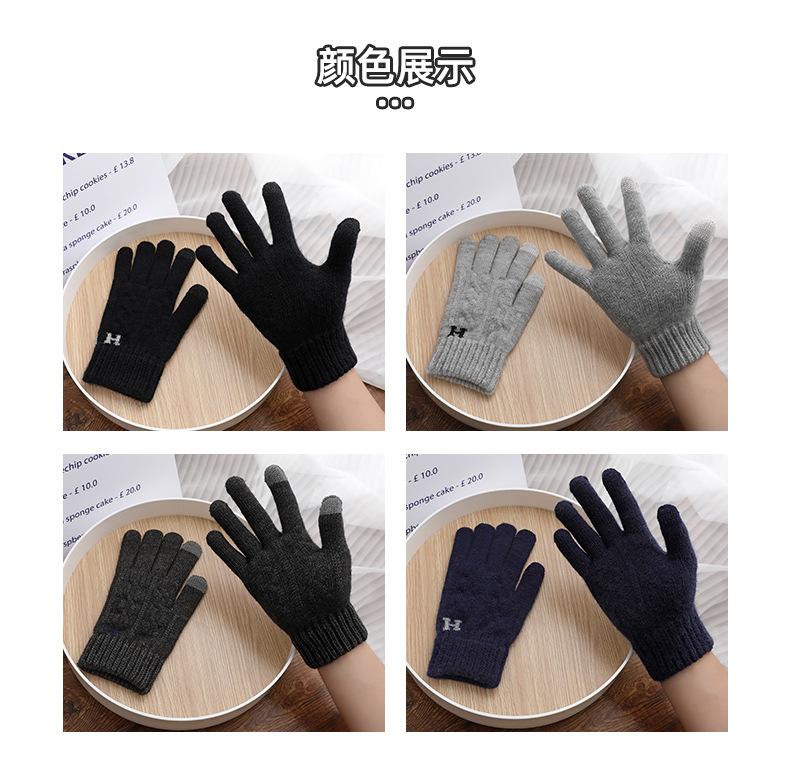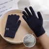 Guantes de montar de cinco dedos de algodón grueso con forro polar de doble capa, resistentes al frío y cálidos para hombre, con pantalla táctil, disponibles en invierno.