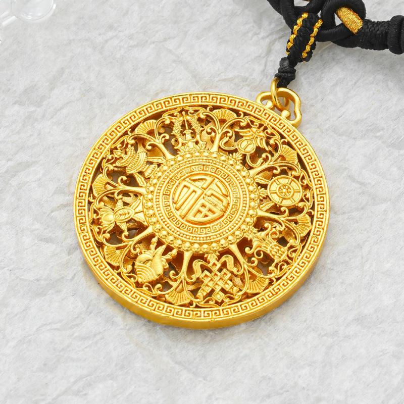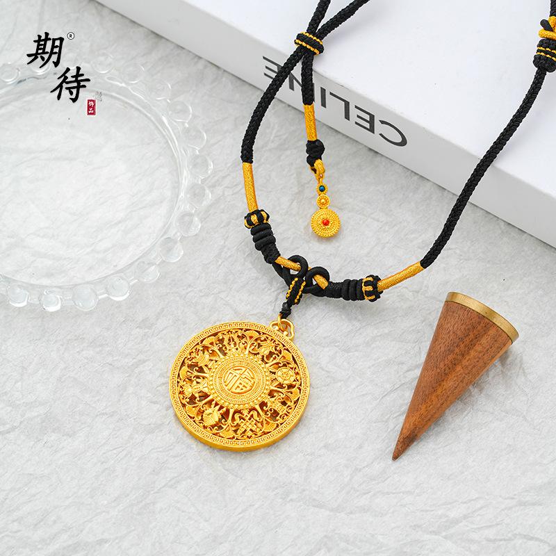 Collar con colgante de brújula de ocho tesoros auspiciosos de Vietnam Shajin Barui que no se desvanece durante mucho tiempo, joyería de bricolaje, disco hueco de la suerte