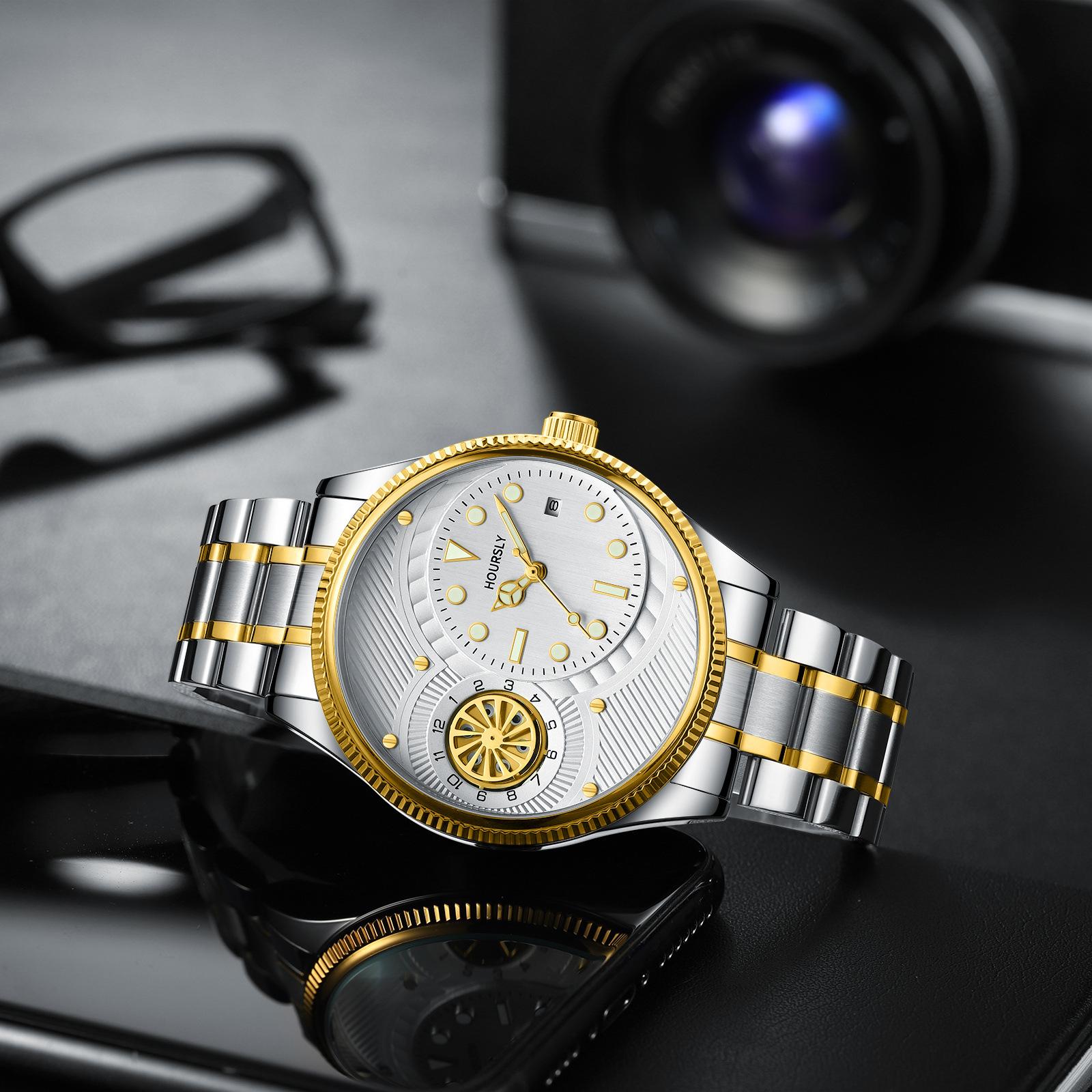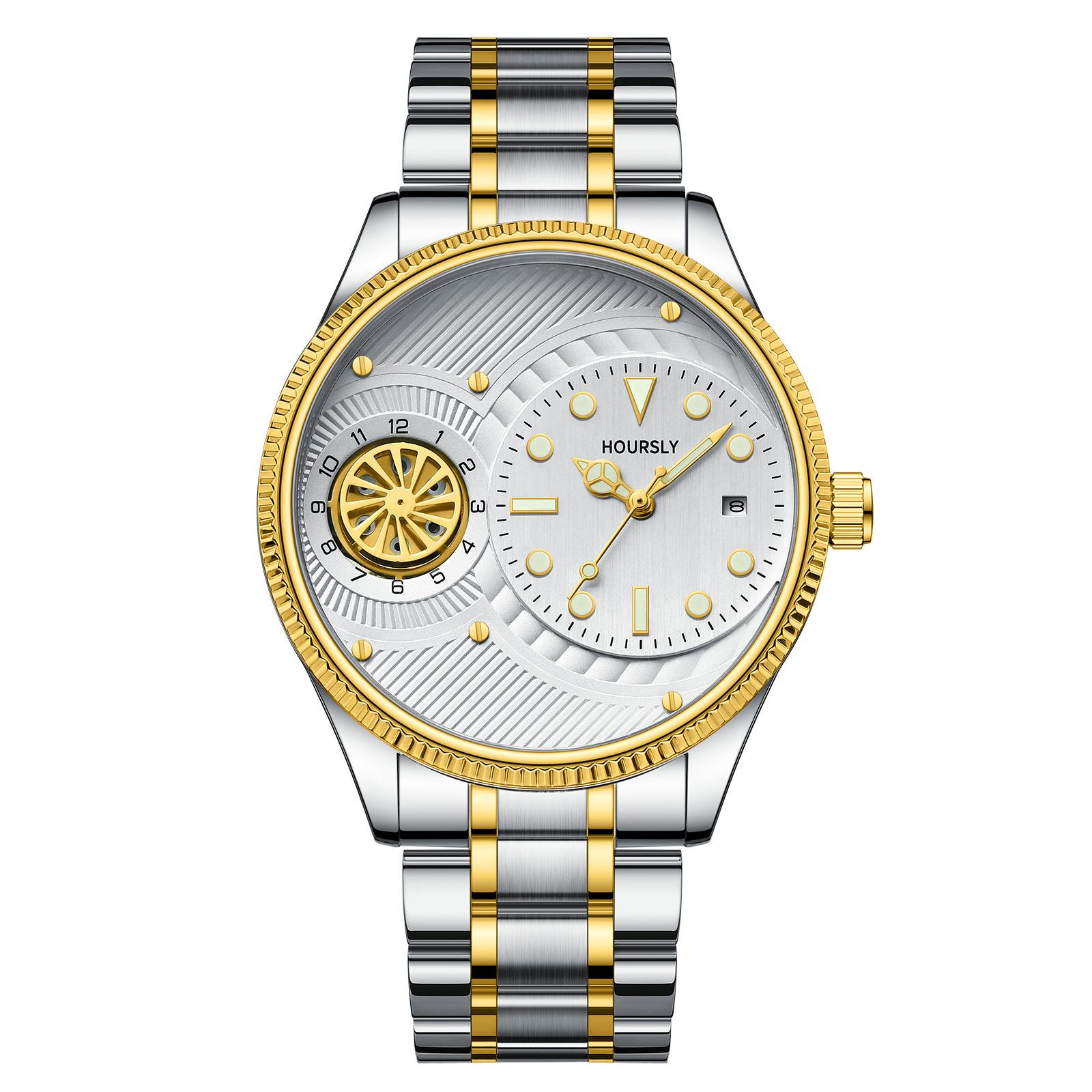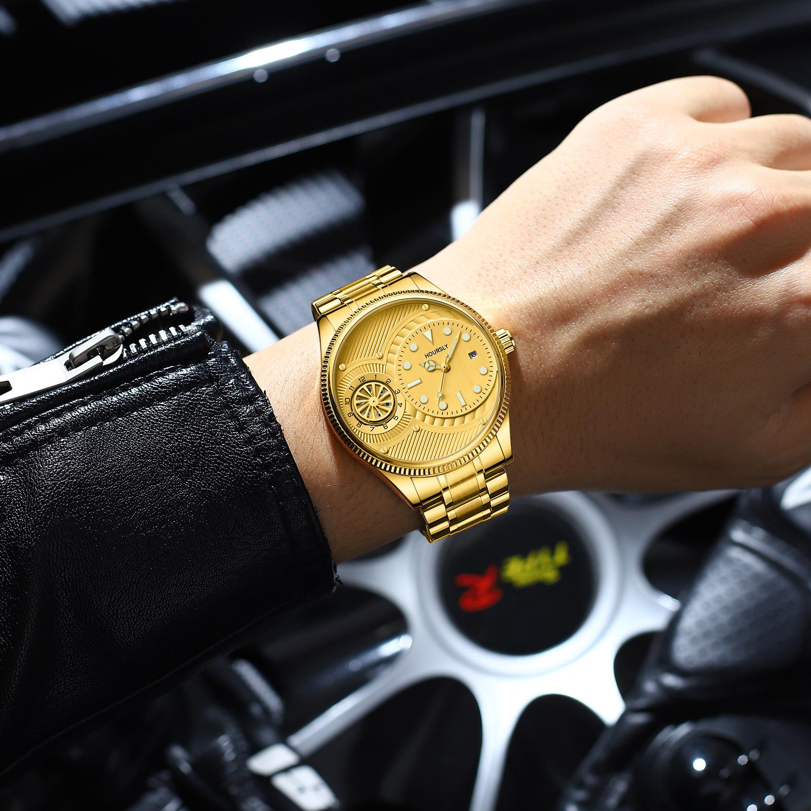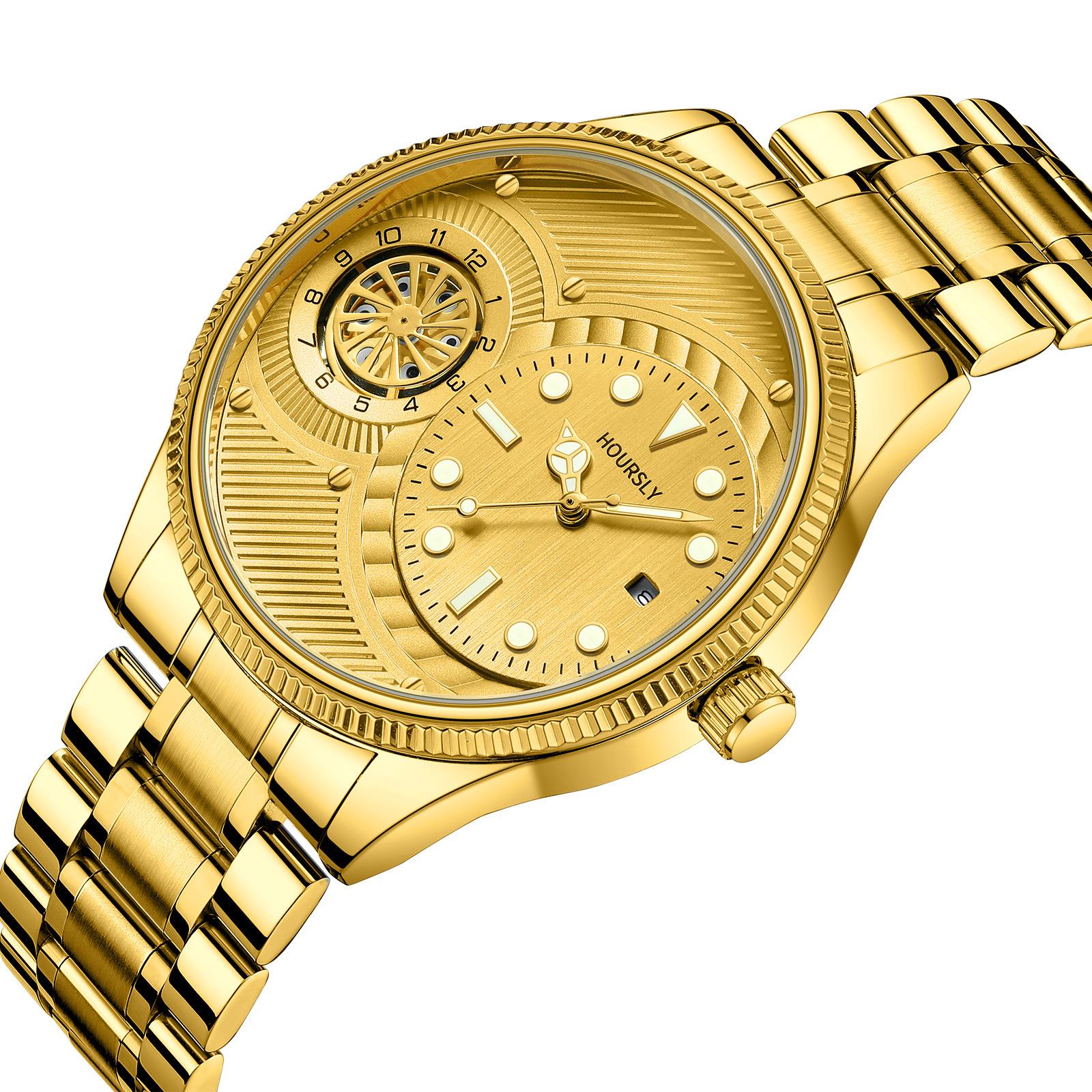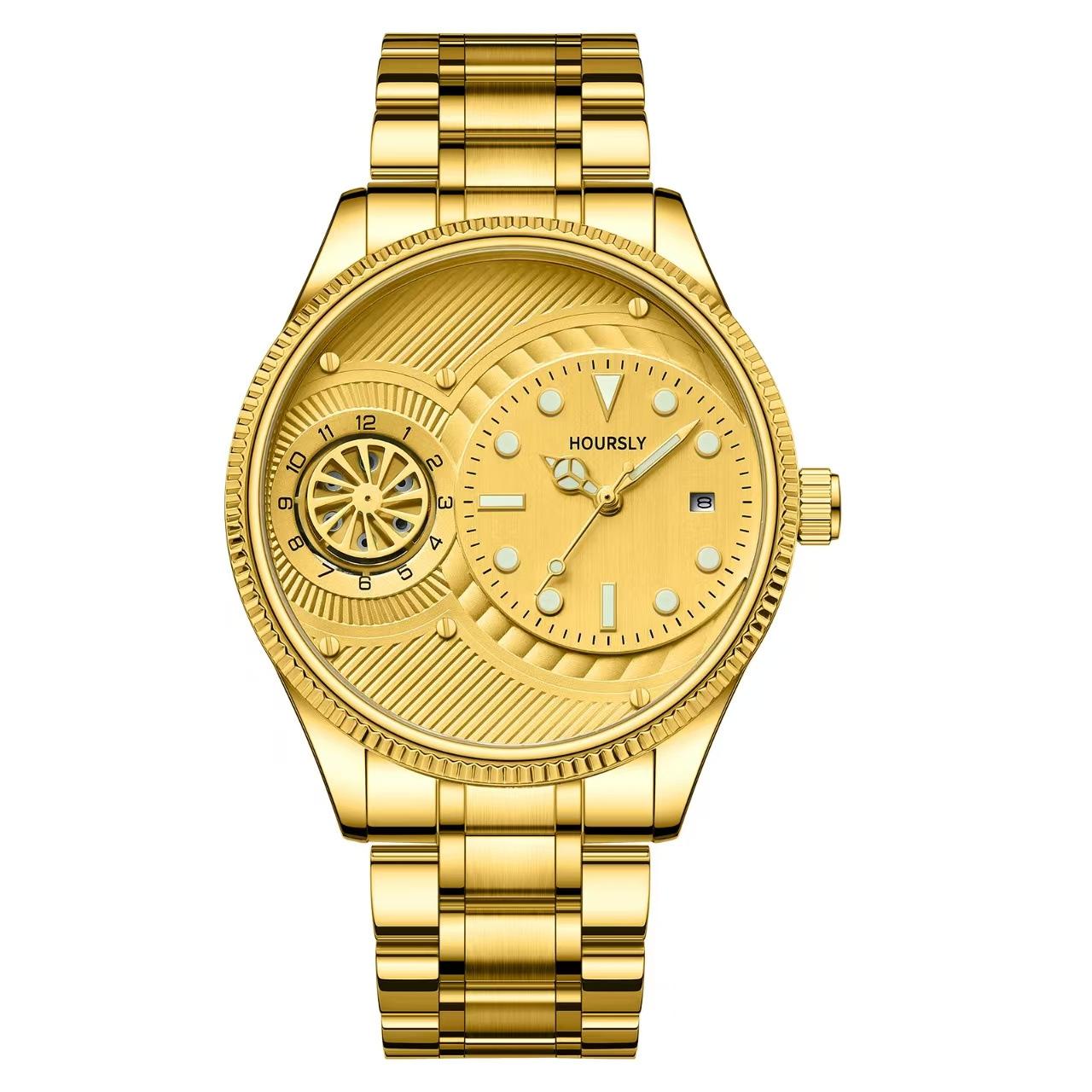 Reloj de pulsera para hombre con correa de acero dorado, con calendario transfronterizo, estilo empresarial, temperamento, comercio exterior, explosiones calientes.