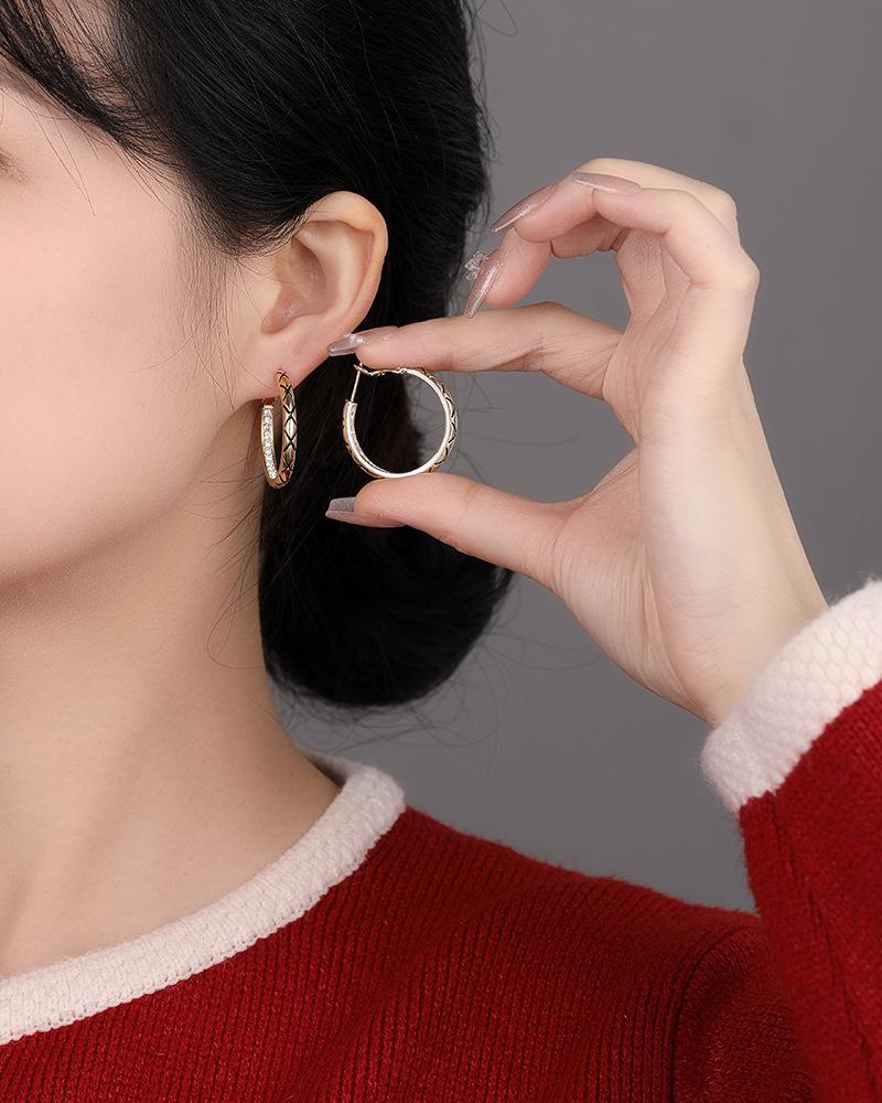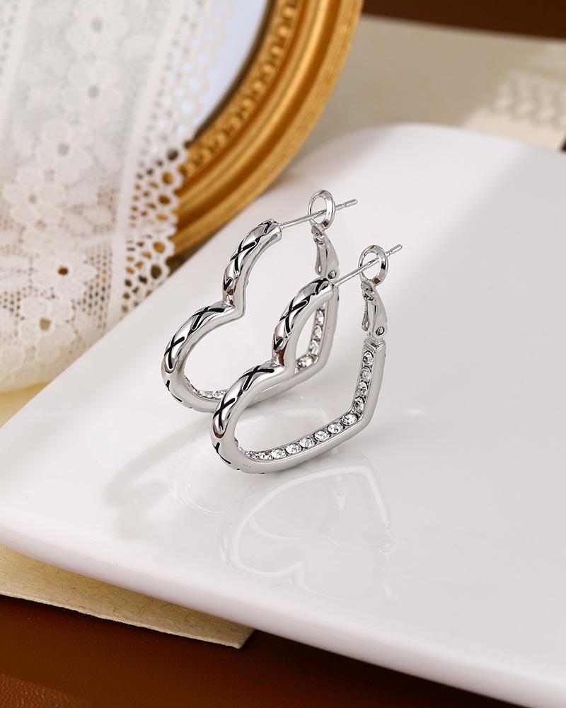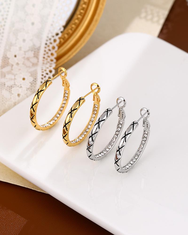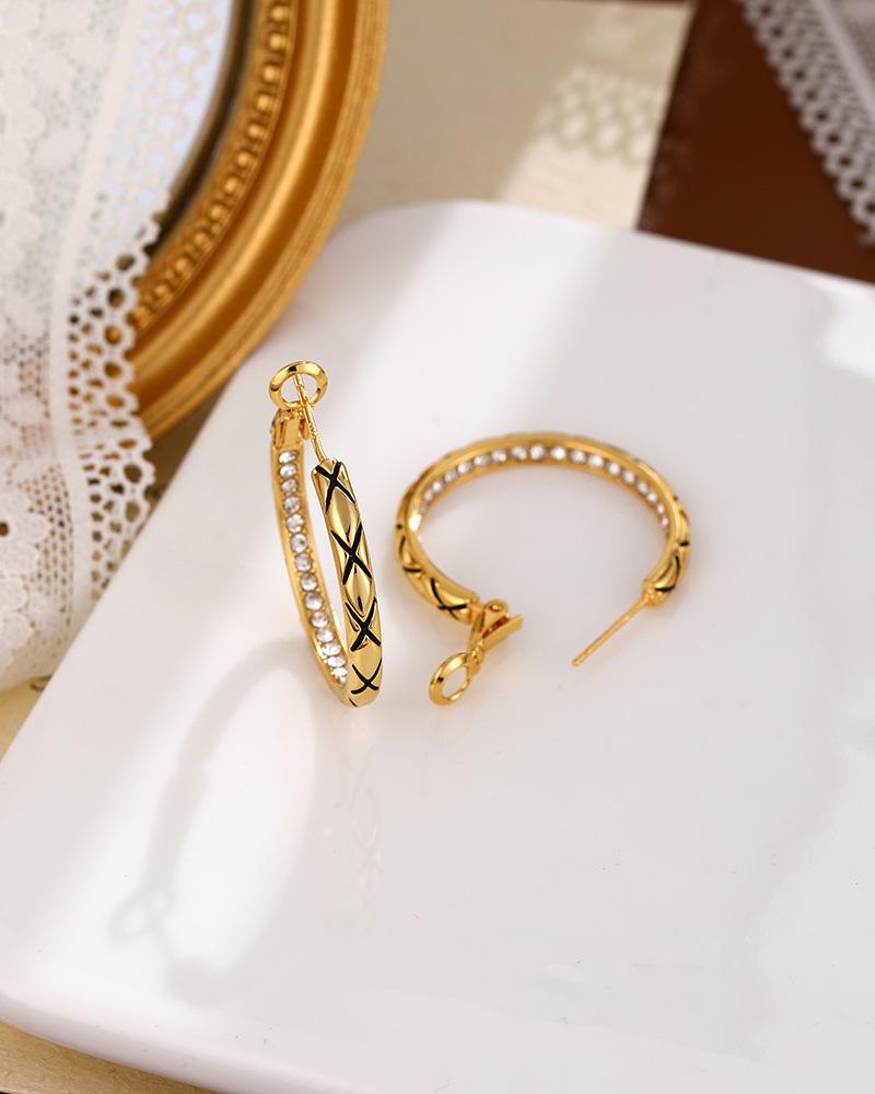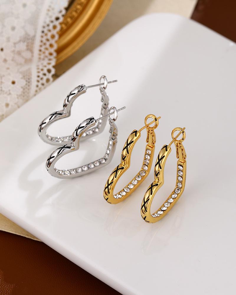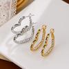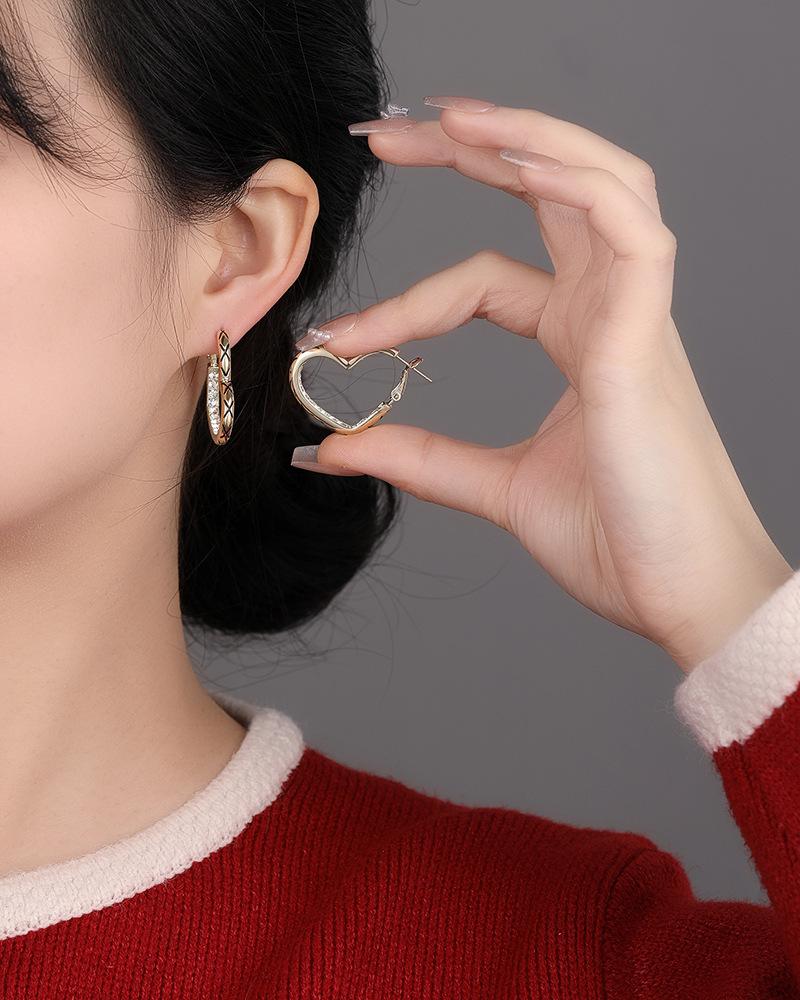 Pendientes redondos con diseño de diamante y forma de corazón para mujer, pequeños pendientes de lujo ligeros estilo Chanel, retro, elegantes, con forma de C grande.