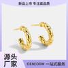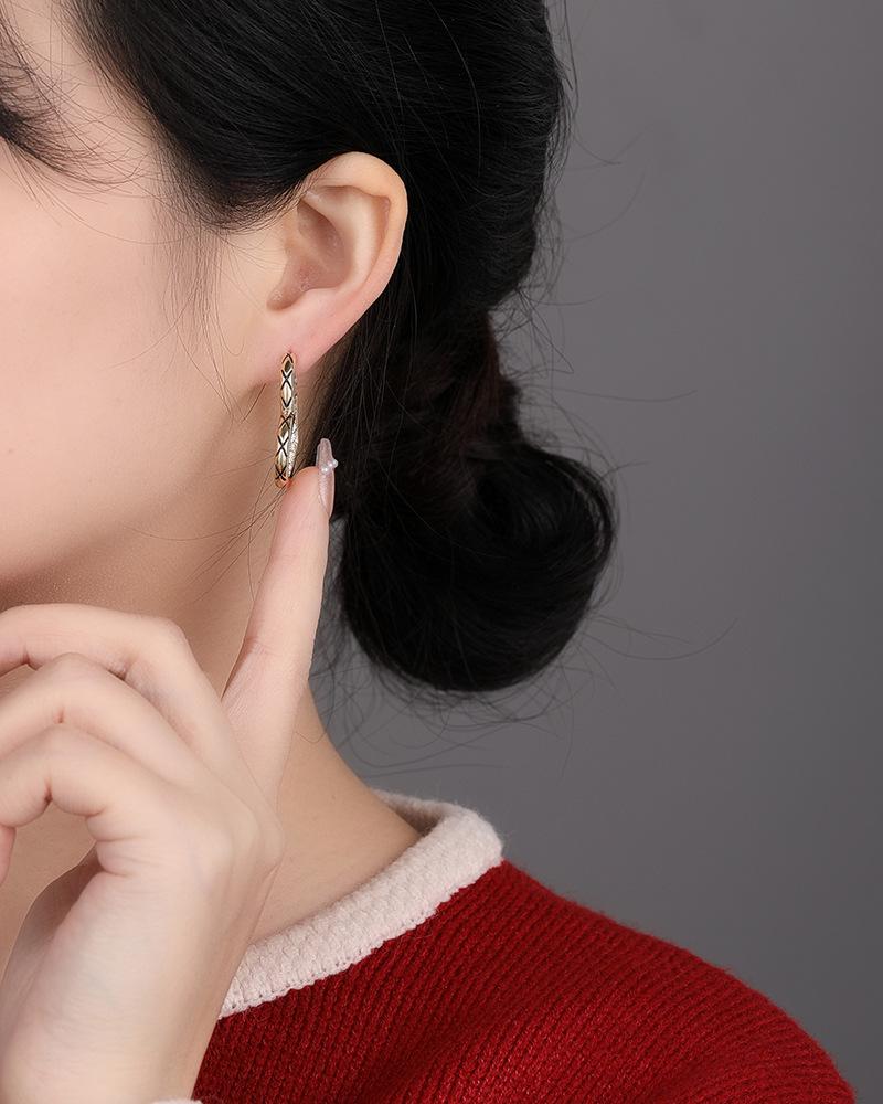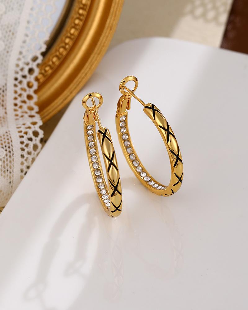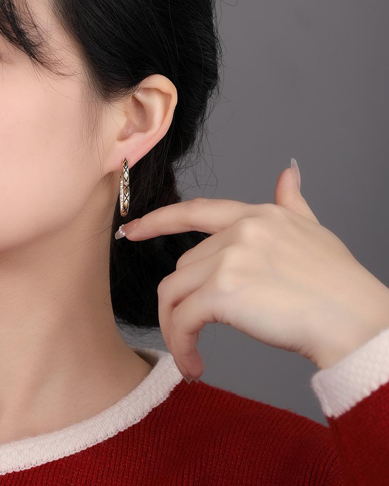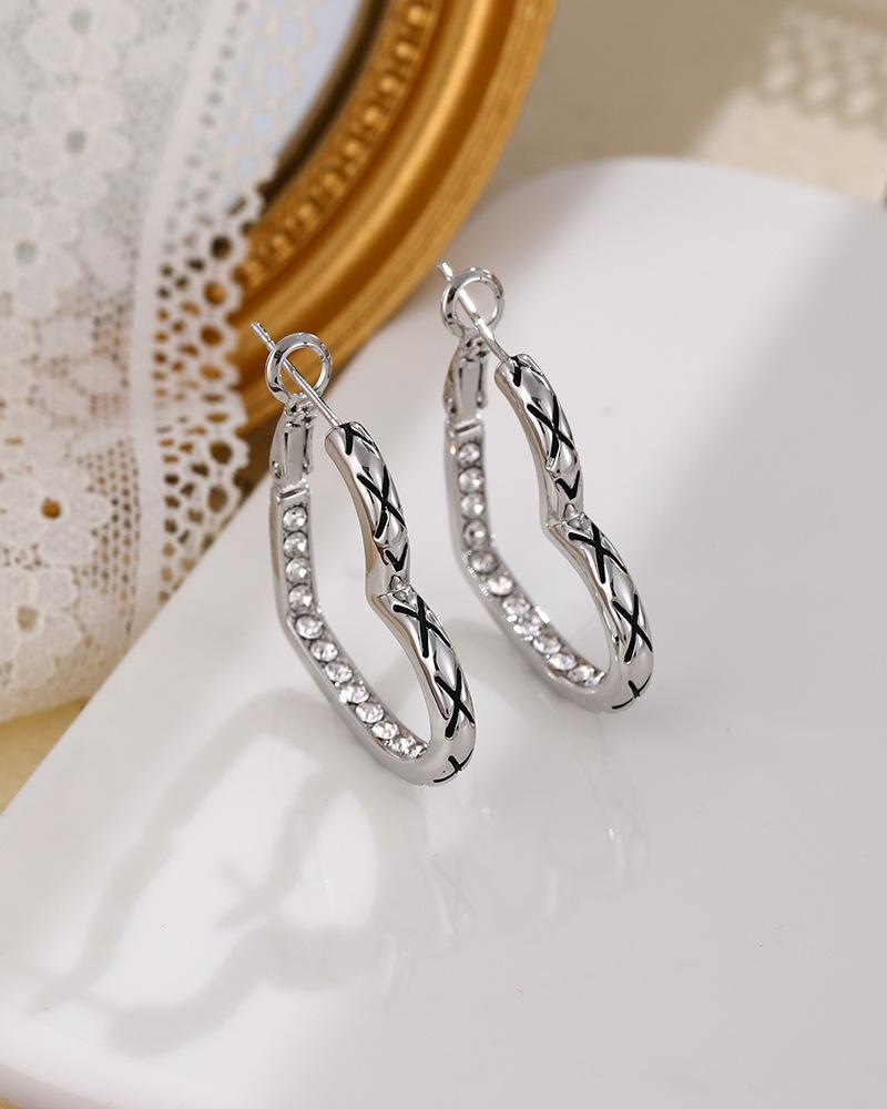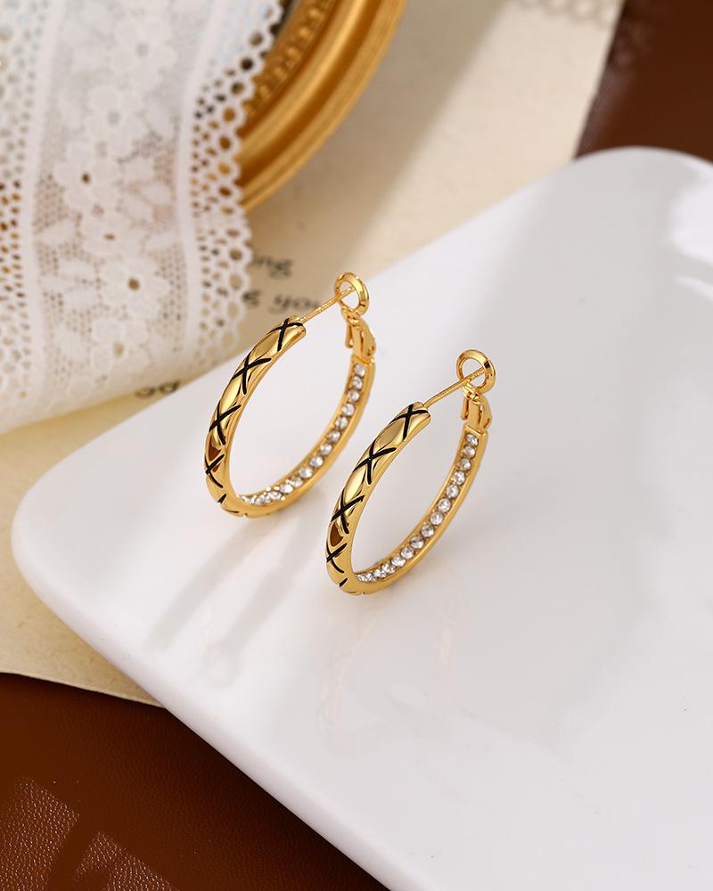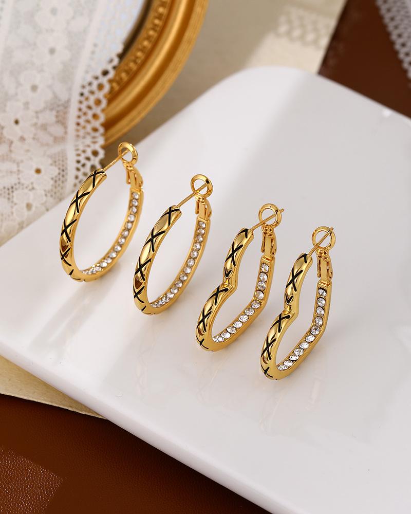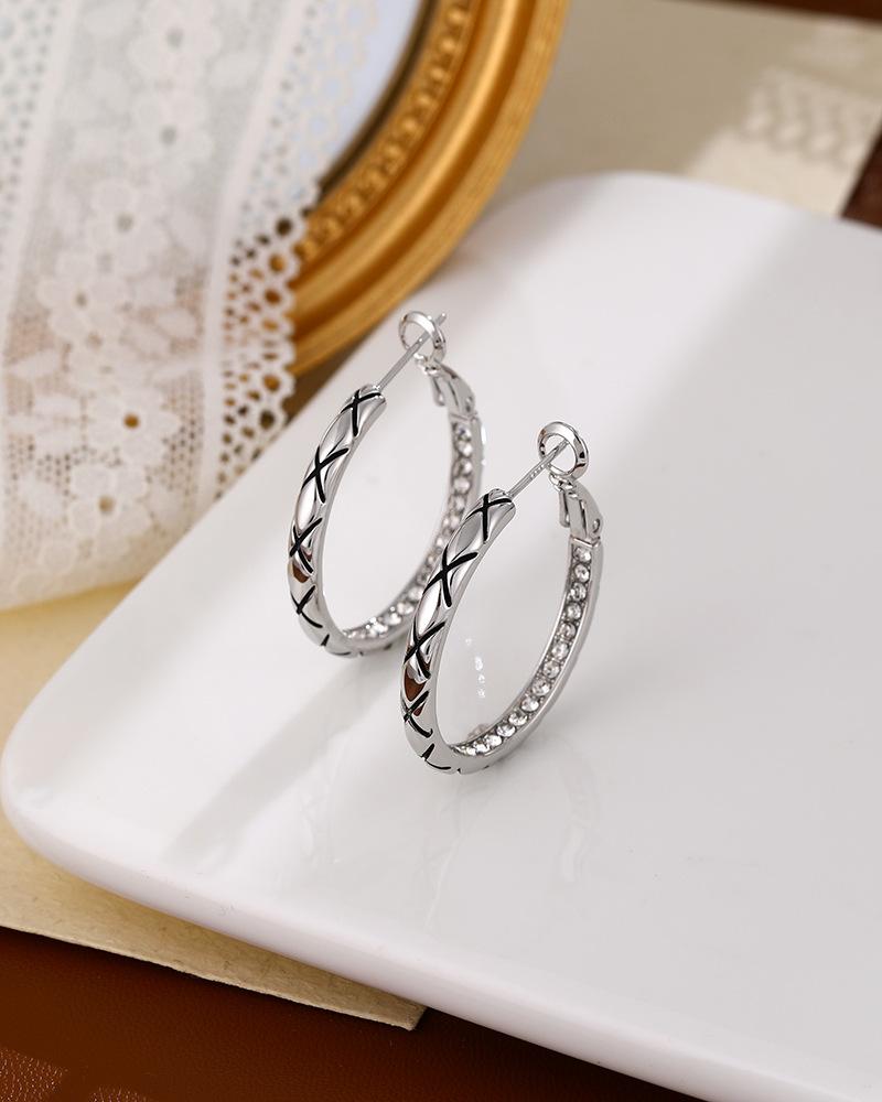 Pendientes redondos con diseño de diamante y forma de corazón para mujer, pequeños pendientes de lujo ligeros estilo Chanel, retro, elegantes, con forma de C grande.